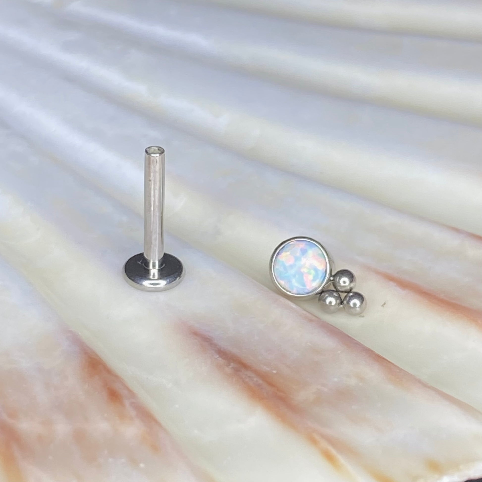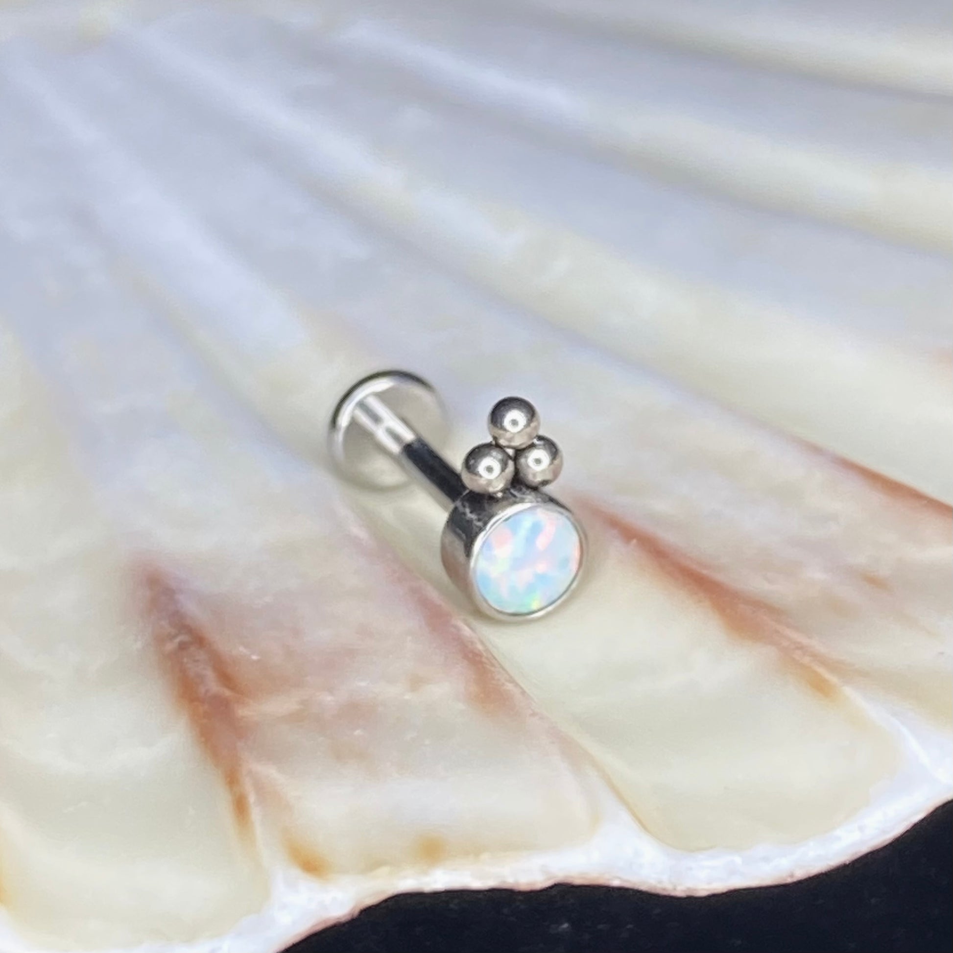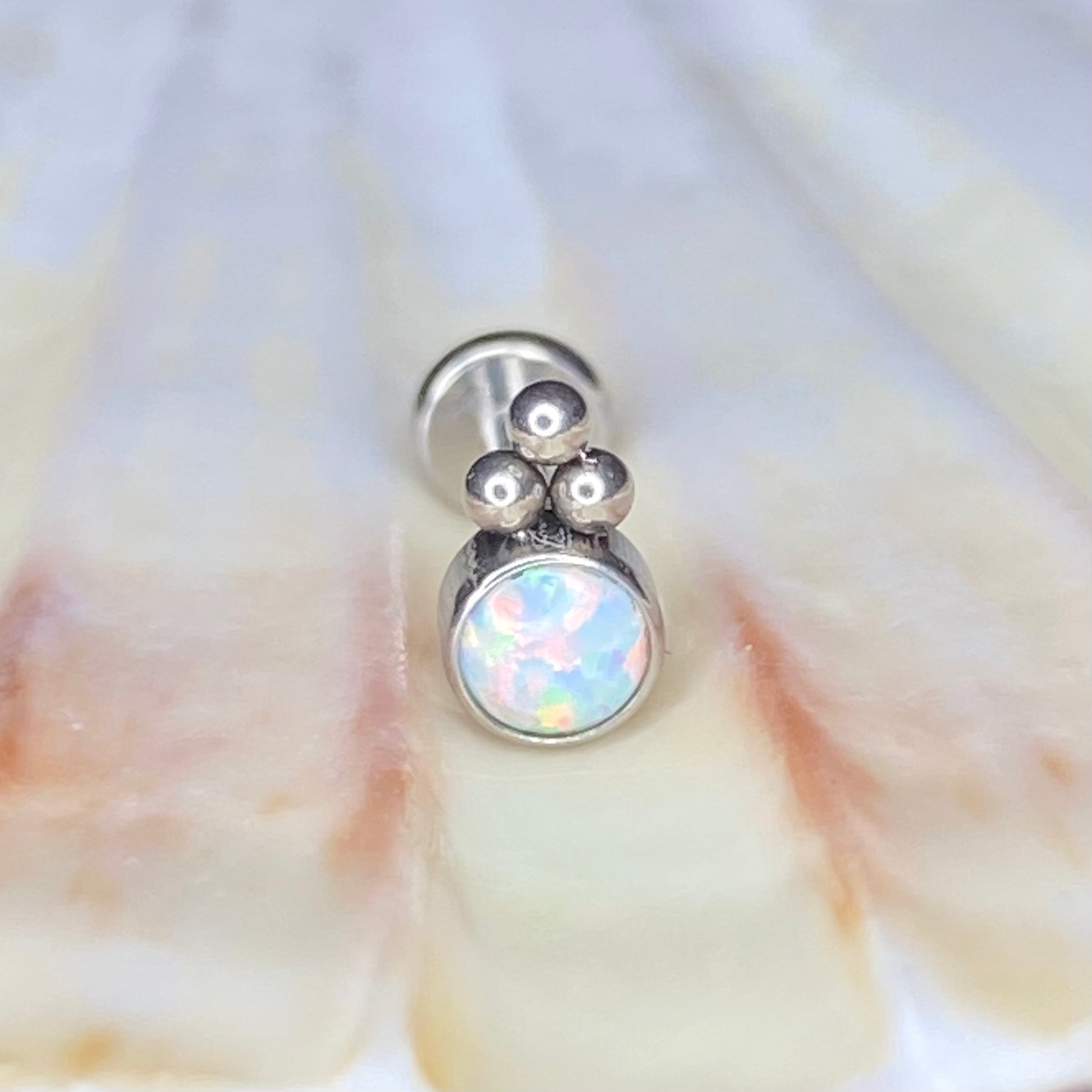 3 Beads WHITE OPAL Gem Top Medical Grade ASTM F136 Titanium Internal Thread Labret Ear Jewellery Helix Tragus Cartilage Earring