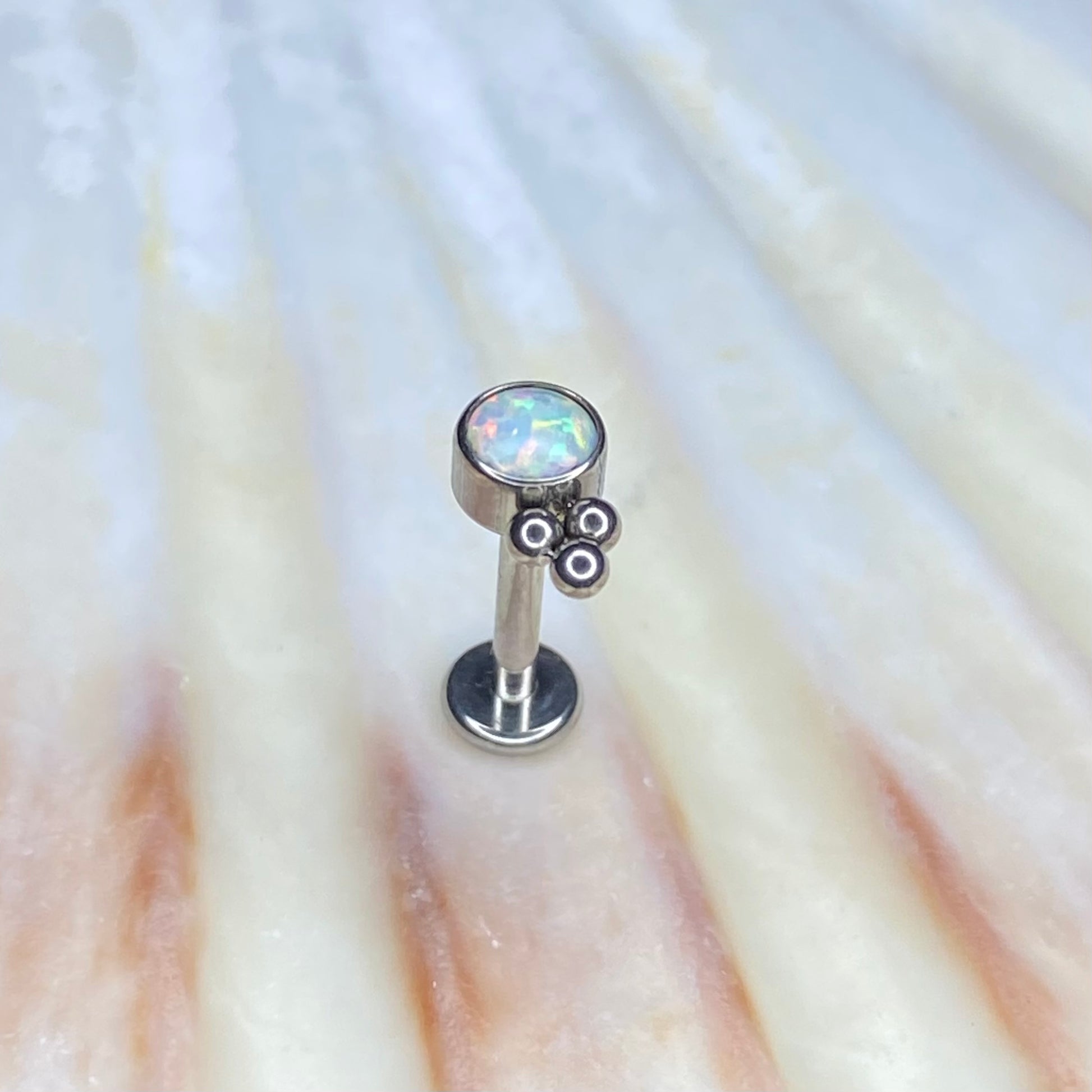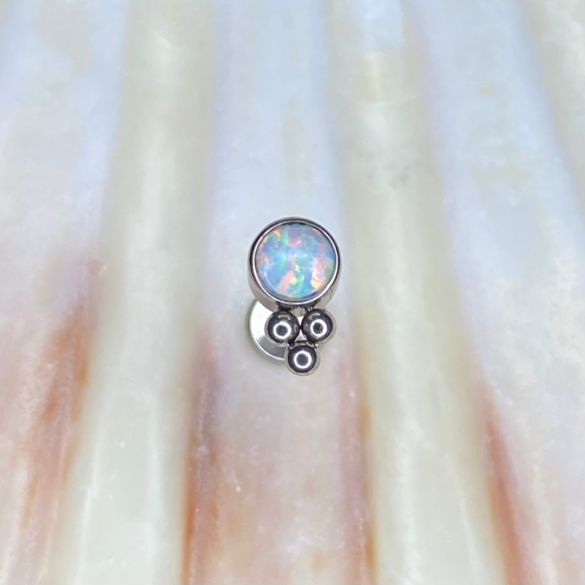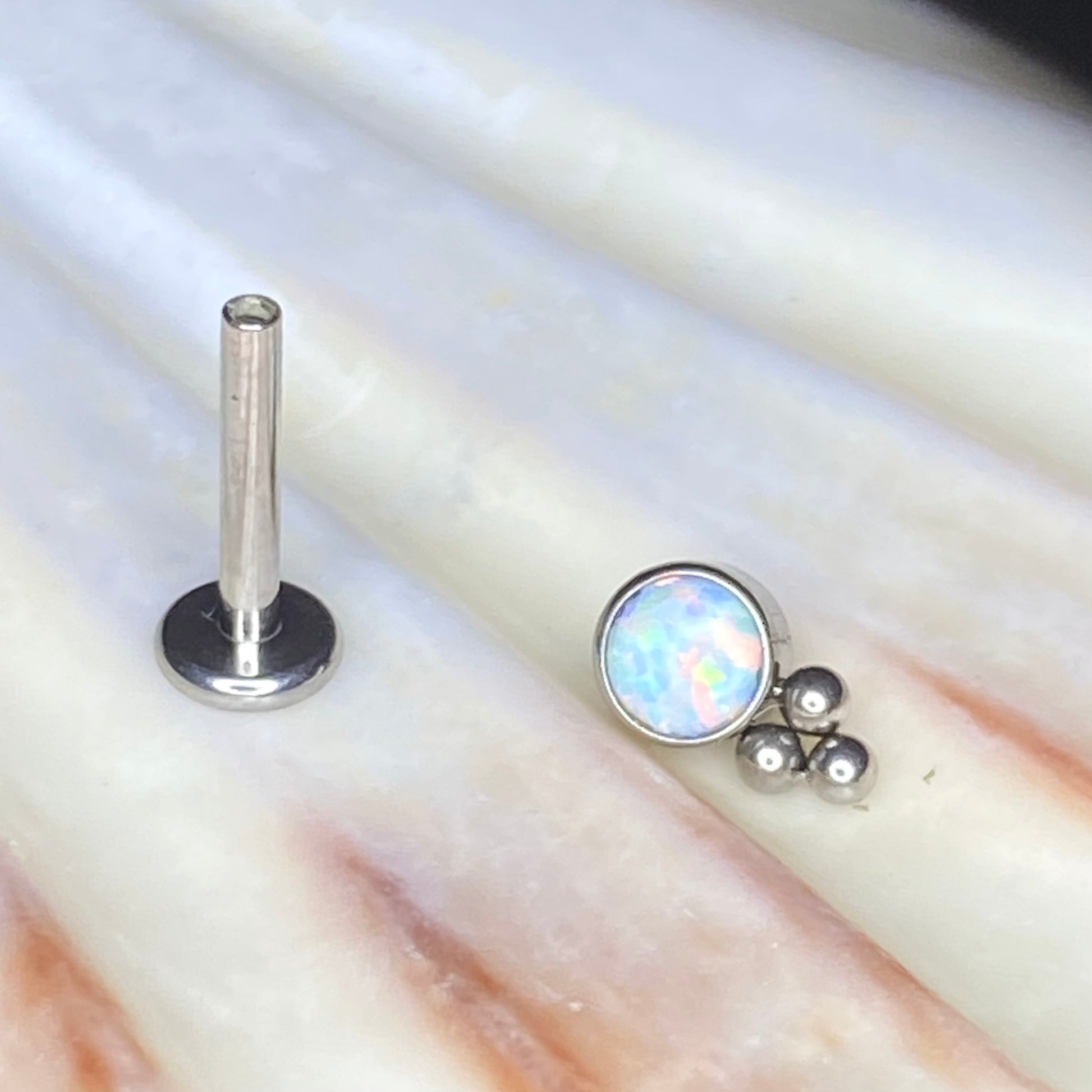 3 Beads WHITE OPAL Gem Top Medical Grade ASTM F136 Titanium Internal Thread Labret Ear Jewellery Helix Tragus Cartilage Earring
