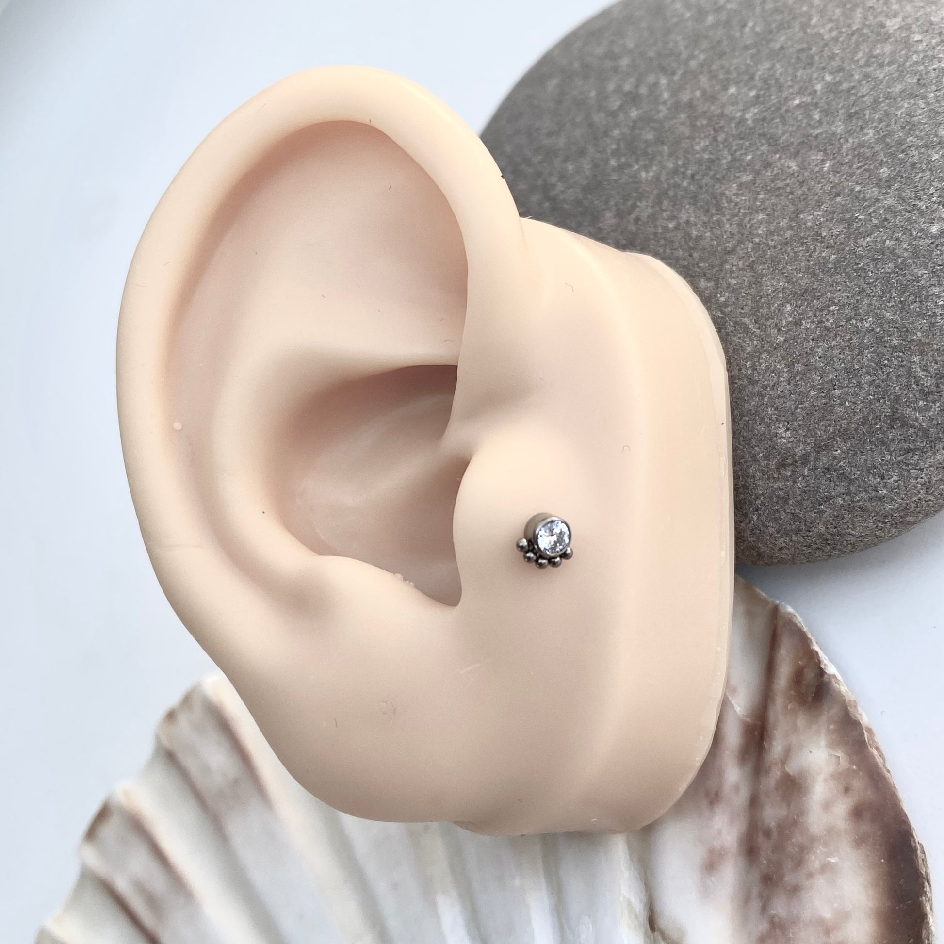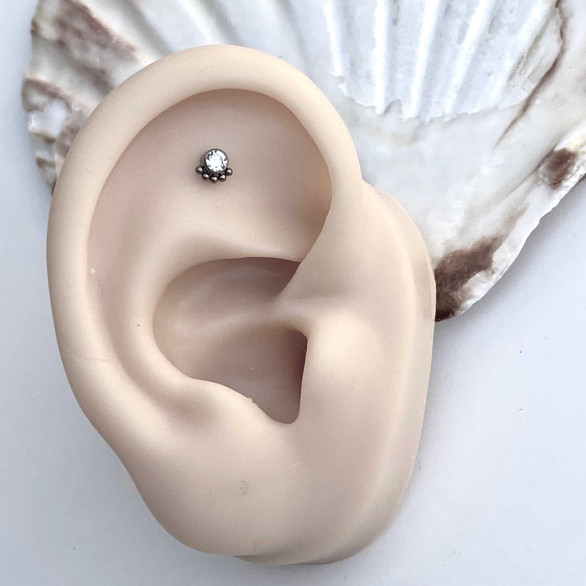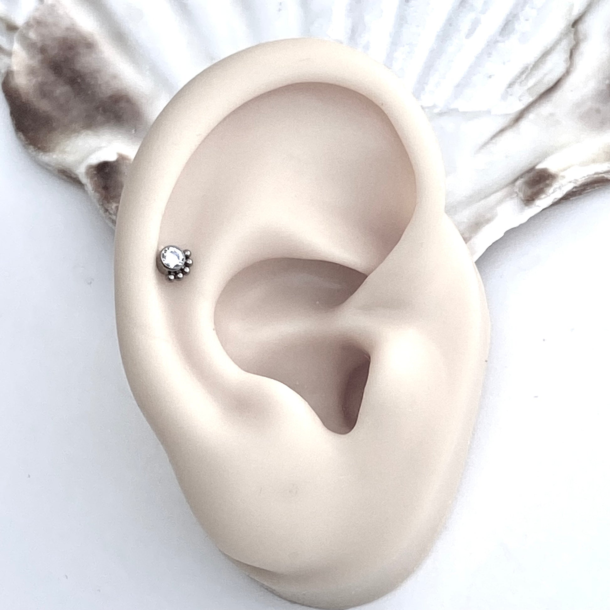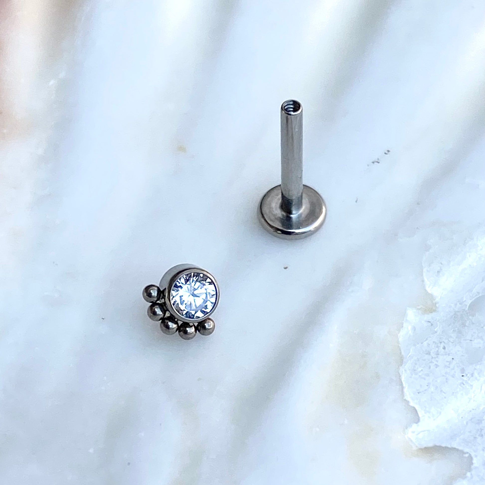 4 Beads Clear Gem Top Medical Grade ASTM F136 Titanium Internal Thread Labret Ear Jewellery Helix Tragus Cartilage Earring