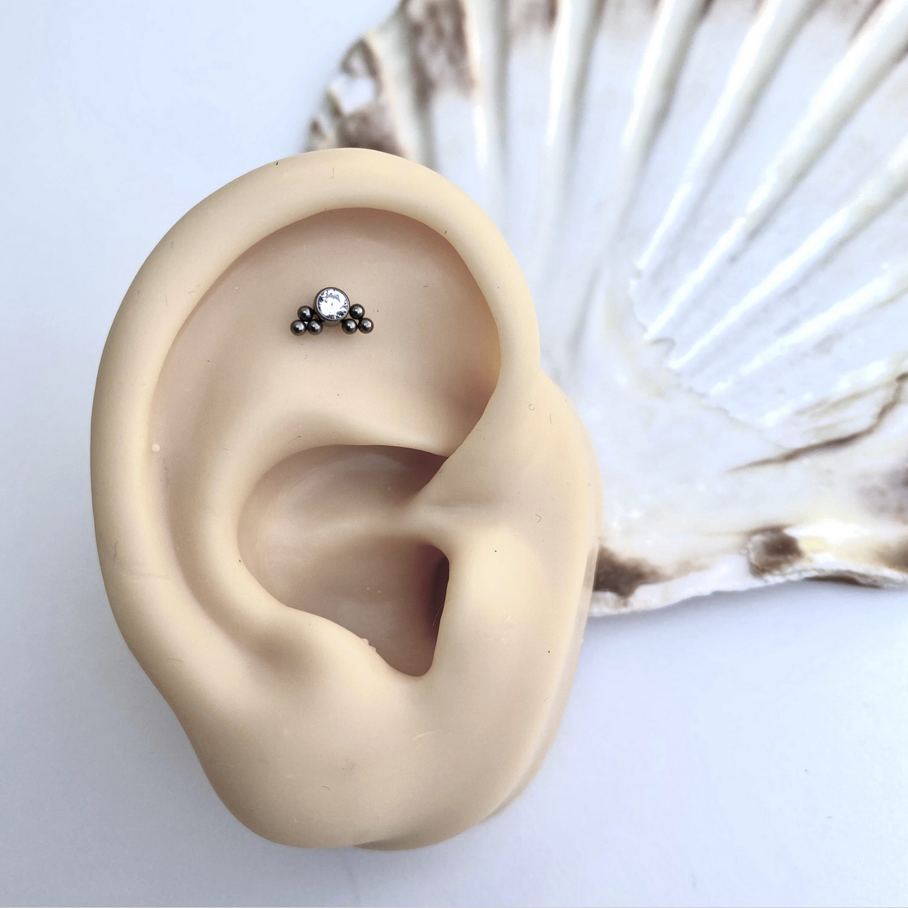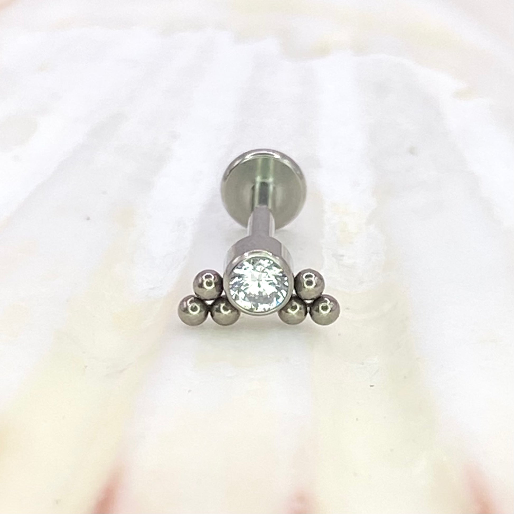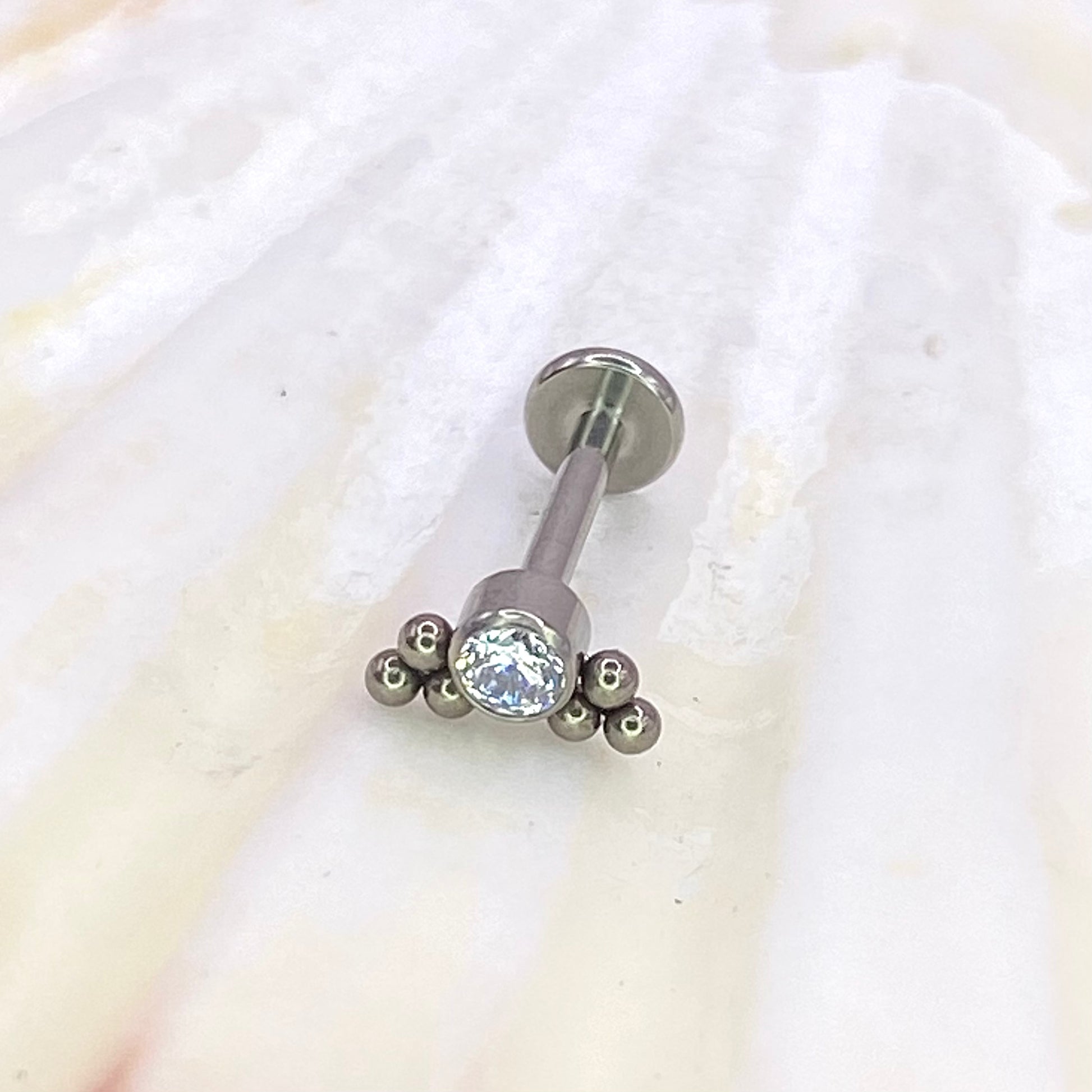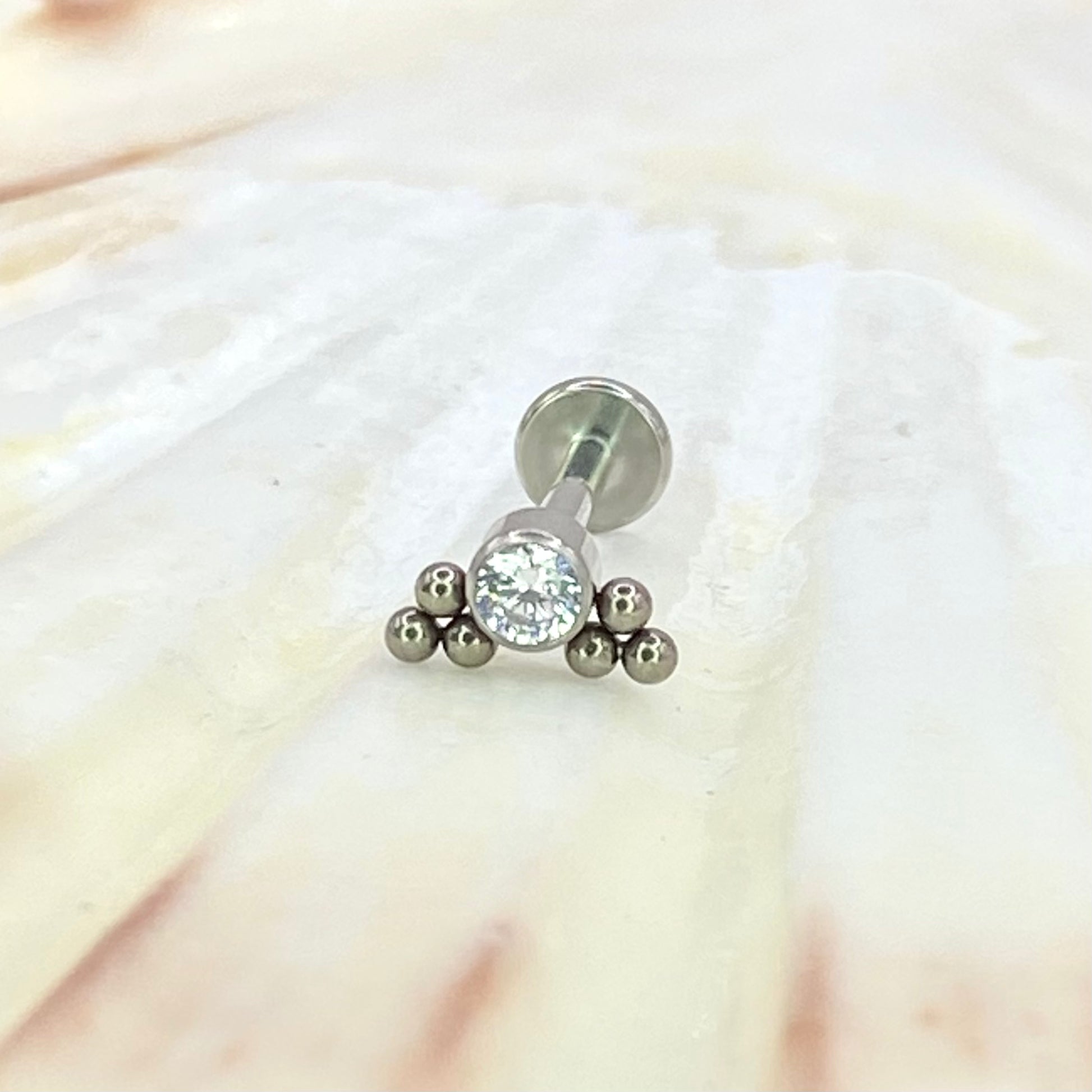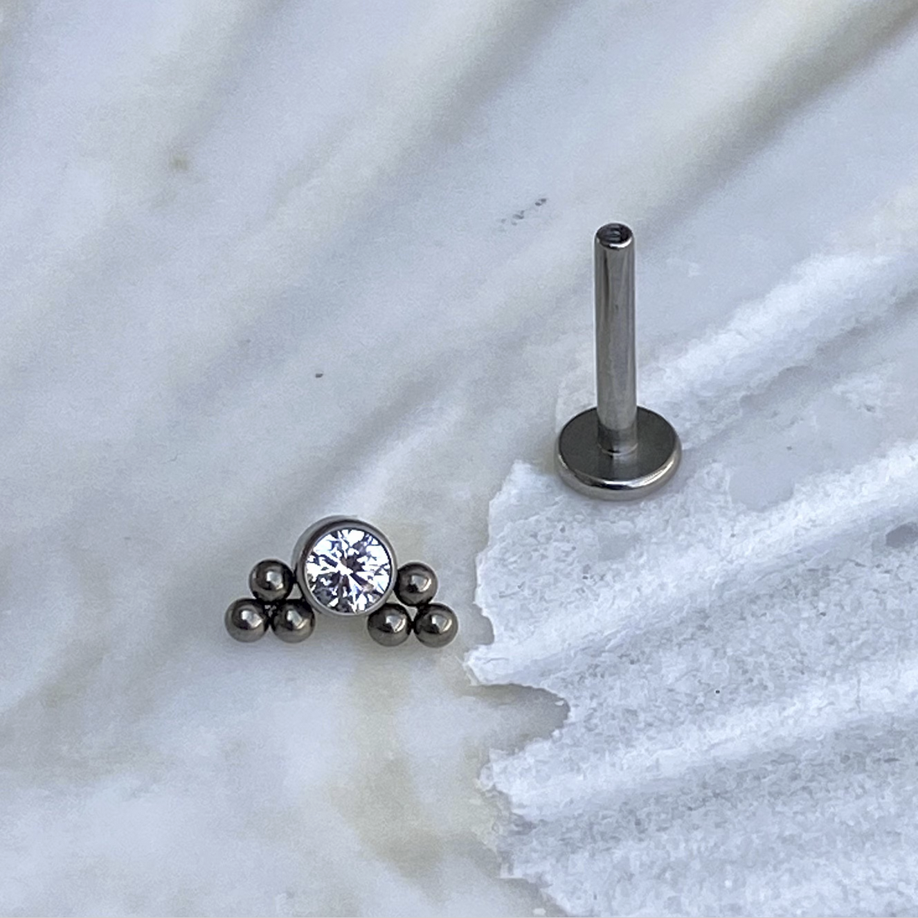 High quality implant grade titanium labret earring that is so easy to manage thanks to the smooth internal thread.