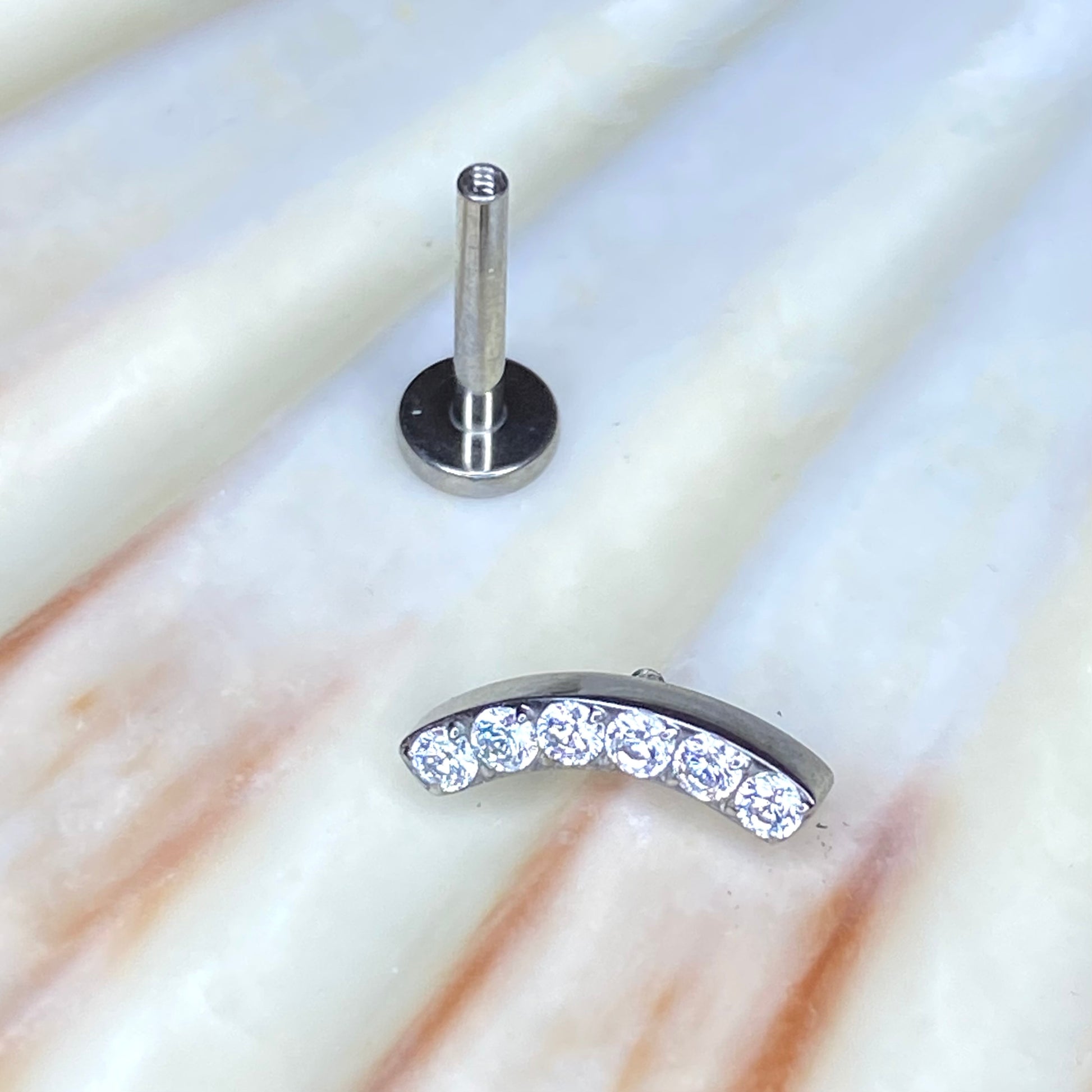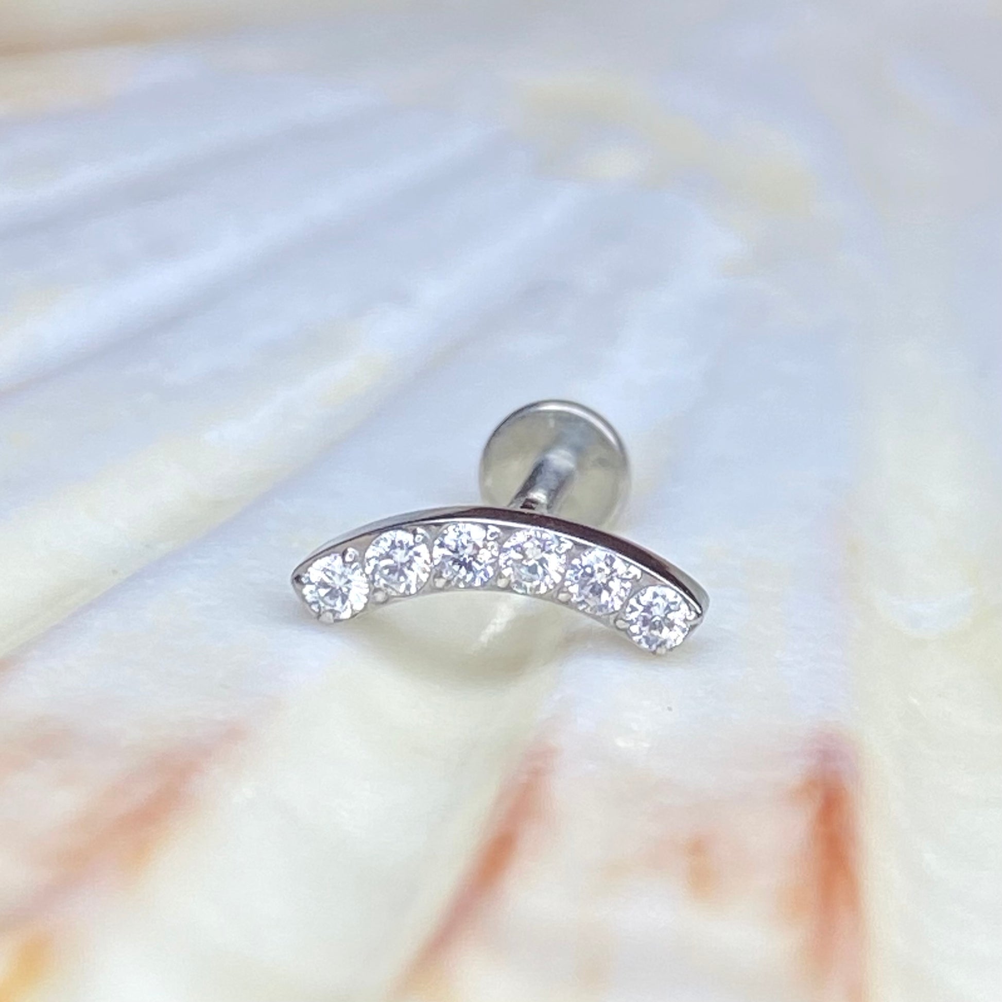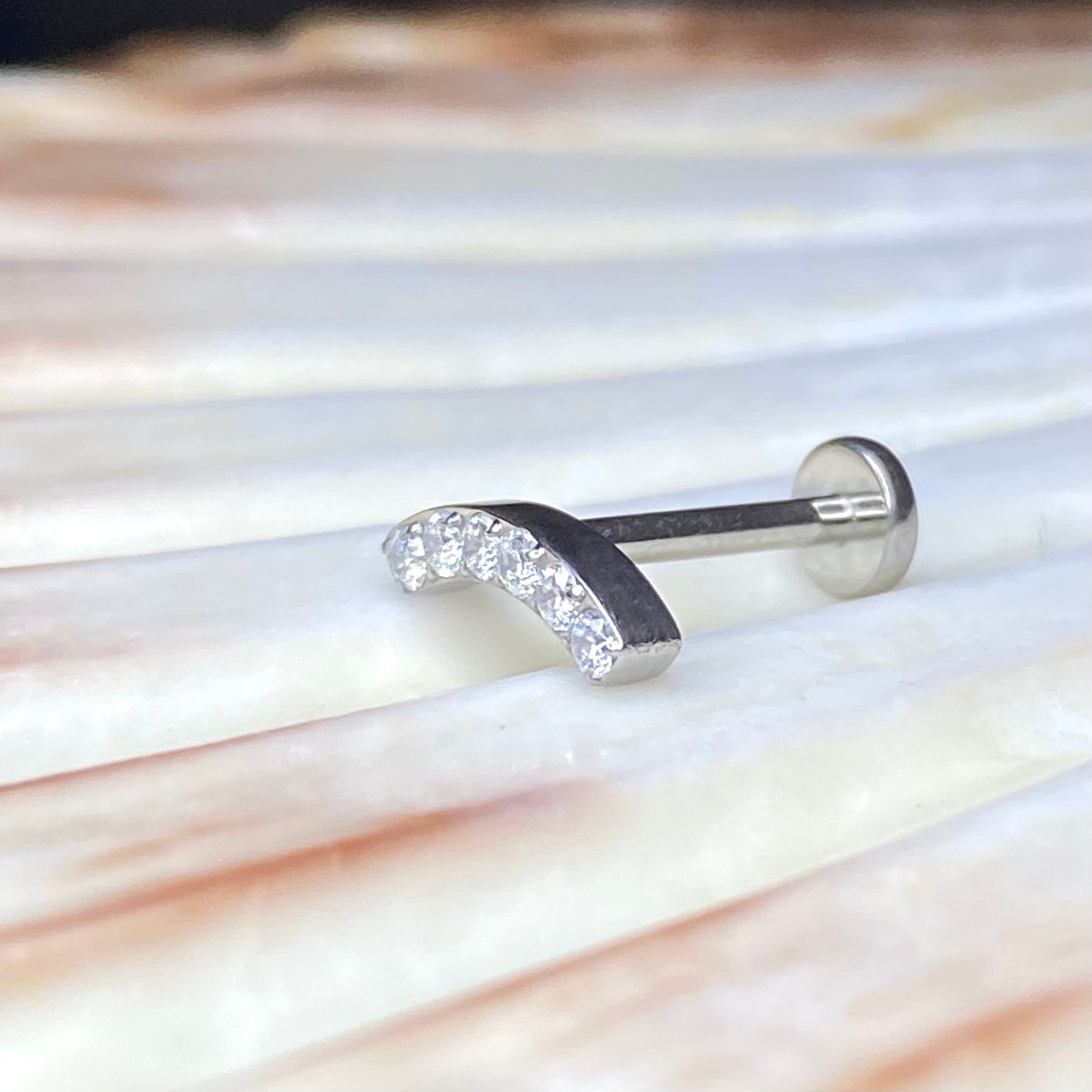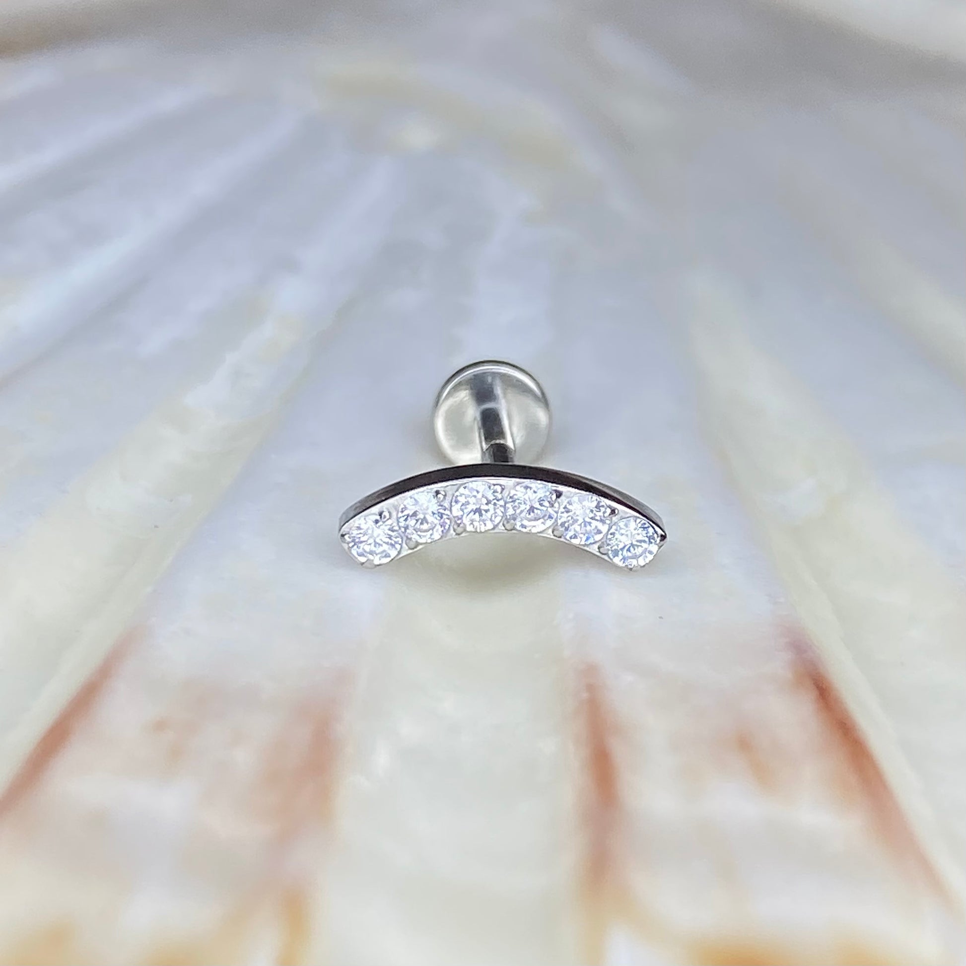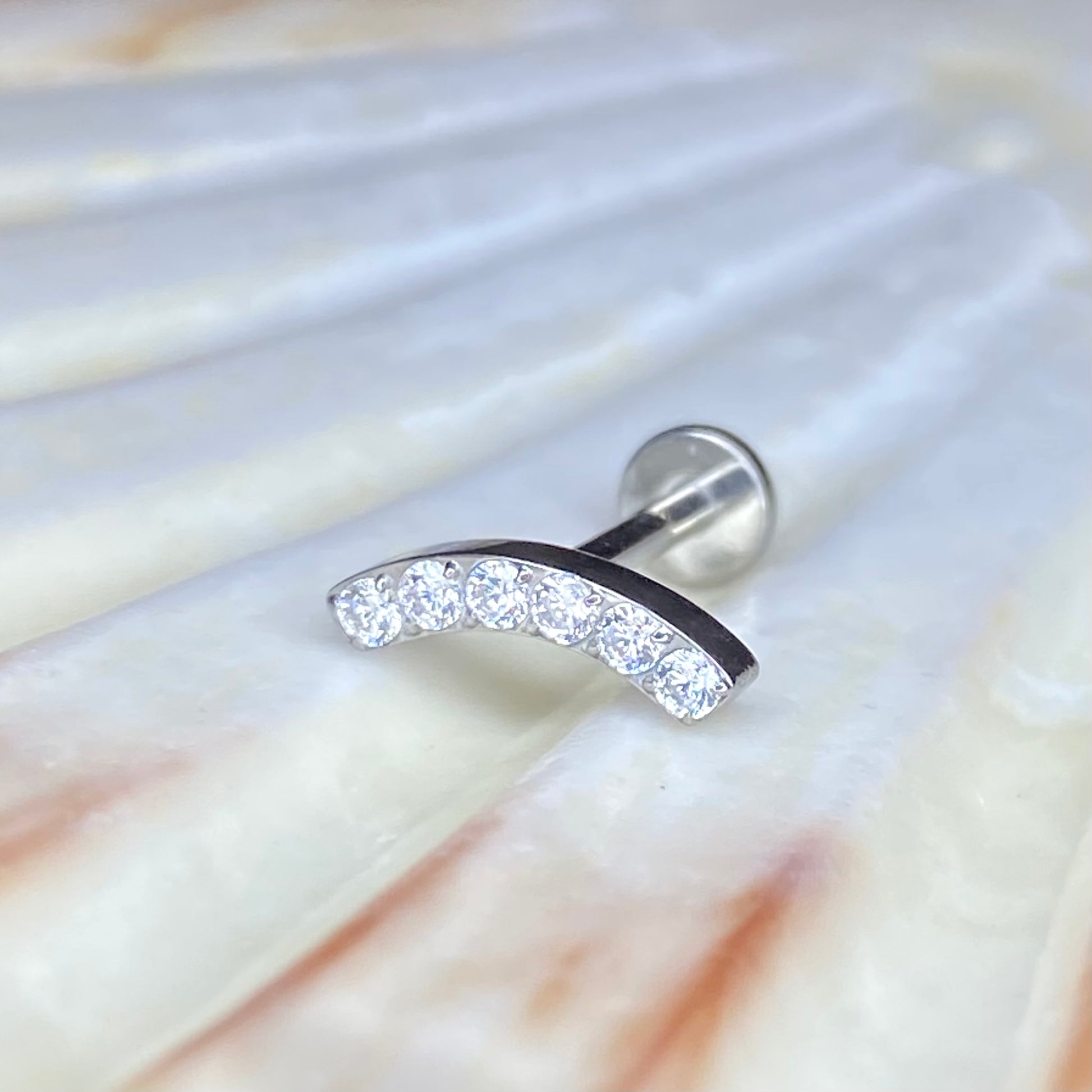 ARCHED Clear Gem Internal Thread Medical grade ASTM:F-136 titanium labret 1.2x6/8mm conch helix tragus ear lobe flat piercing jewellery