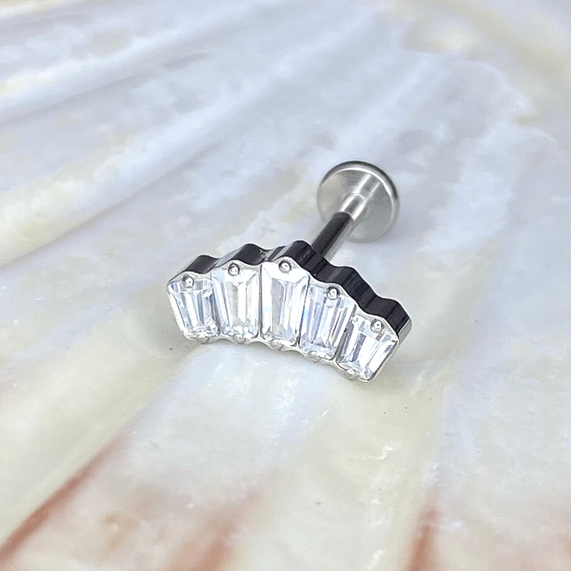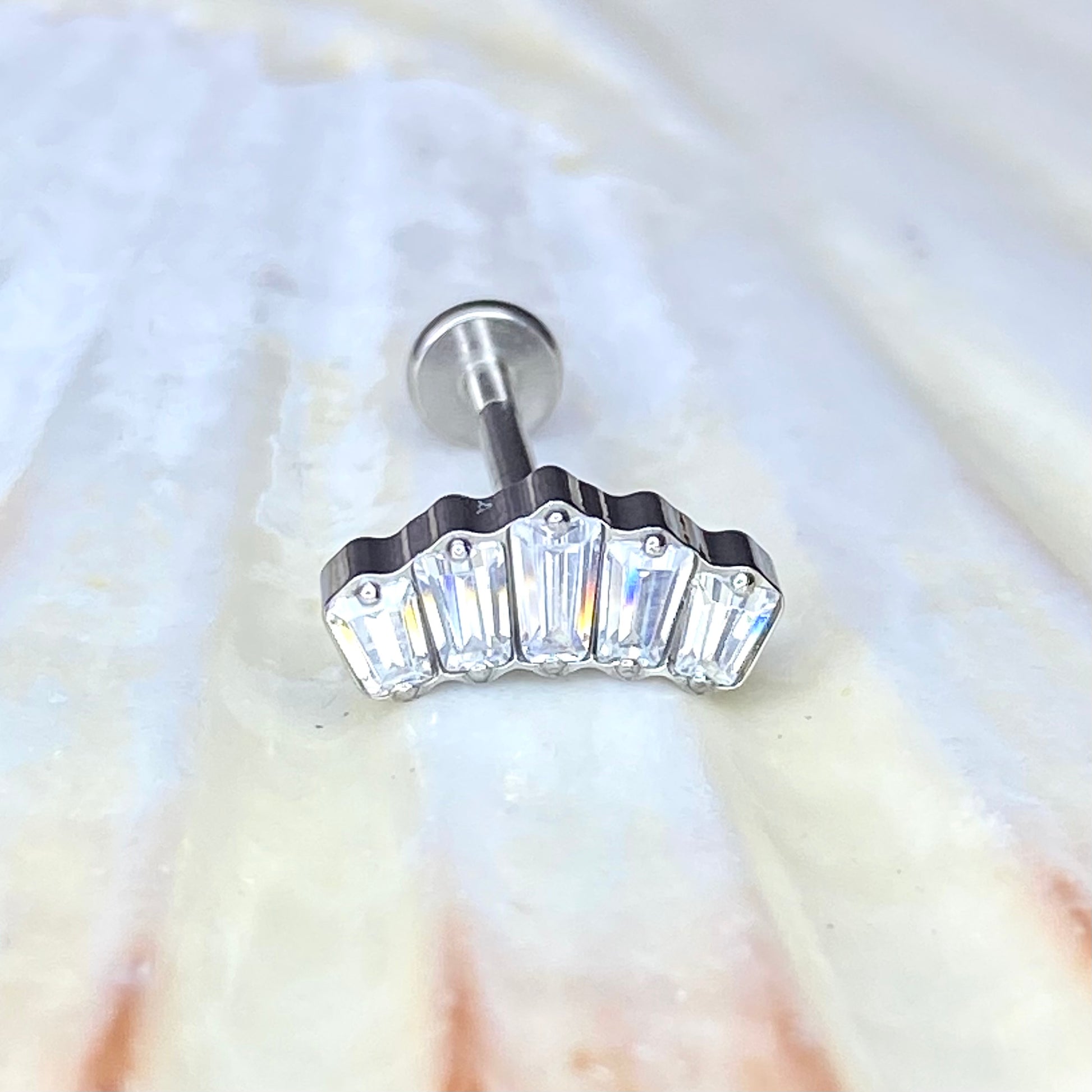 ART DECO FAN Top Clear Gem Medical Grade ASTM F136 Titanium Internal Thread Labret Ear Jewellery Helix Tragus Cartilage Earring 1.2x8mm