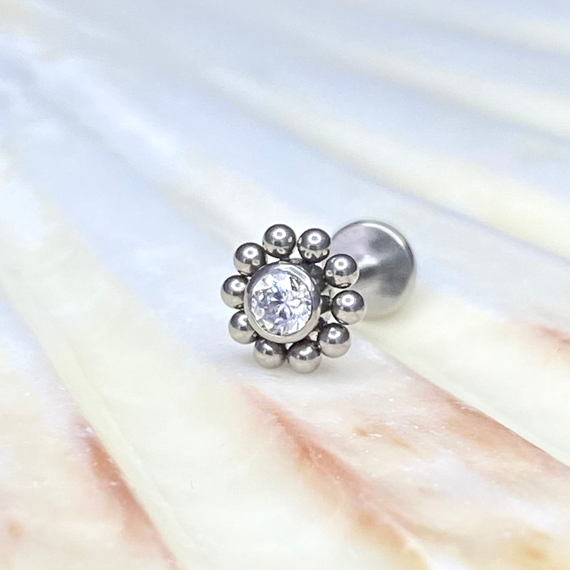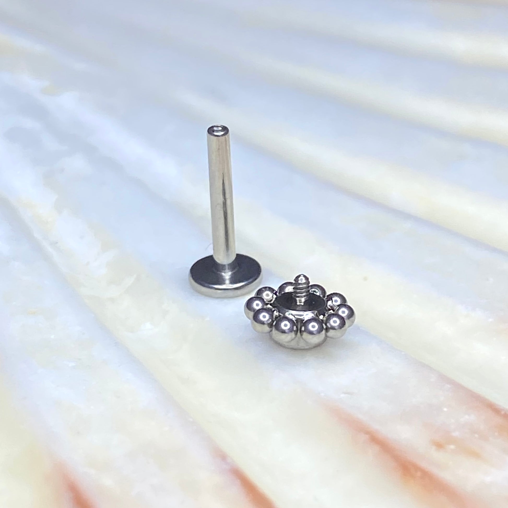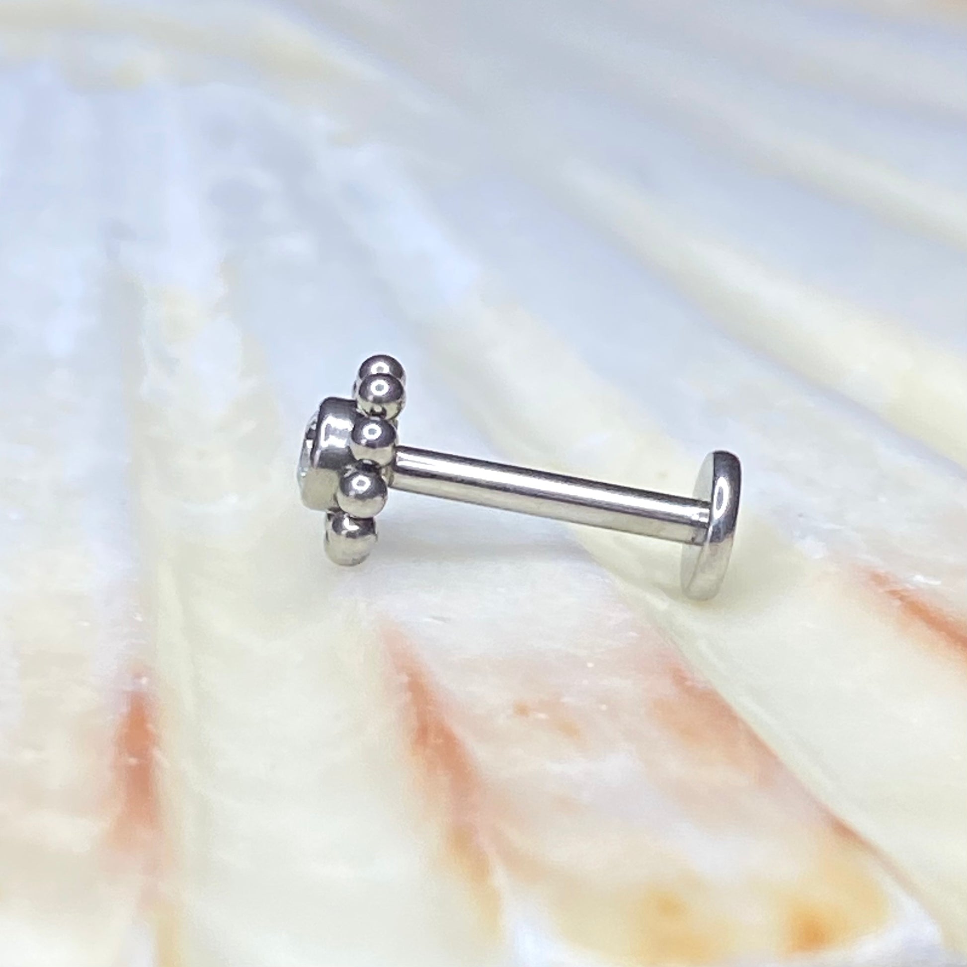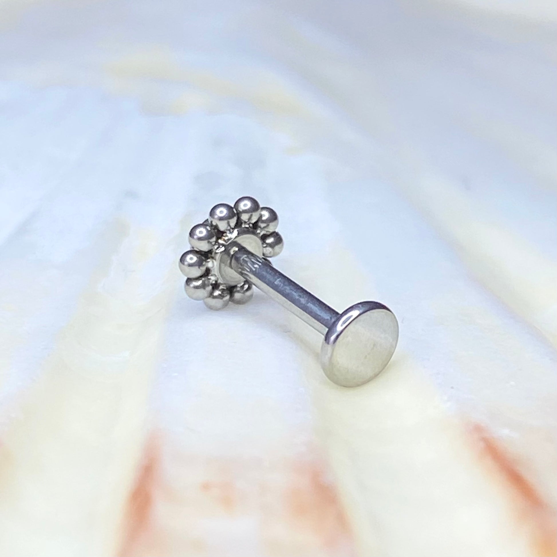 High quality implant grade titanium labret earring that is so easy to manage thanks to the smooth internal thread.