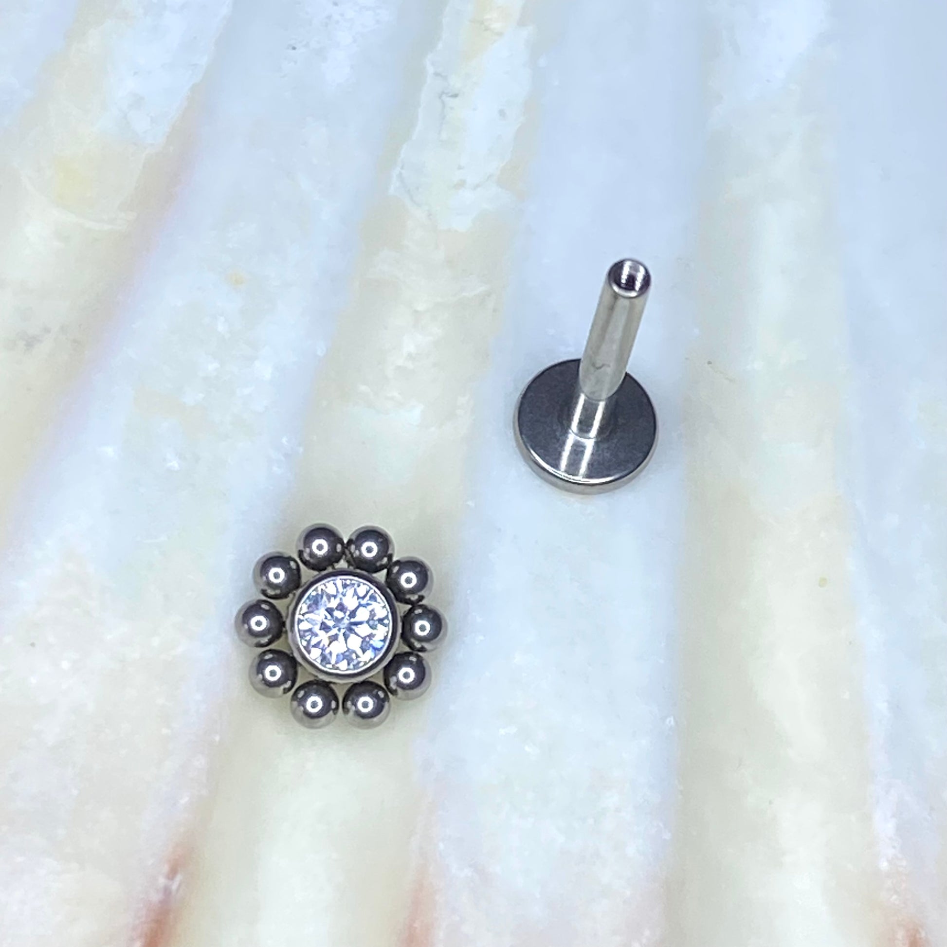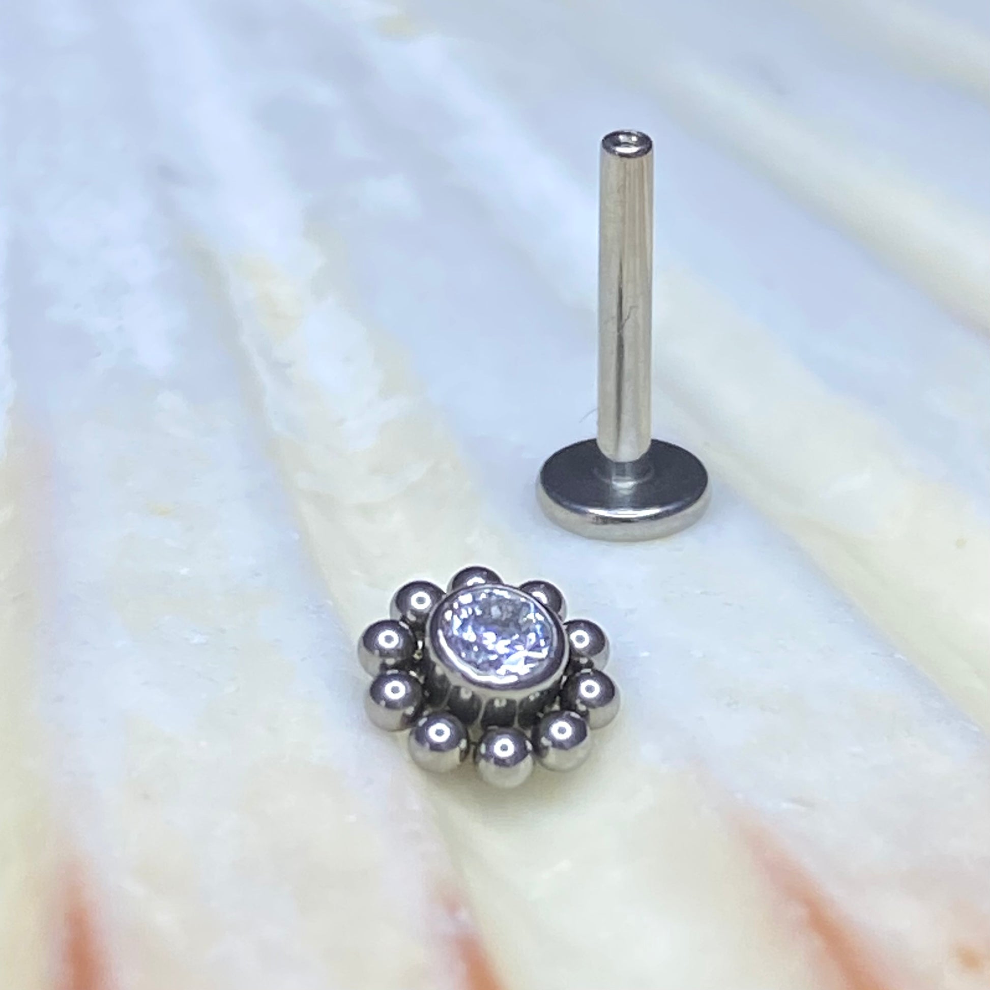 BEADED ROUND Gem Top Medical Grade ASTM F136 Titanium Internal Thread Labret Ear Jewellery Helix Tragus Cartilage Earring 1.2x8mm, 1.6x10mm