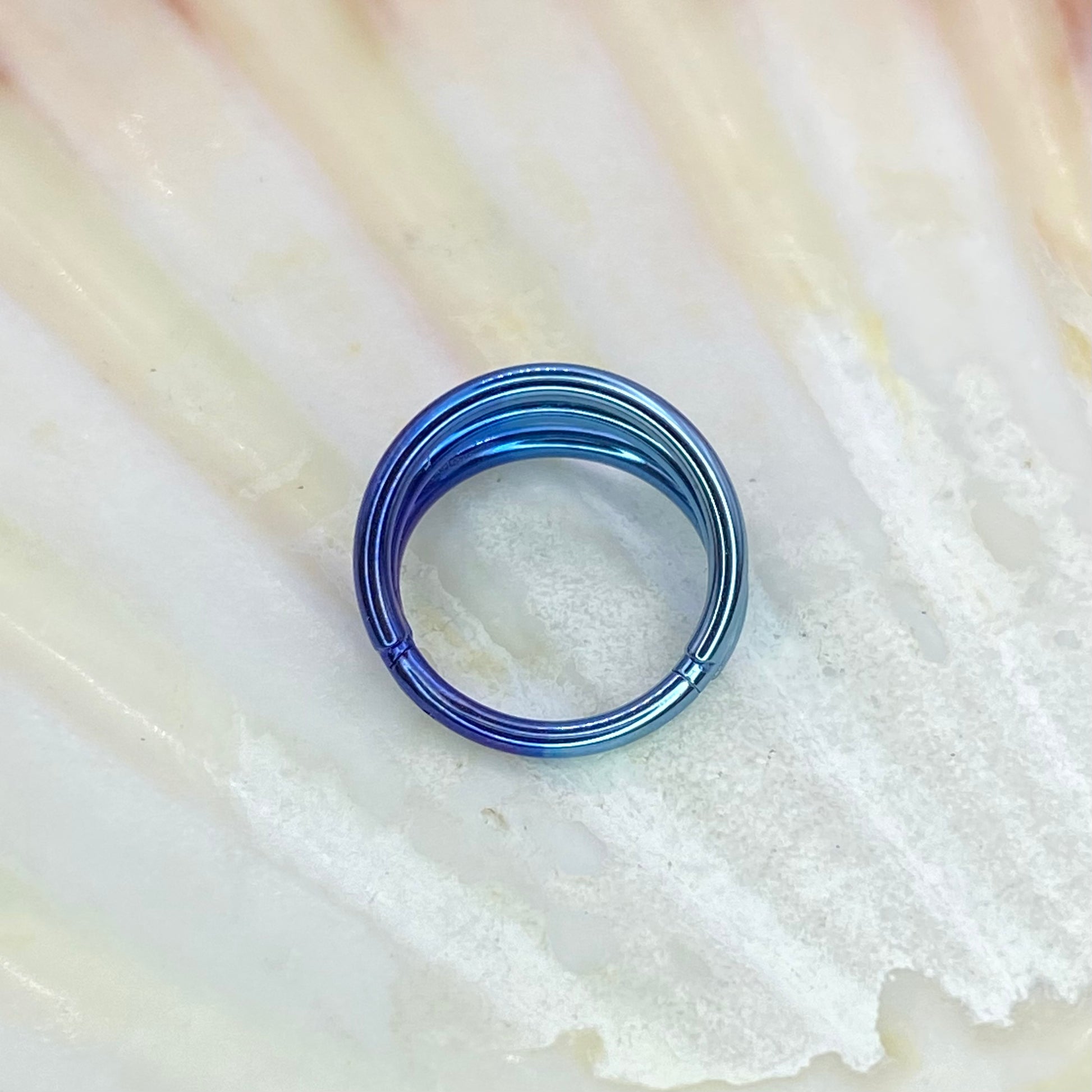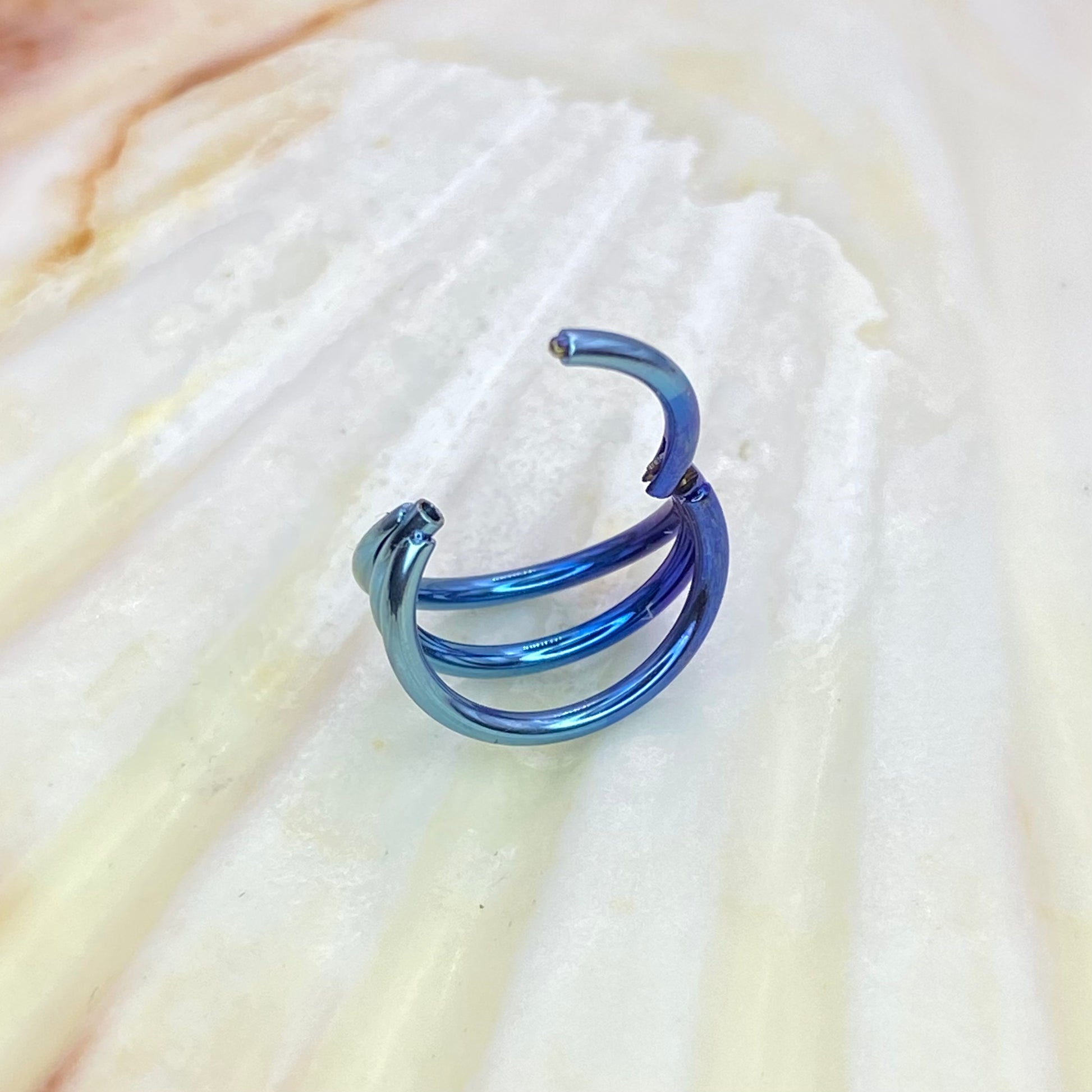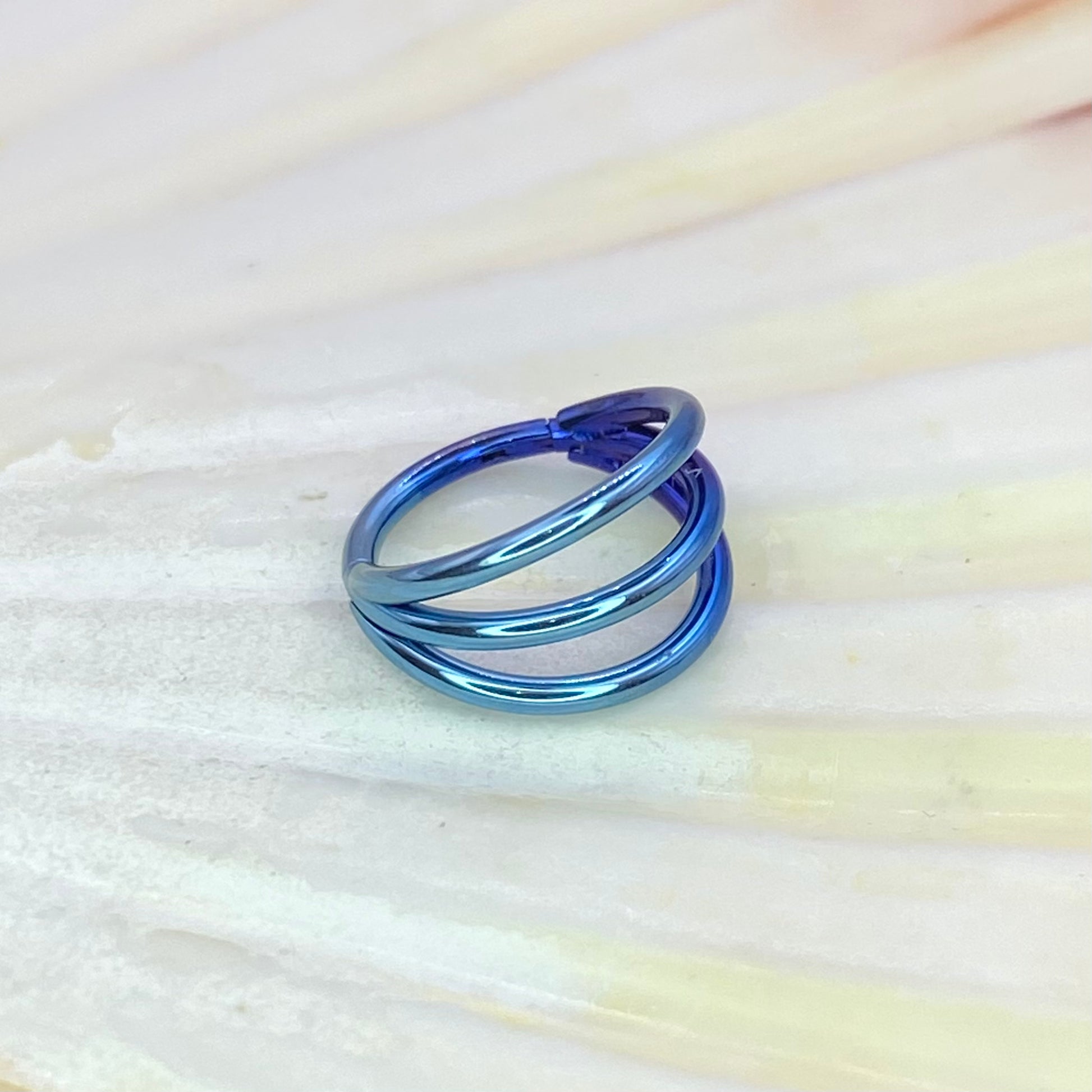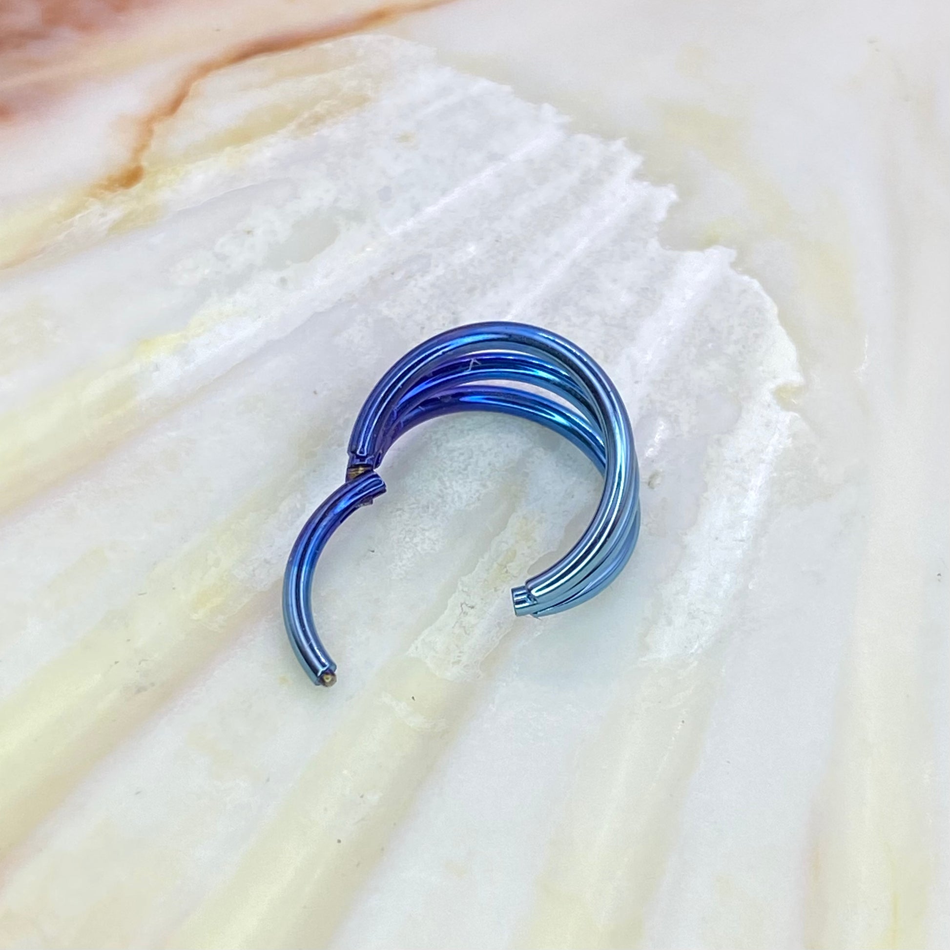BLUE GRADIENT Anodized Medical Grade ASTM F-136 Titanium Triple Band Hinged Ring Clicker Hoop Cartilage Lobe Piercing size: 1.2x6/8/10/12mm