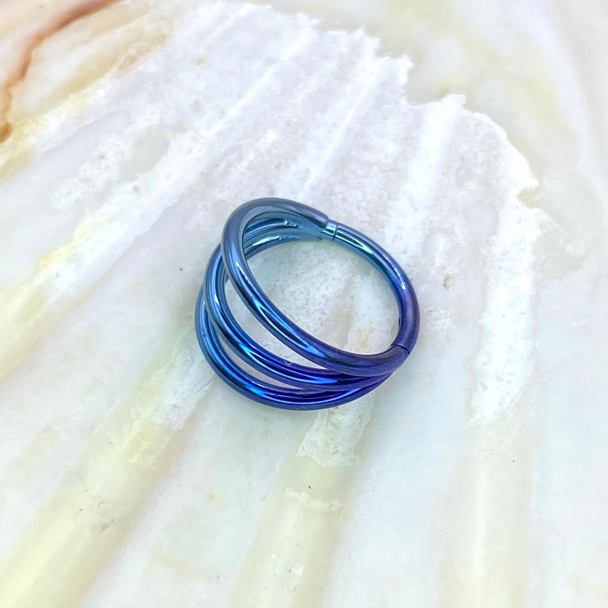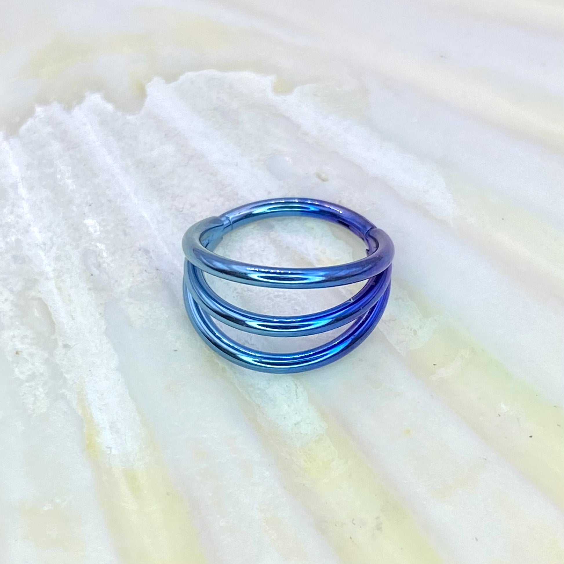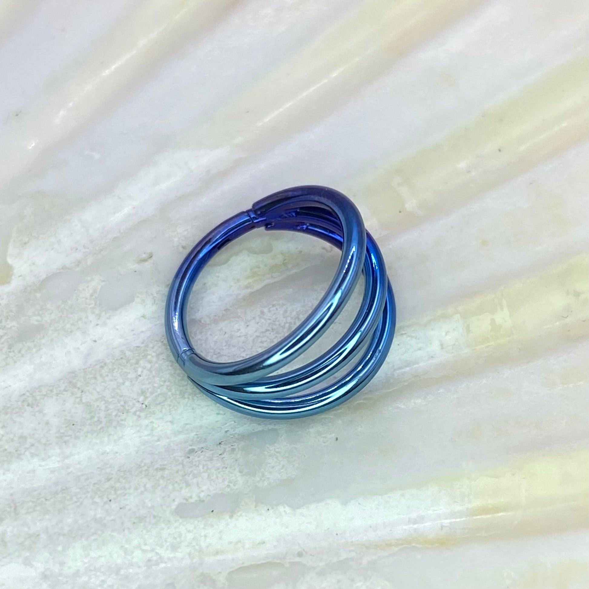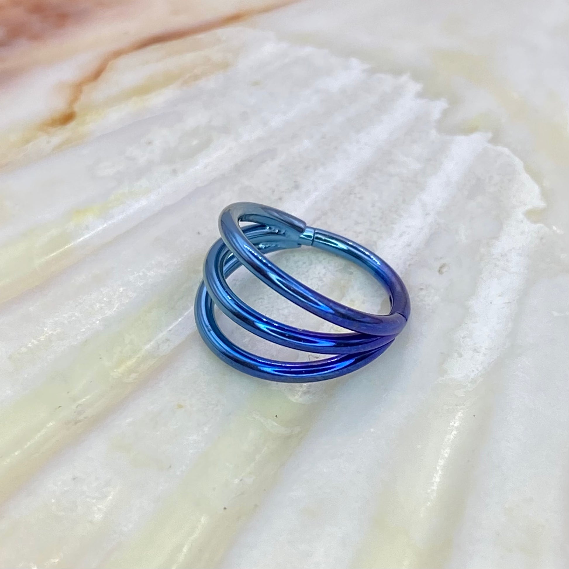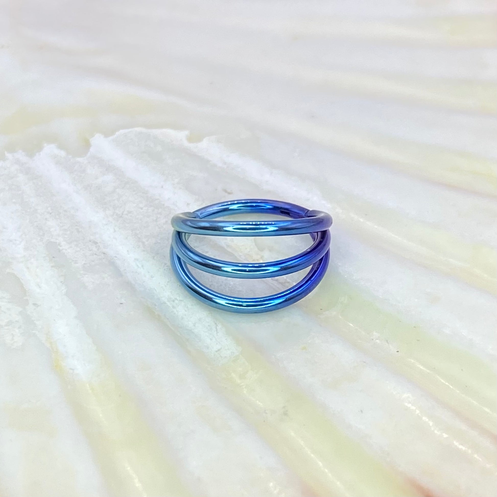 BLUE GRADIENT Anodized Medical Grade ASTM F-136 Titanium Triple Band Hinged Ring Clicker Hoop Cartilage Lobe Piercing size: 1.2x6/8/10/12mm