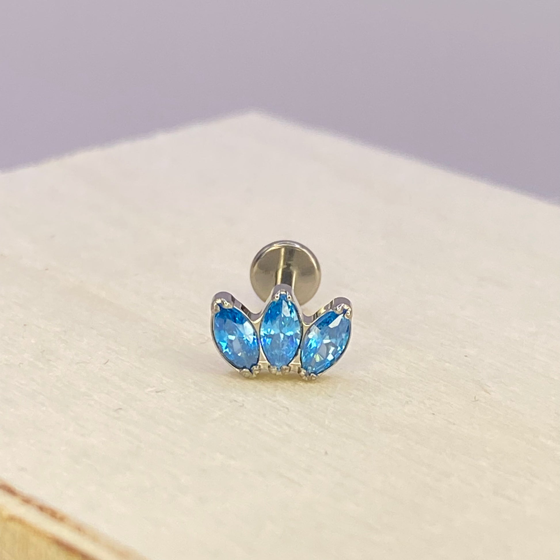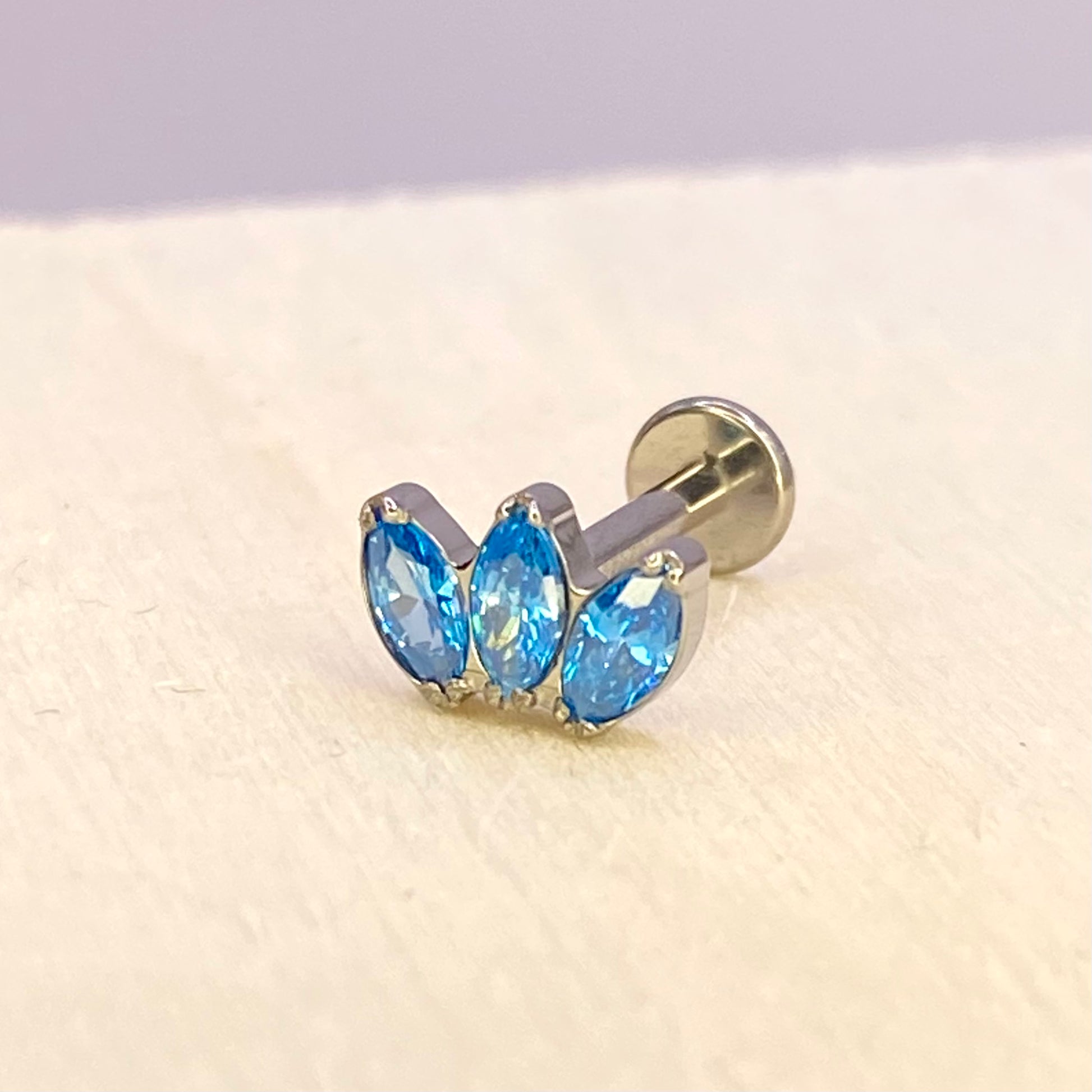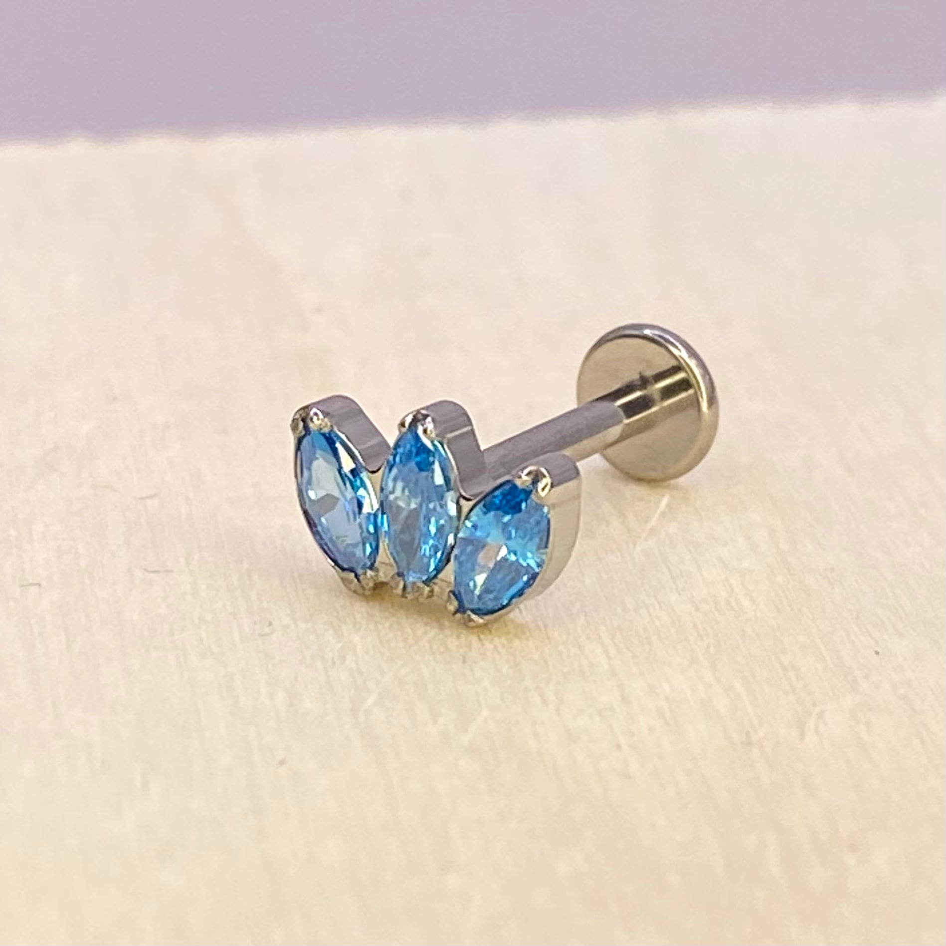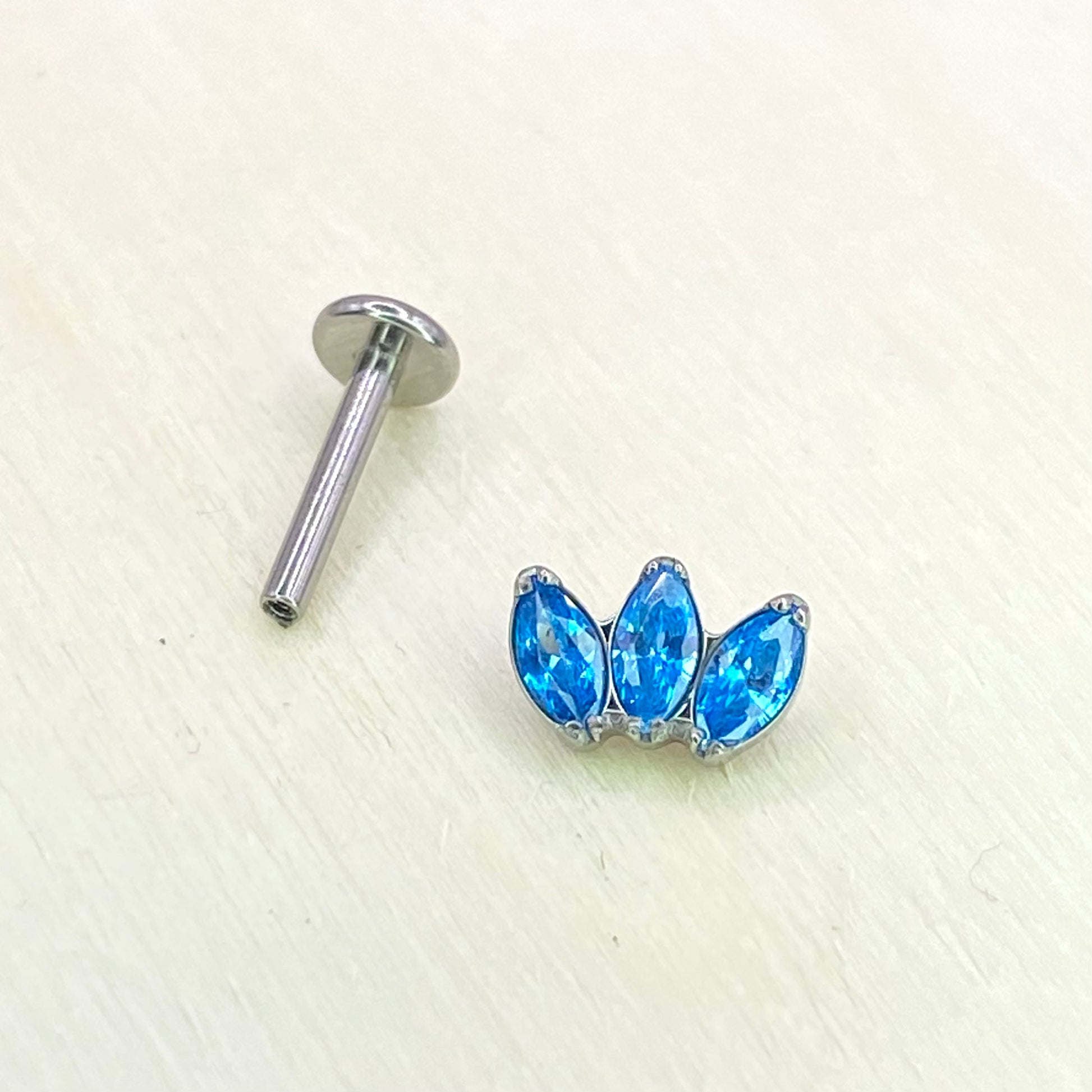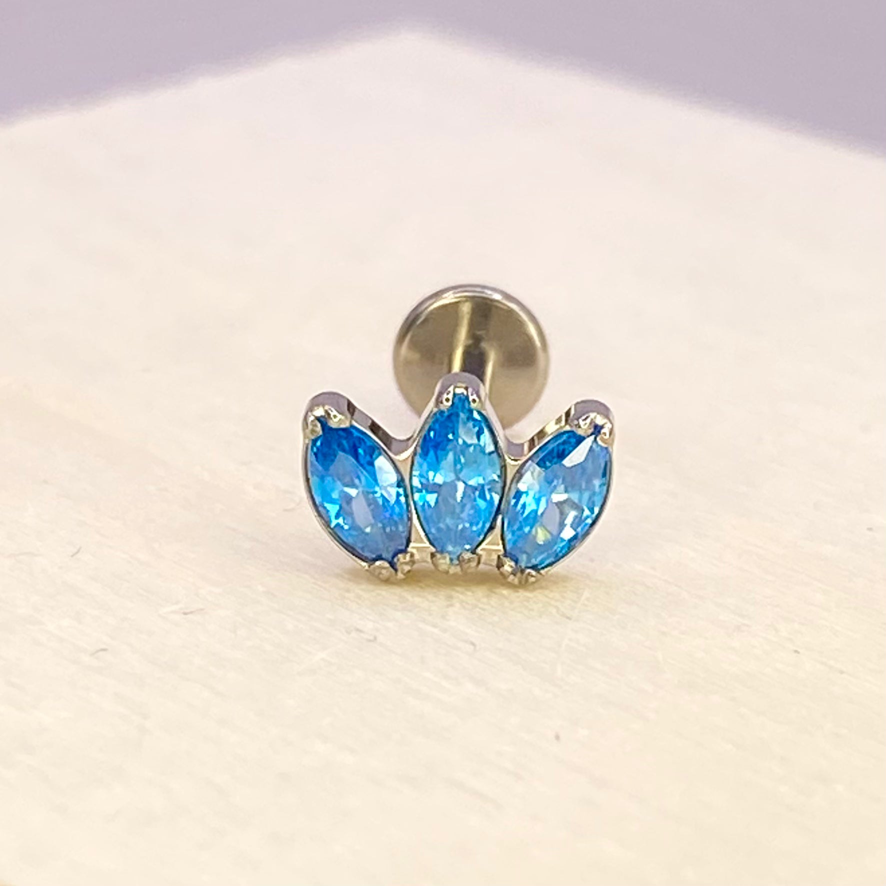 BLUE Triple Marquise Gem Top Medical Grade ASTM F136 Titanium Internal Thread Labret Ear Jewellery Helix Tragus Cartilage Earring