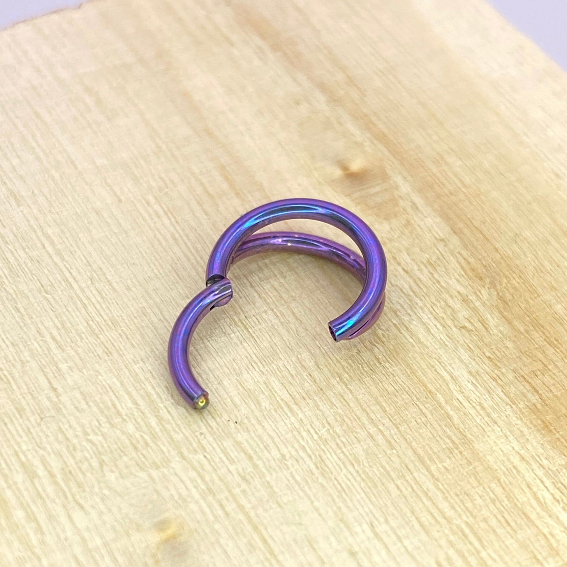 BLURPLE Anodized Medical Grade ASTM F-136 Titanium Double Band Hinged Ring Clicker Hoop Cartilage Lobe Piercing size: 1.2x6/8/10/12mm