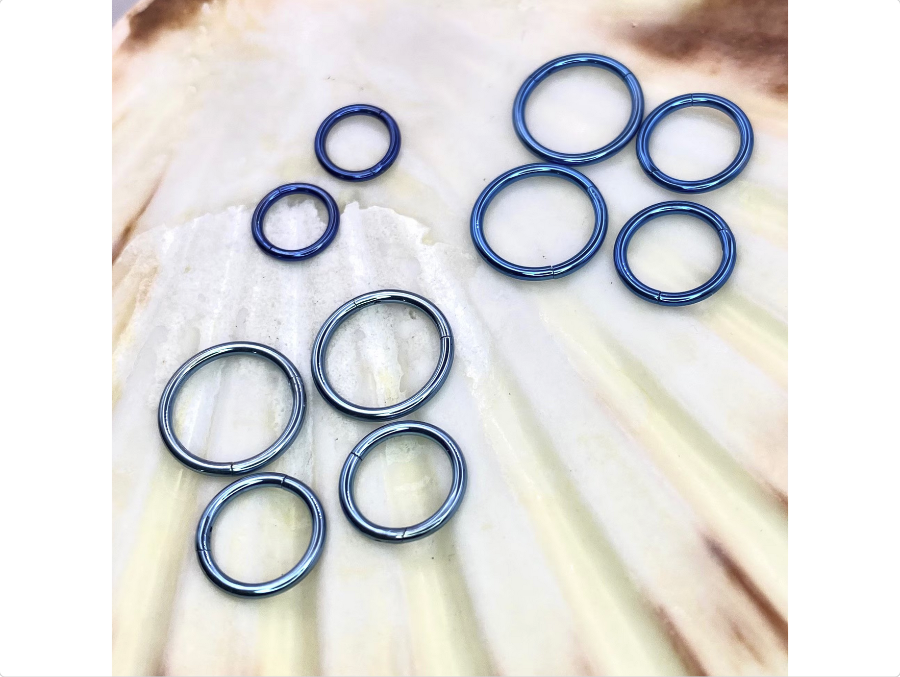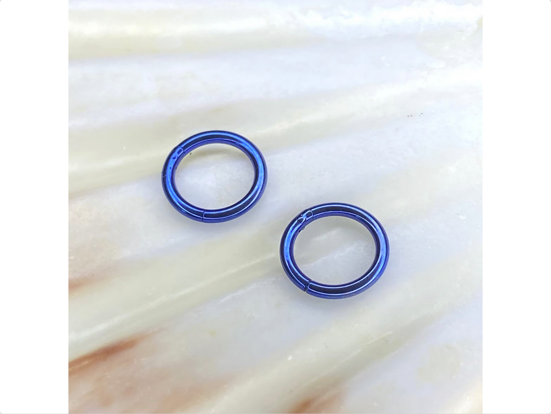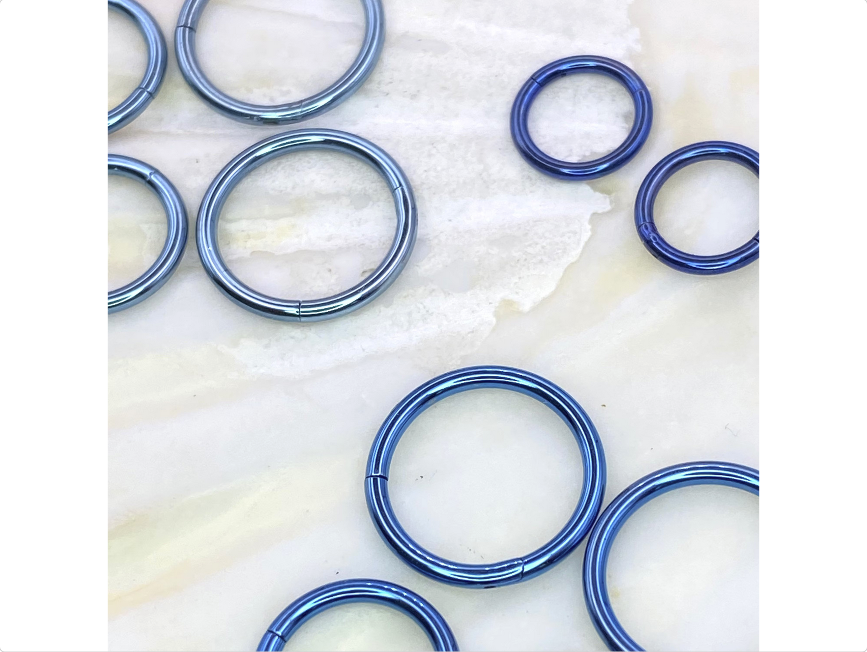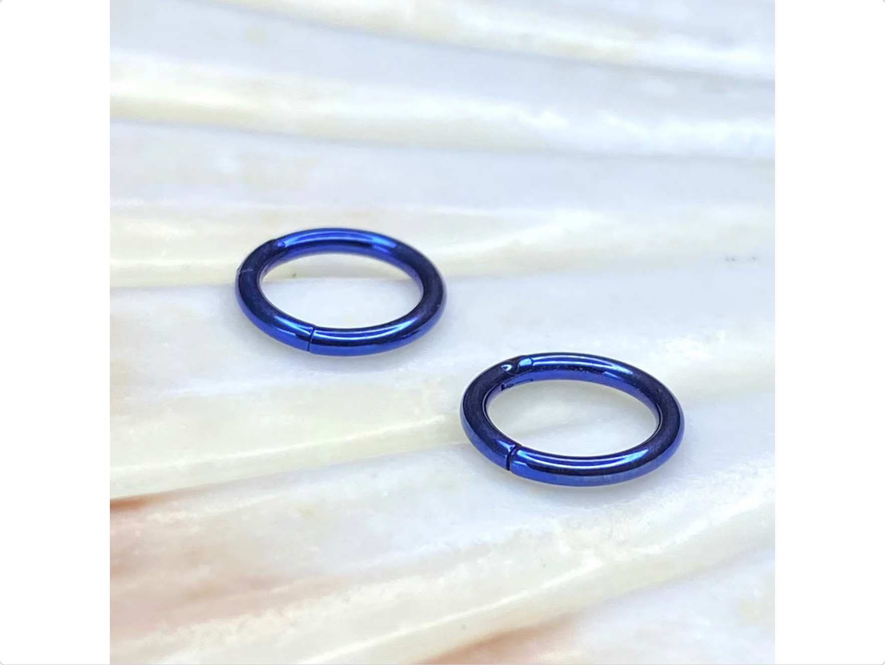 BLUE Anodized Medical Grade ASTM F-136 Titanium Hinged Ring Clicker Hoop for Cartilage Lobe Septum Daith Nose Piercing