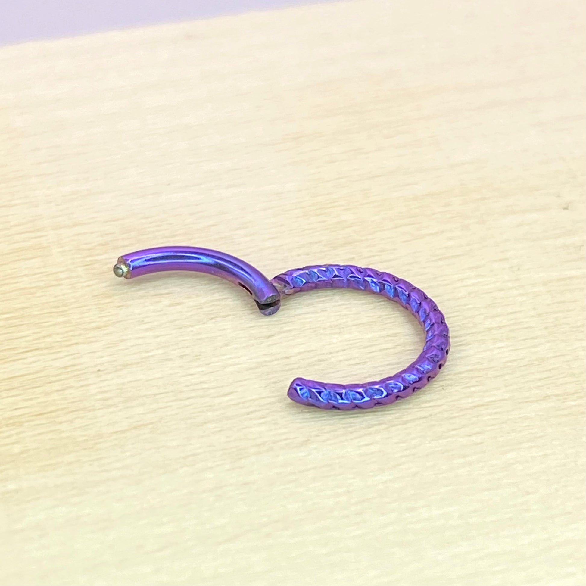 BLURPLE Anodized Twisted Rope Style Medical Grade ASTM F-136 Titanium Hinged Ring Clicker Hoop Helix Cartilage Lobe Septum Hoop size:1.2x8mm