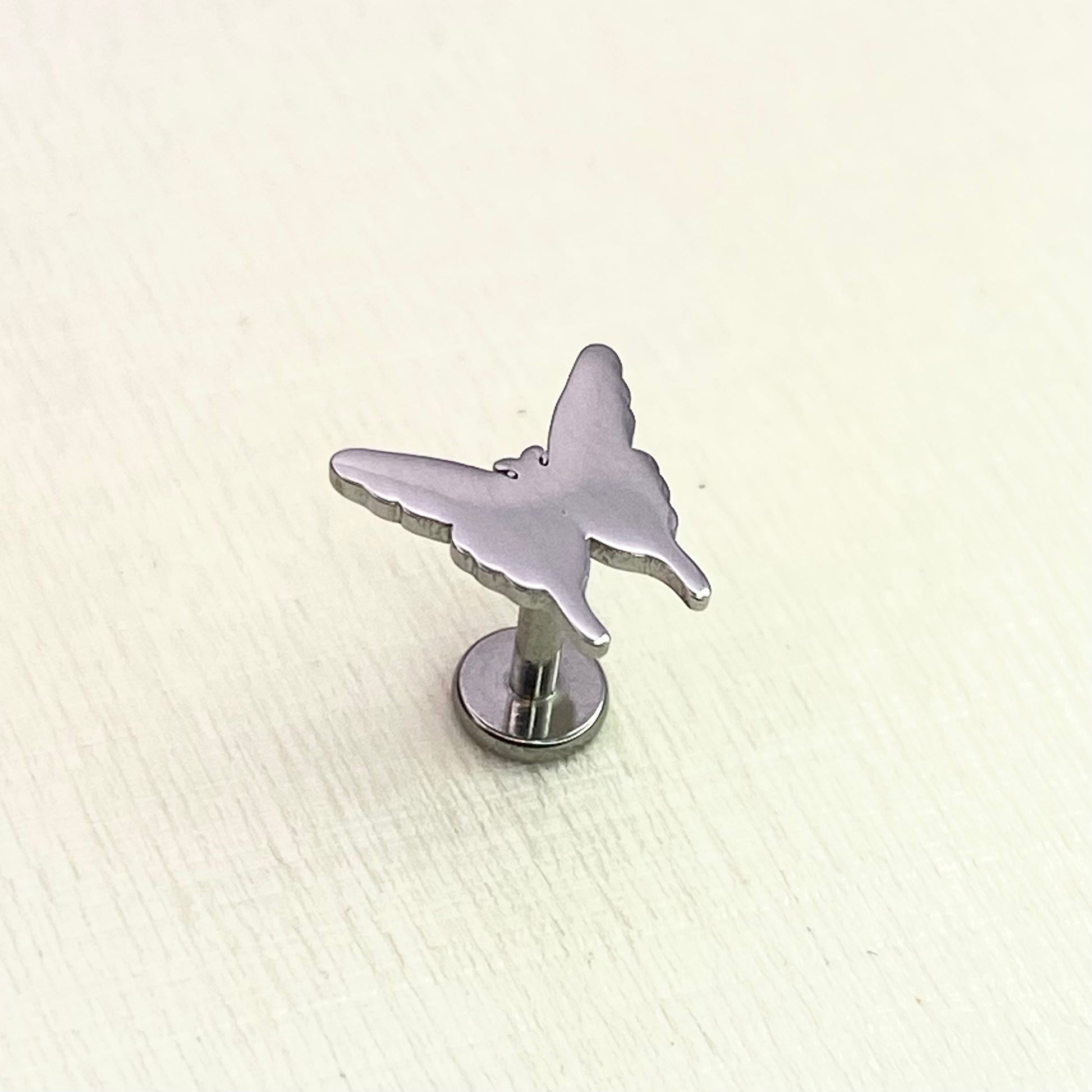 BUTTERFLY Silhouette Top Medical grade ASTM:F-136 titanium labret 1.2x8mm Internal thread conch,helix,tragus,ear lobe flat jewellery
