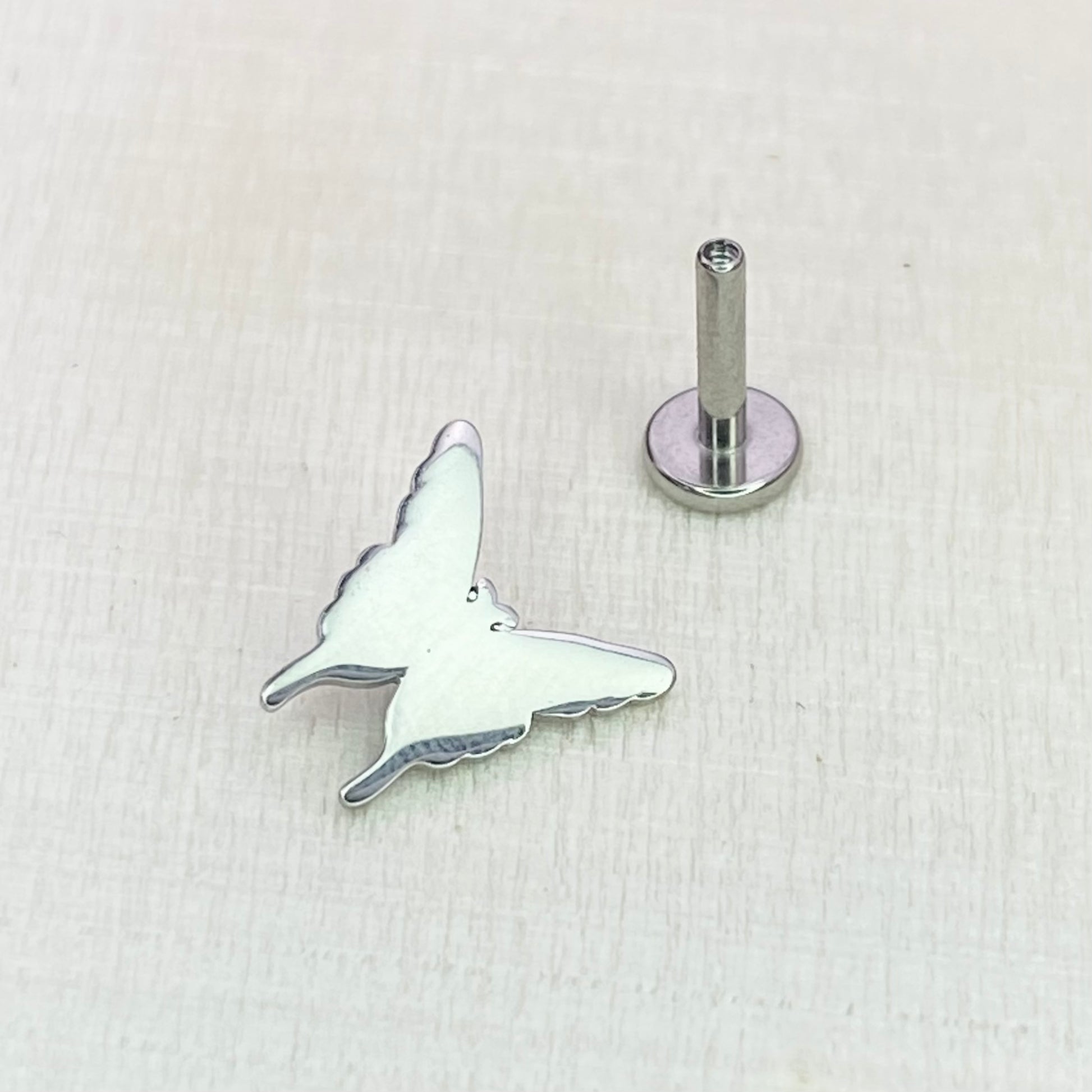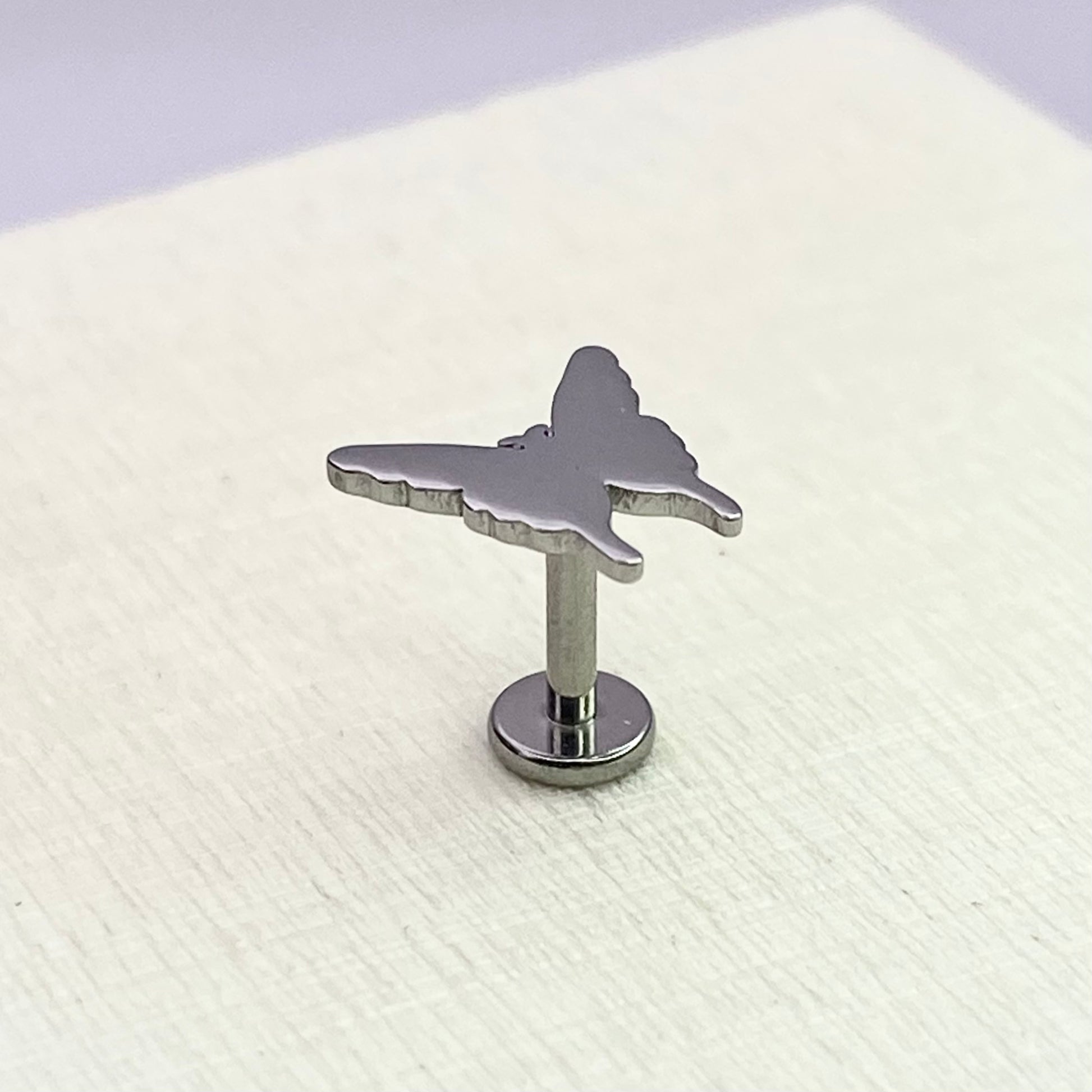BUTTERFLY Silhouette Top Medical grade ASTM:F-136 titanium labret 1.2 x 8mm Internal thread conch,helix,tragus,ear lobe flat jewellery