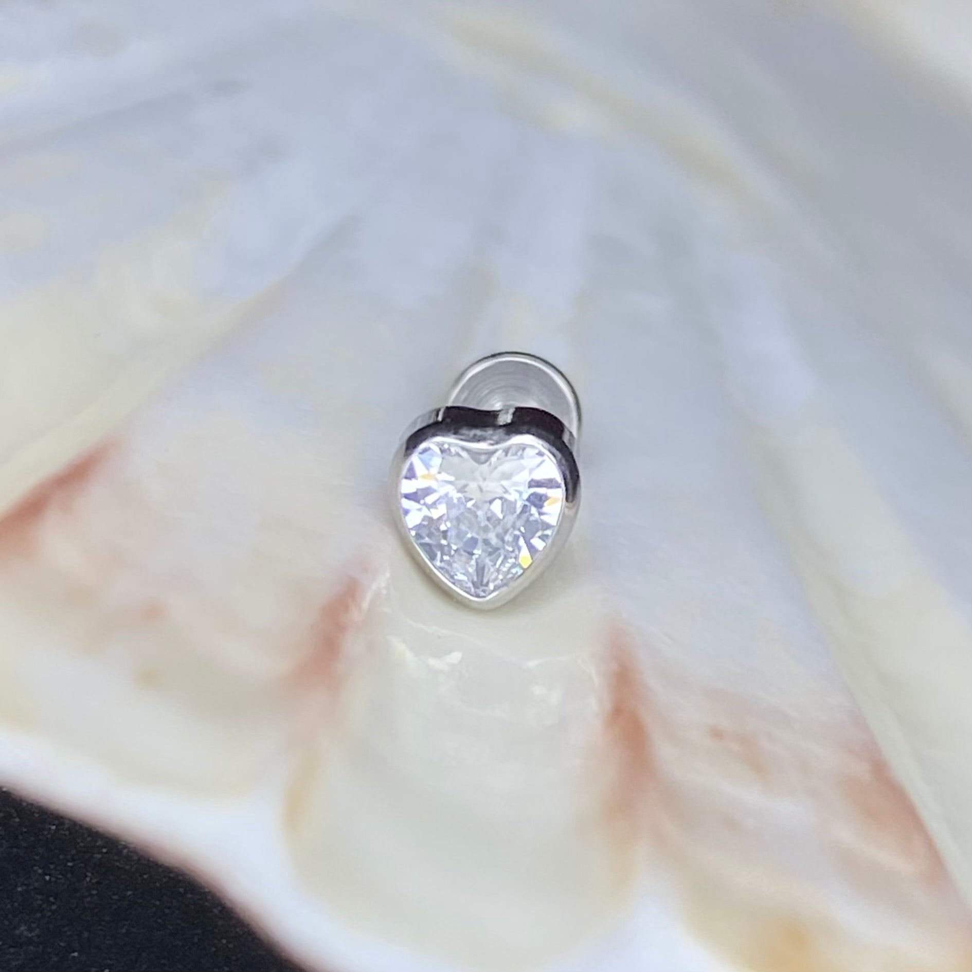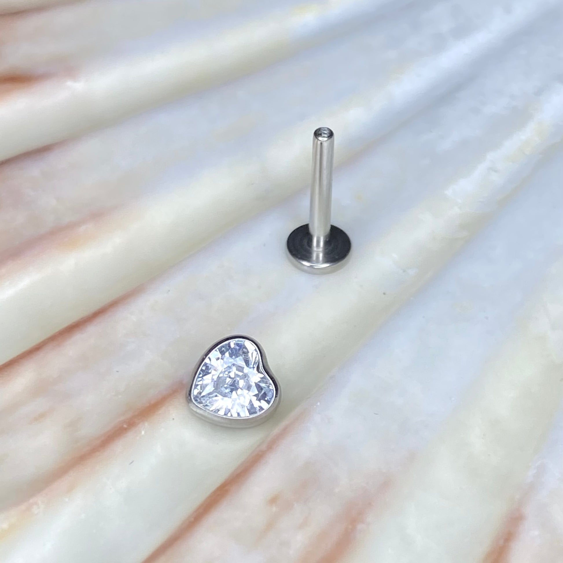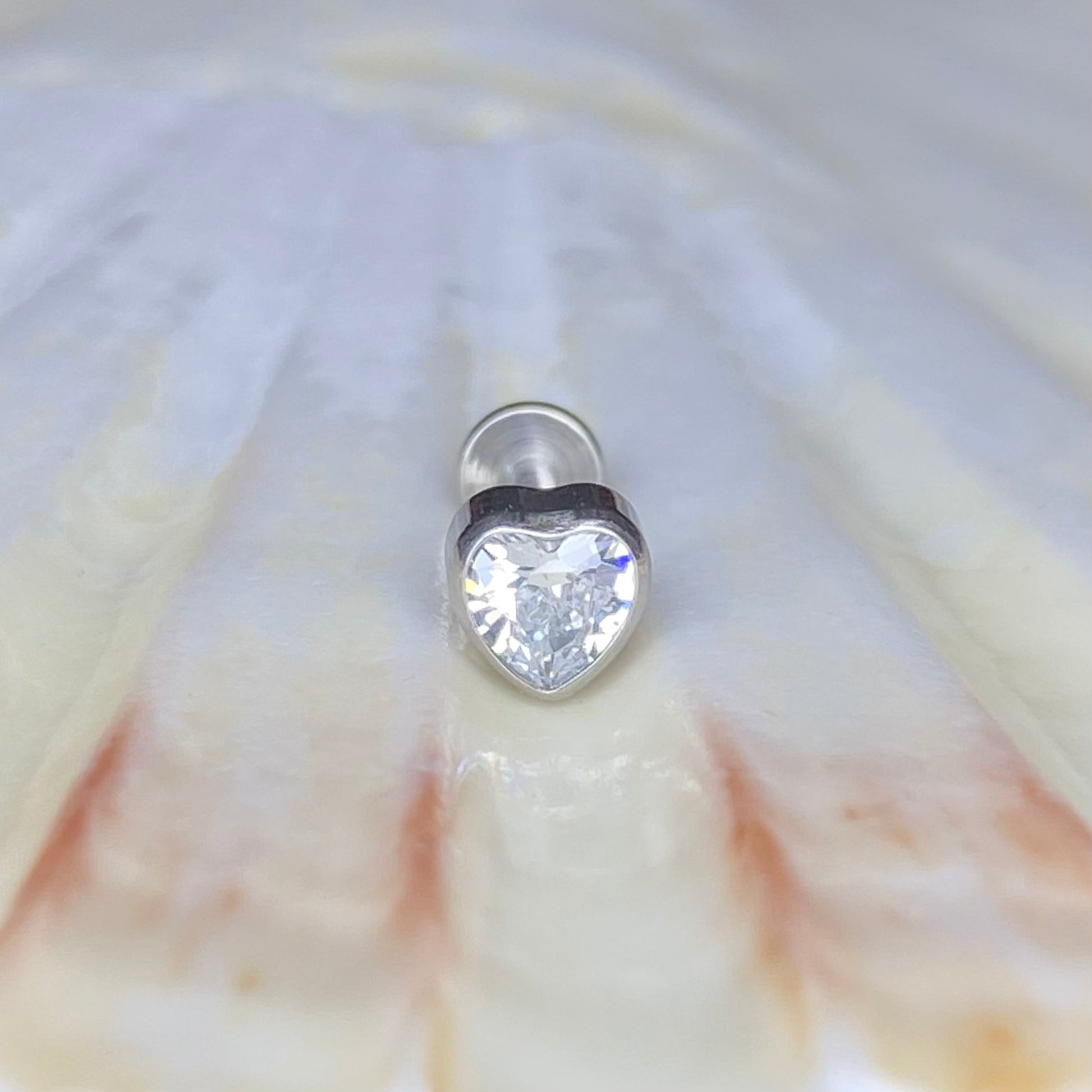 CLEAR GEM HEART Top Push Pin or Internal Thread Medical grade ASTM:F-136 titanium labret 1.2x8mm conch helix tragus ear lobe flat jewellery
