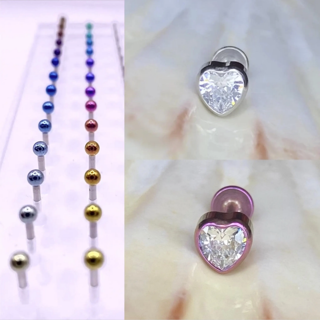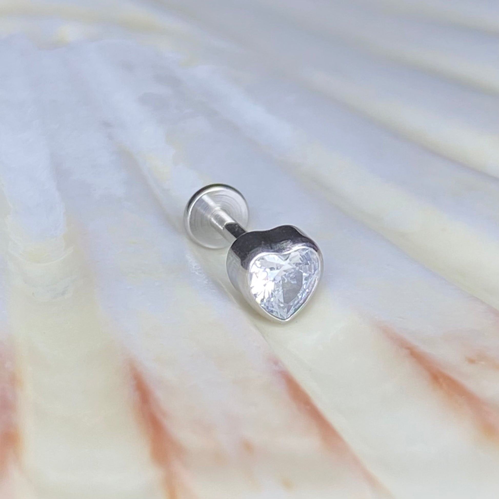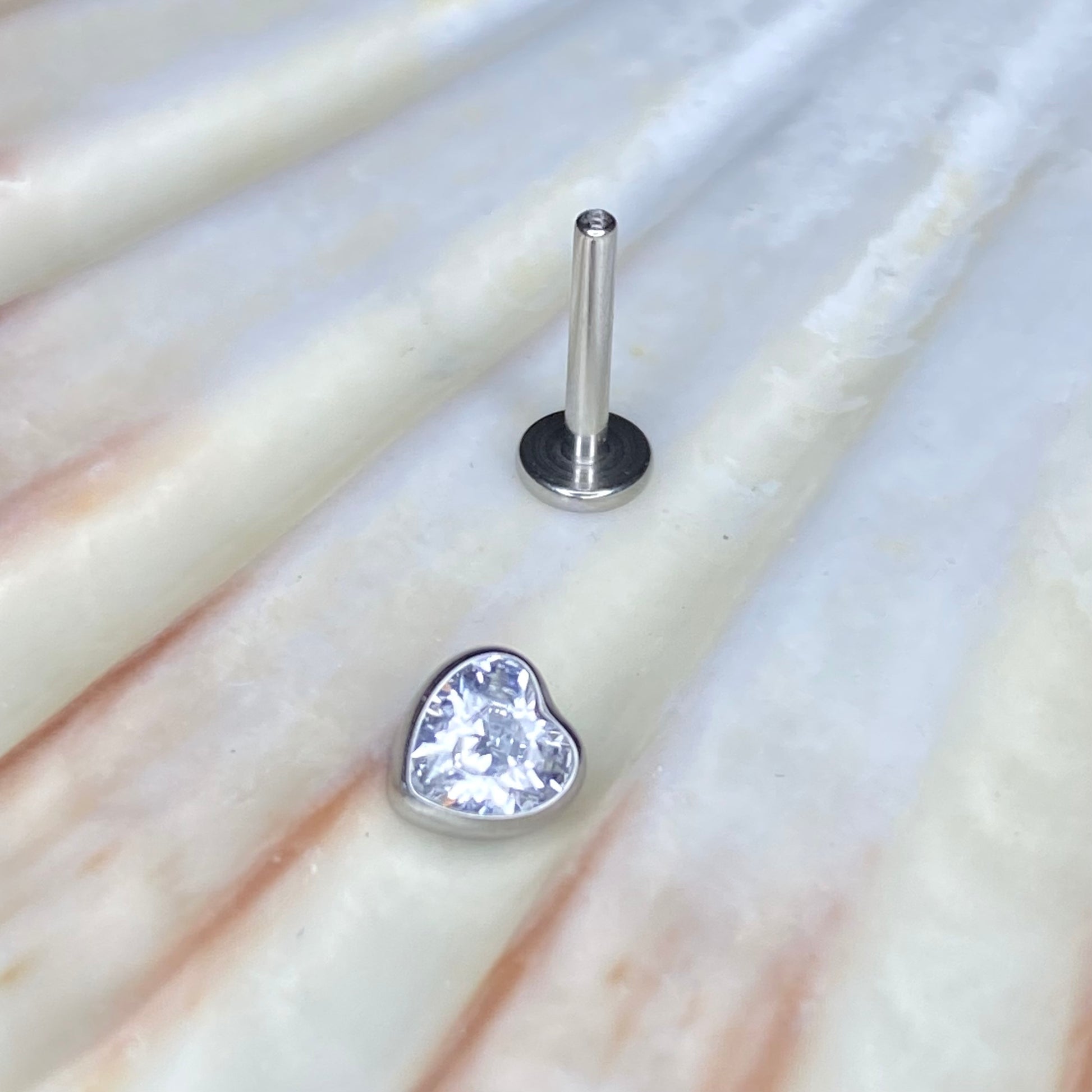 CLEAR GEM HEART Top Push Pin or Internal Thread Medical grade ASTM:F-136 titanium labret 1.2x8mm conch helix tragus ear lobe flat jewellery