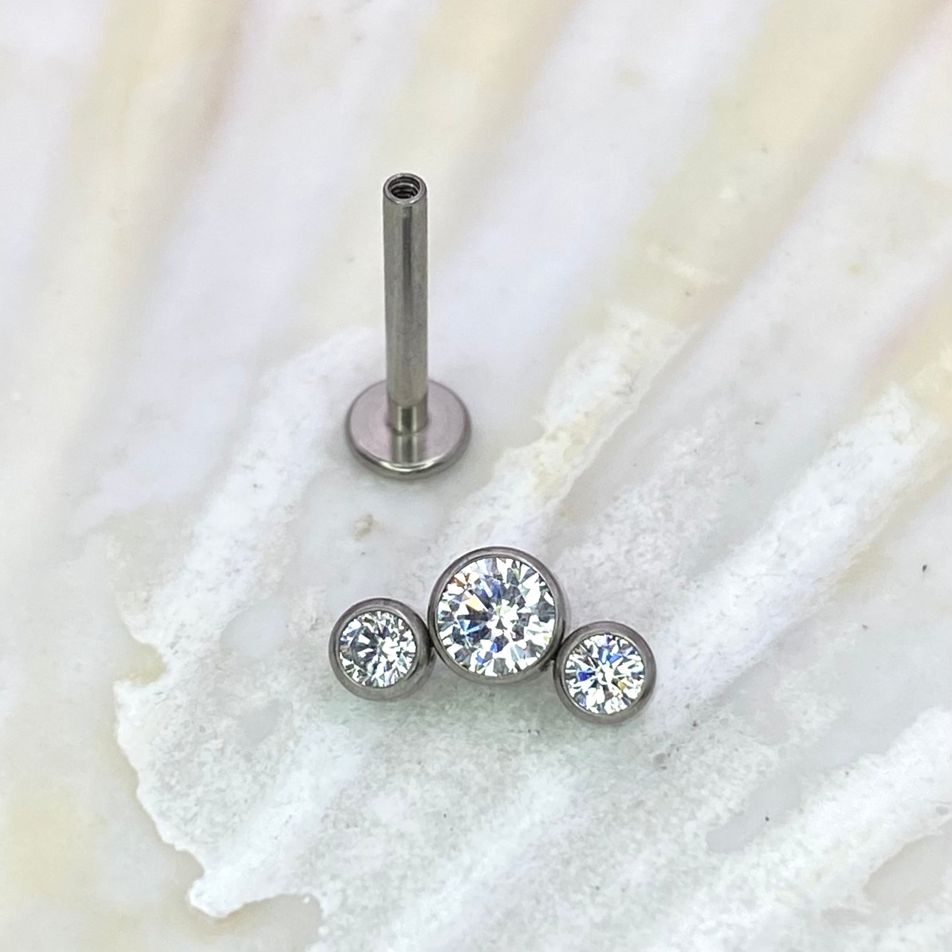CLEAR TRIPLE GEM Cluster Top Medical Grade ASTM F136 Titanium Internal Thread Labret Ear Jewellery Helix Tragus Lobe Cartilage Earring