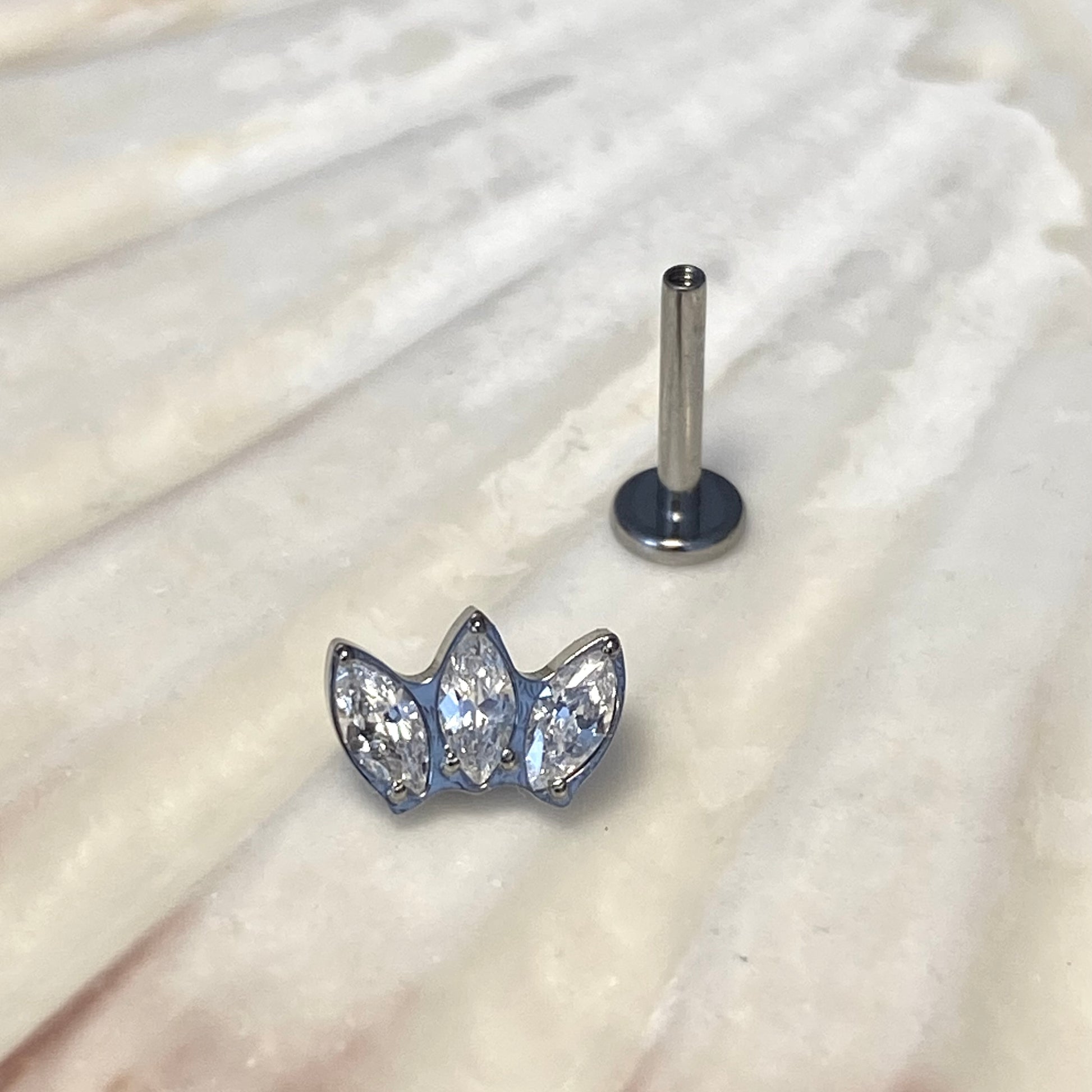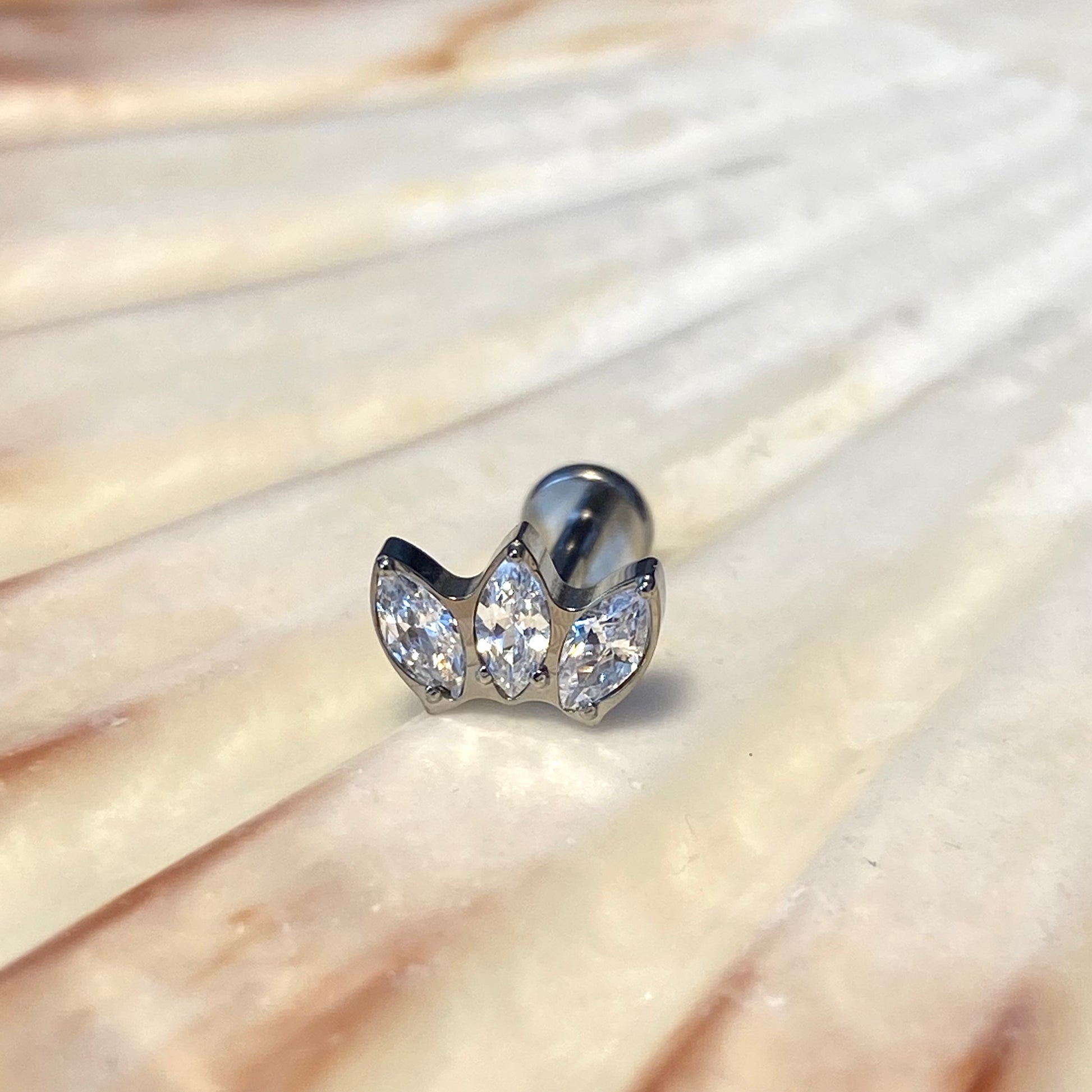 CLEAR Triple Marquise Gem Top Medical Grade ASTM F136 Titanium Internal Thread Labret Ear Jewellery Helix Tragus Cartilage Earring