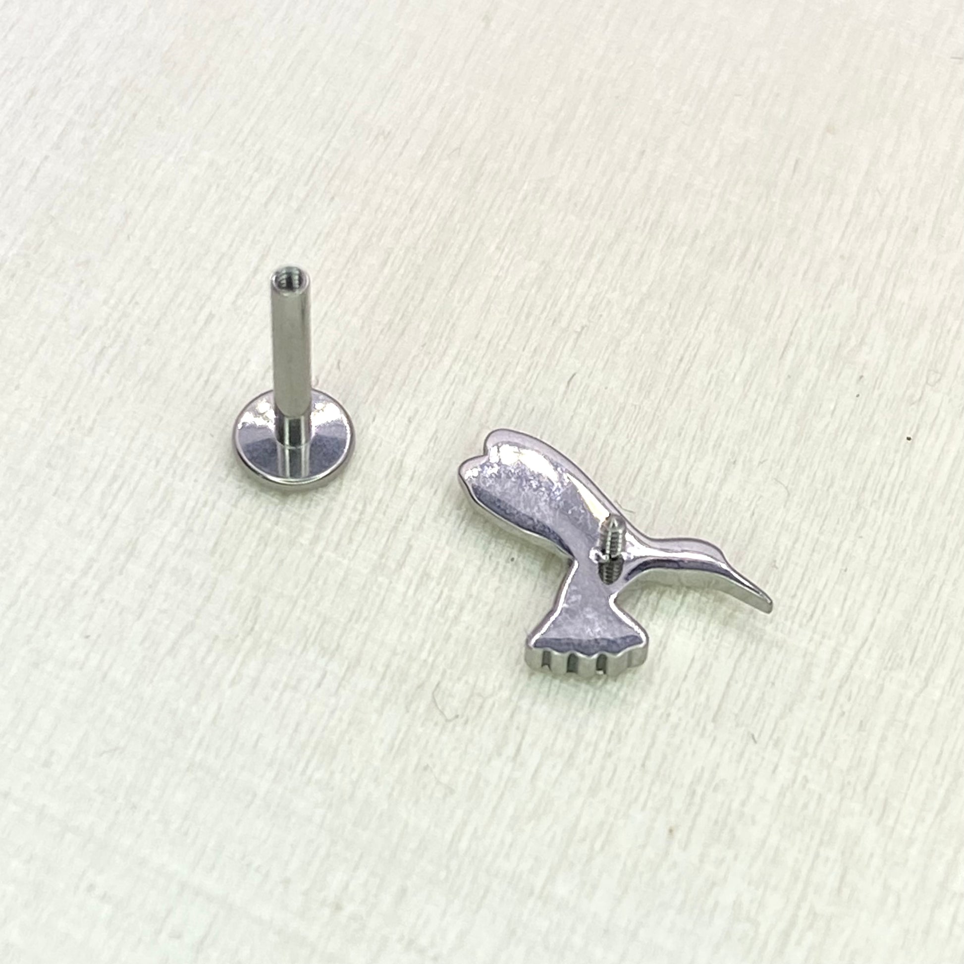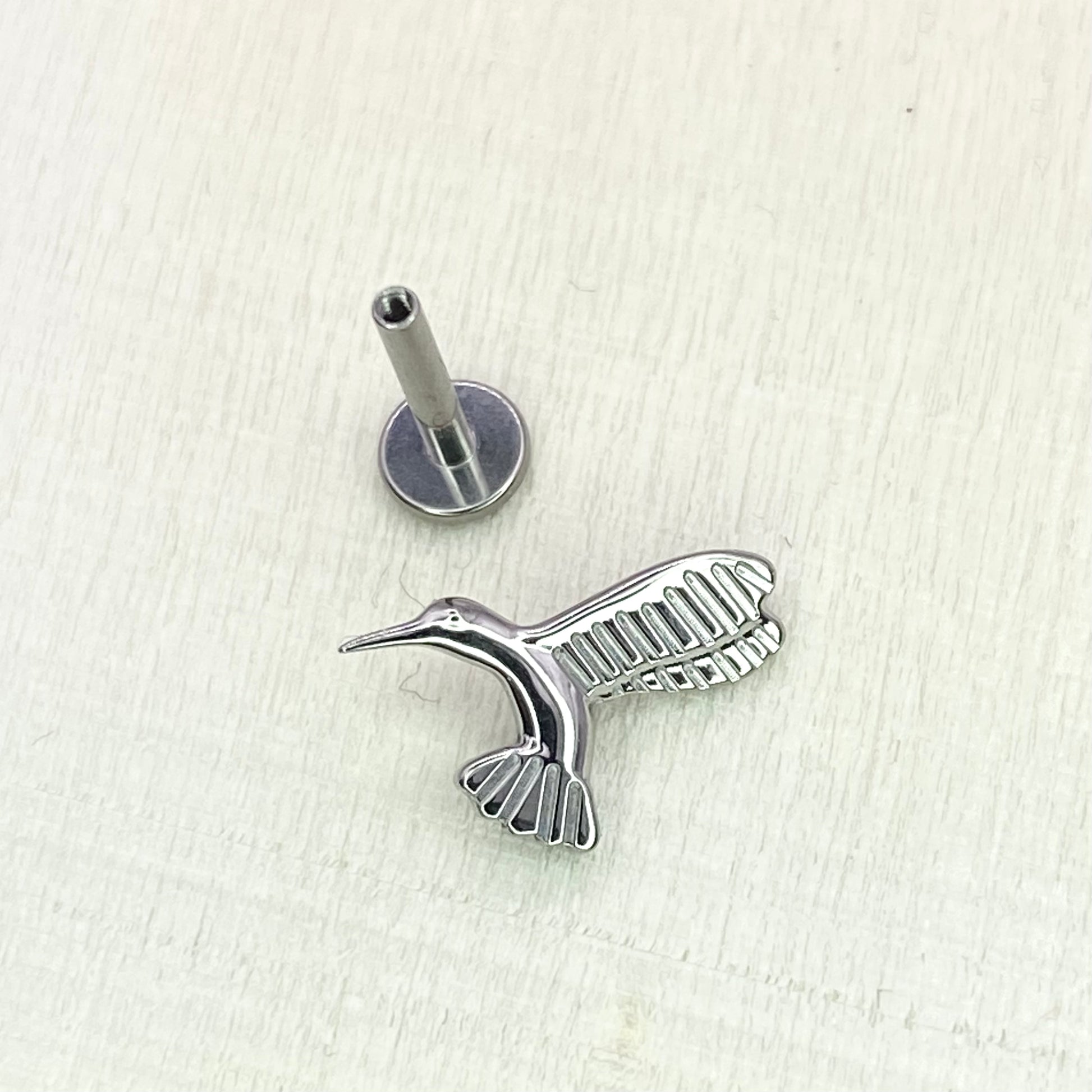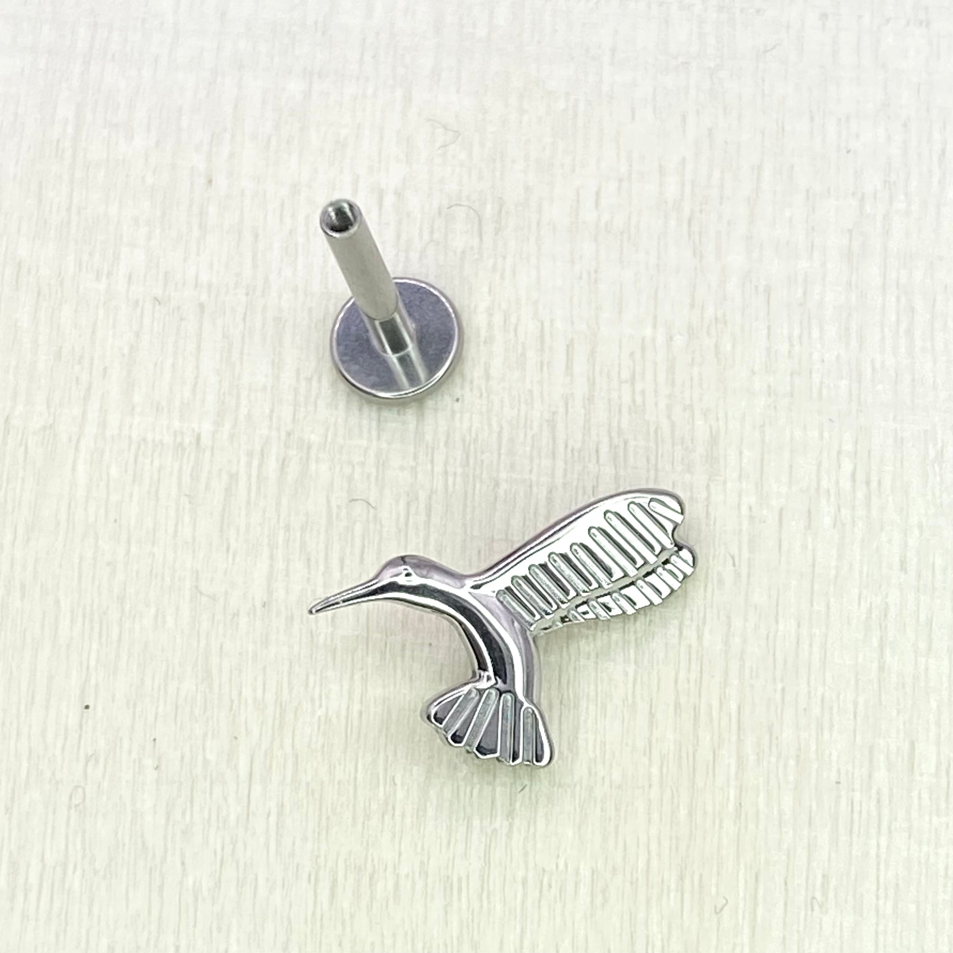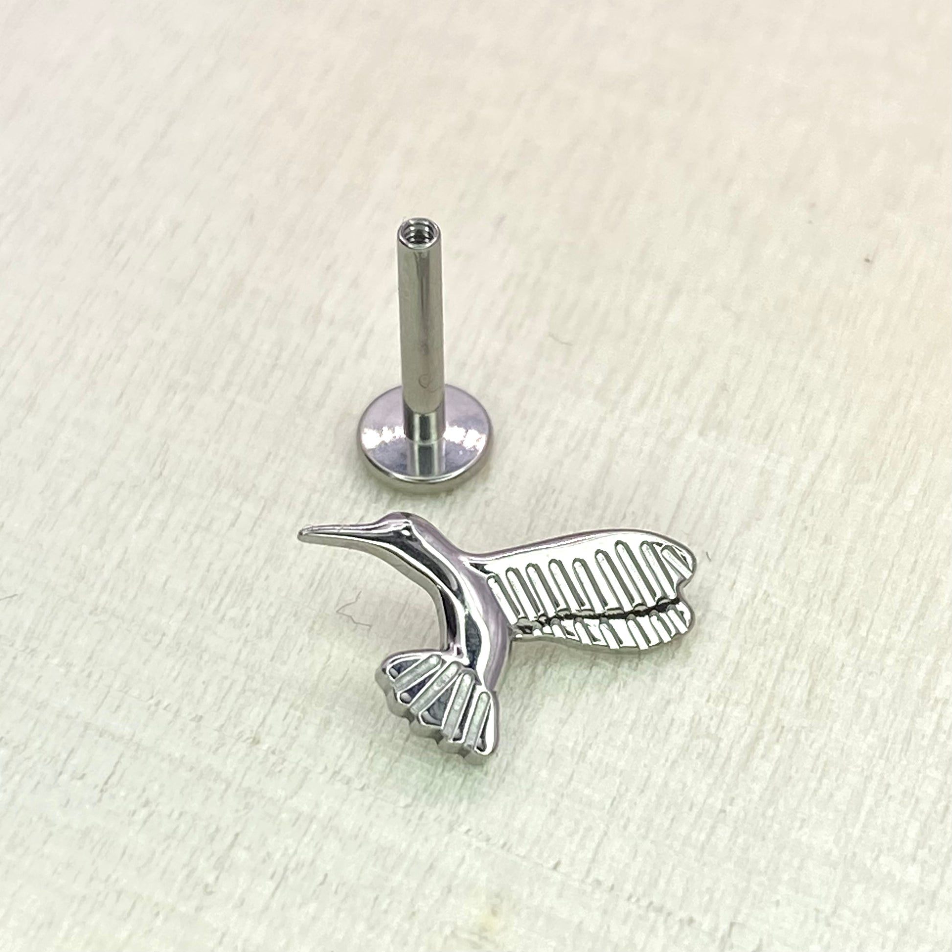 Detailed Hummingbird Top Implant Grade ASTM:F-136 Titanium Labret 1.2x6/8/10mm Earring Internal Thread