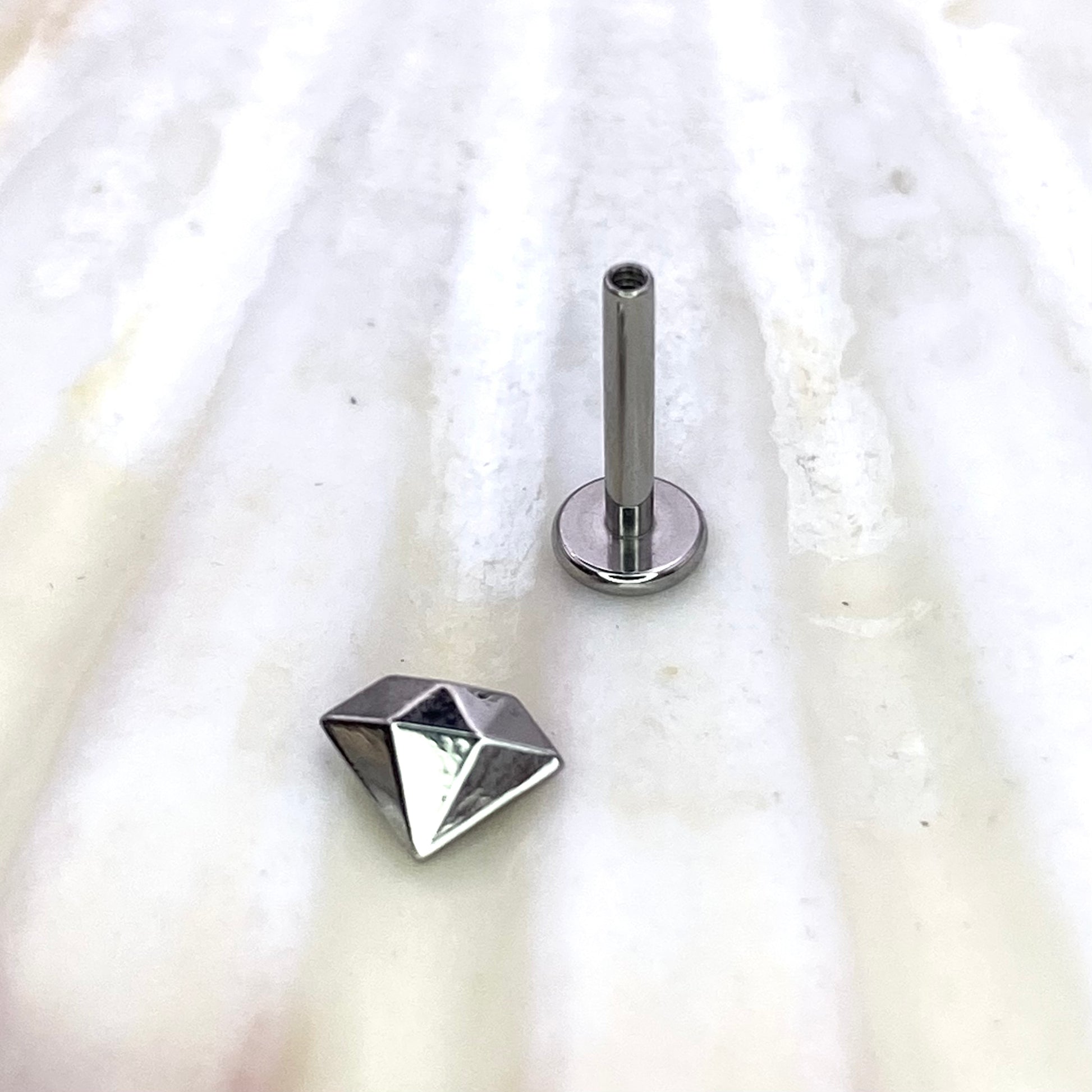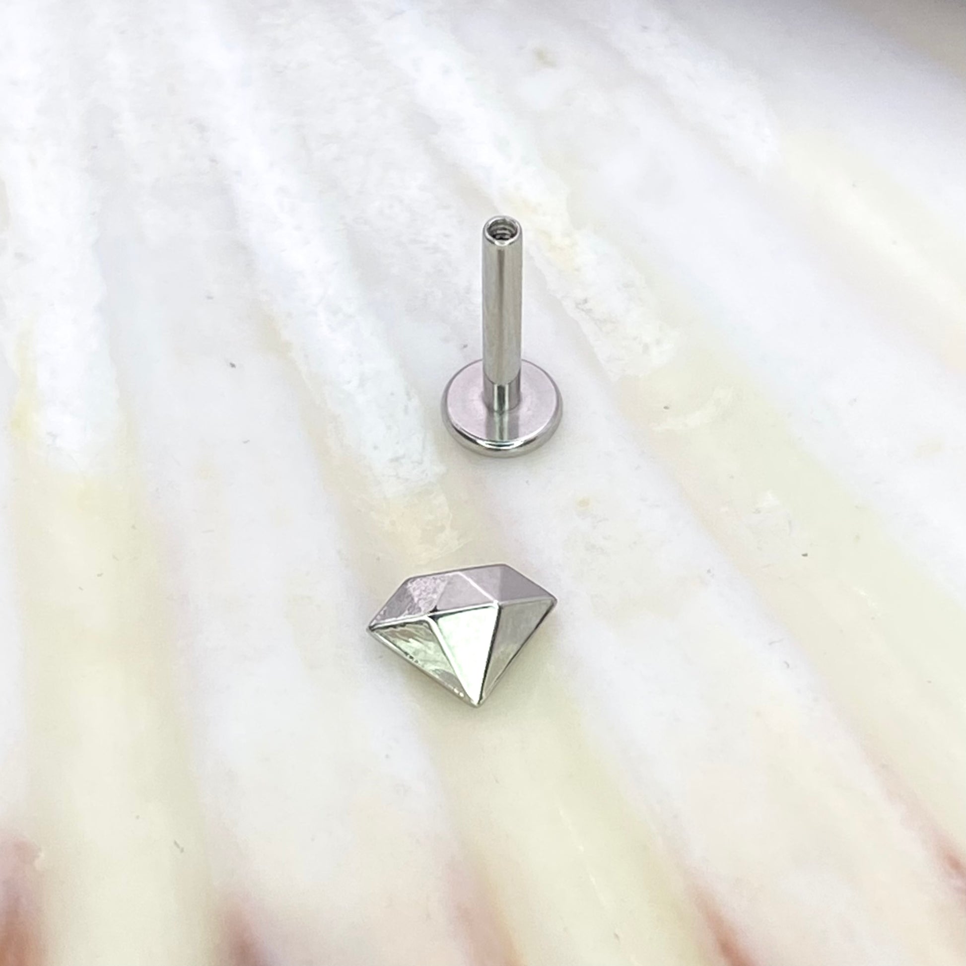 DIAMOND Shape Disc Top Internal Thread Medical grade titanium ASTM F136 Labret Lobe Helix Flat Tragus Jewellery size:1.2 x 6/8/10mm