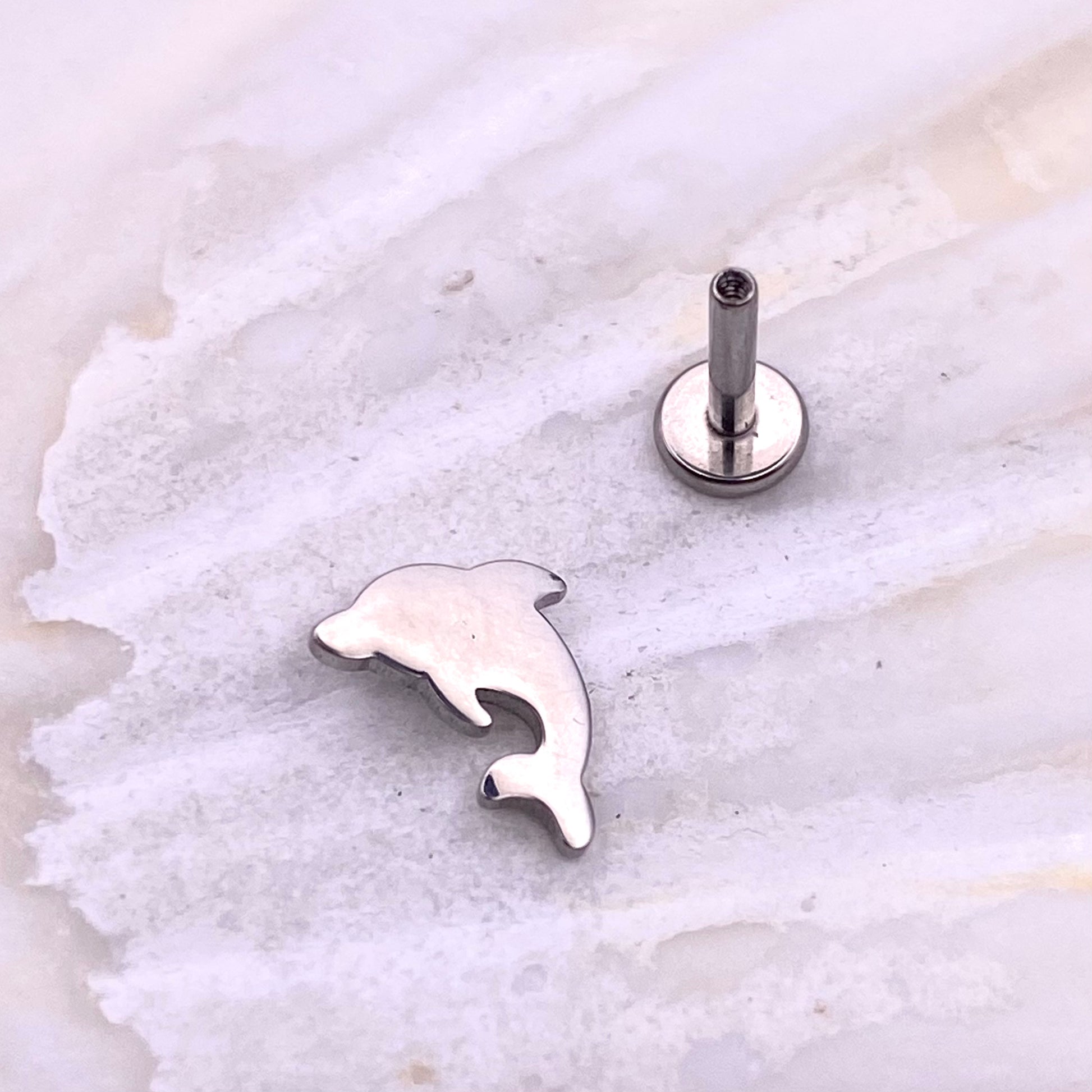 DOLPHIN Disc Top Internal Thread Medical grade titanium ASTM F136 Labret Stud Tragus Lobe Helix Flat Piercing Jewellery size:1.2 x 6/8/10mm