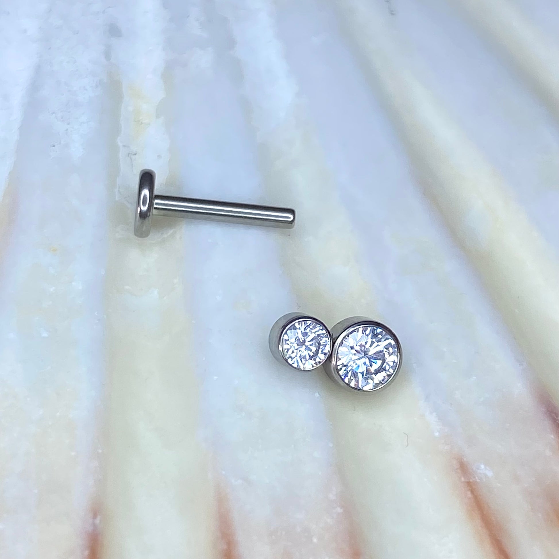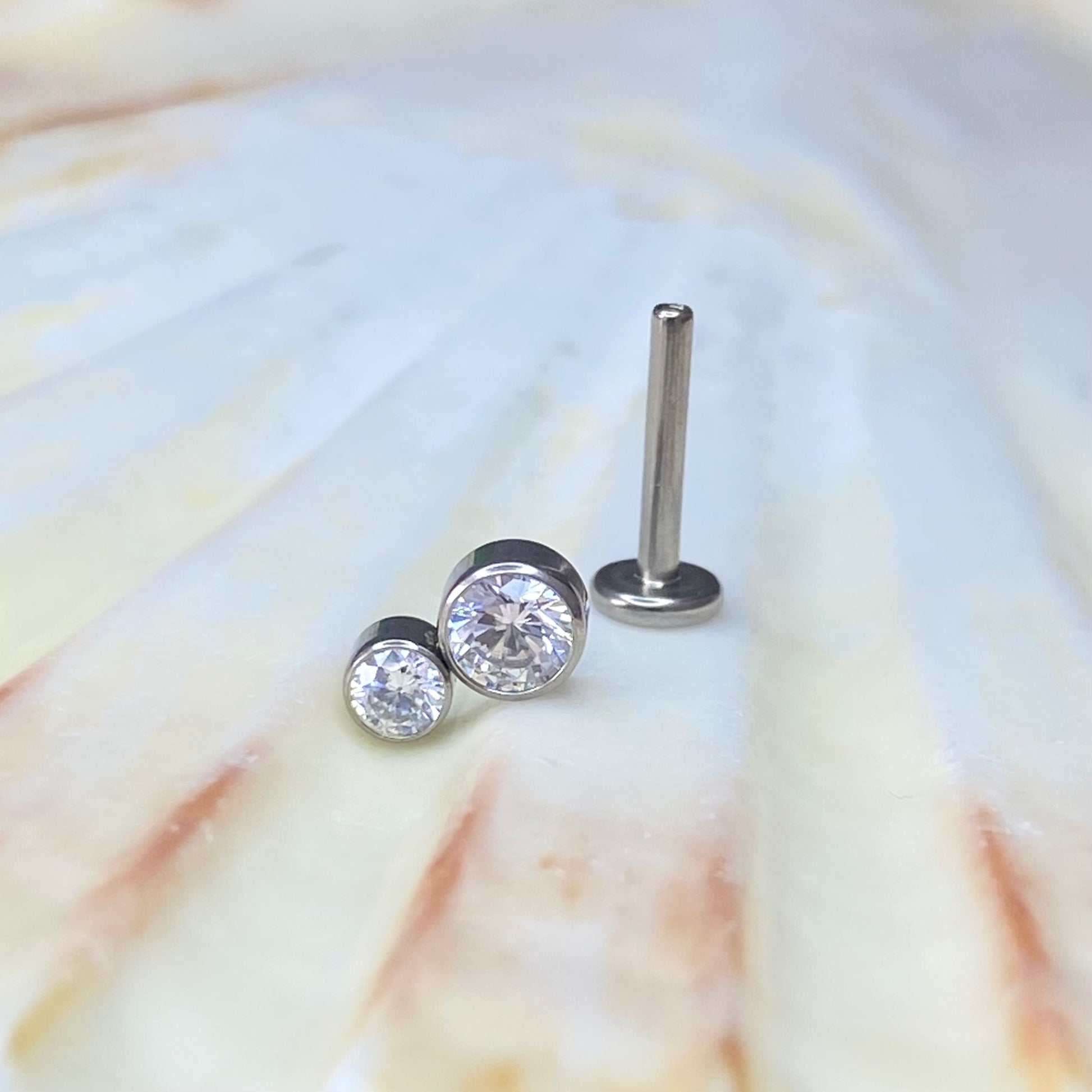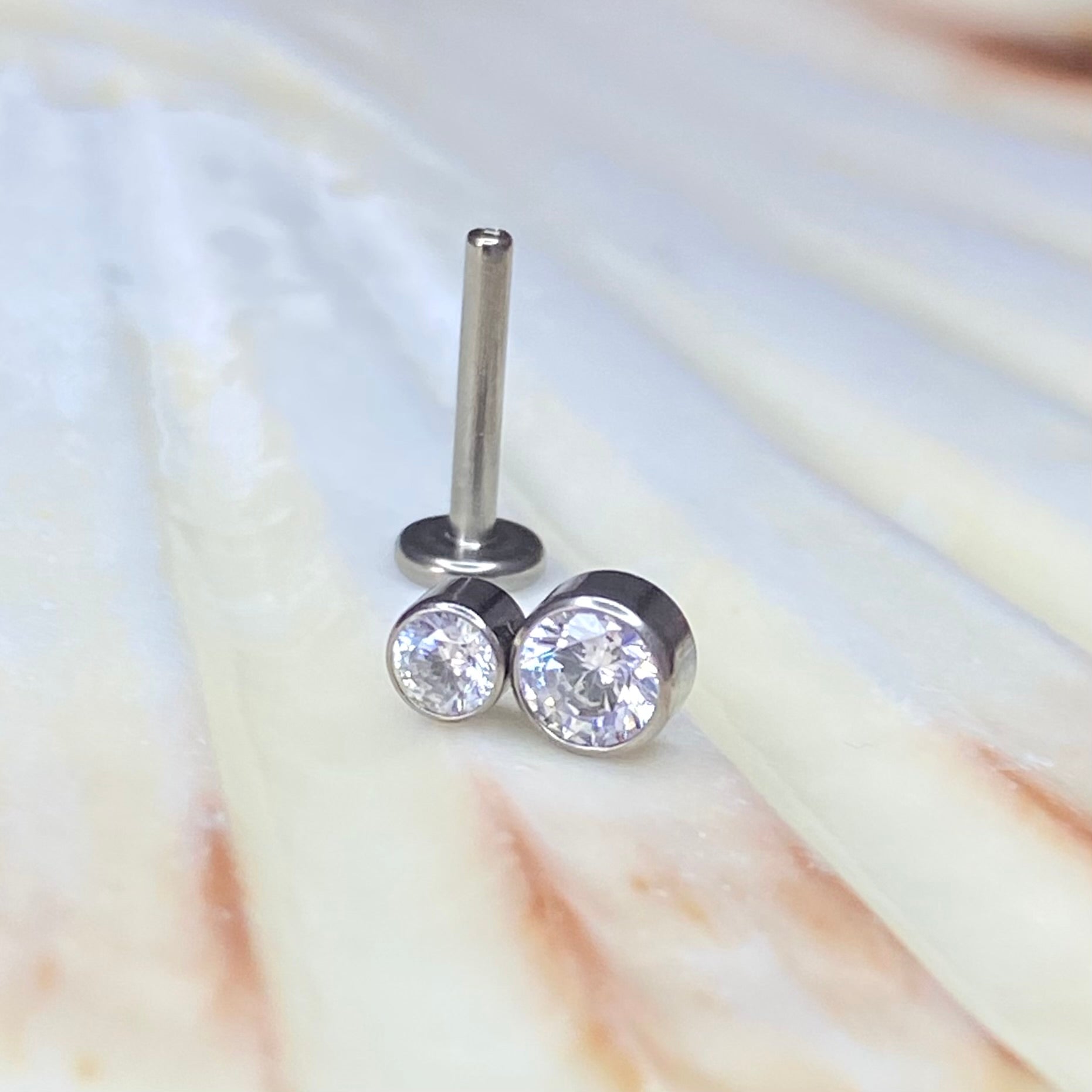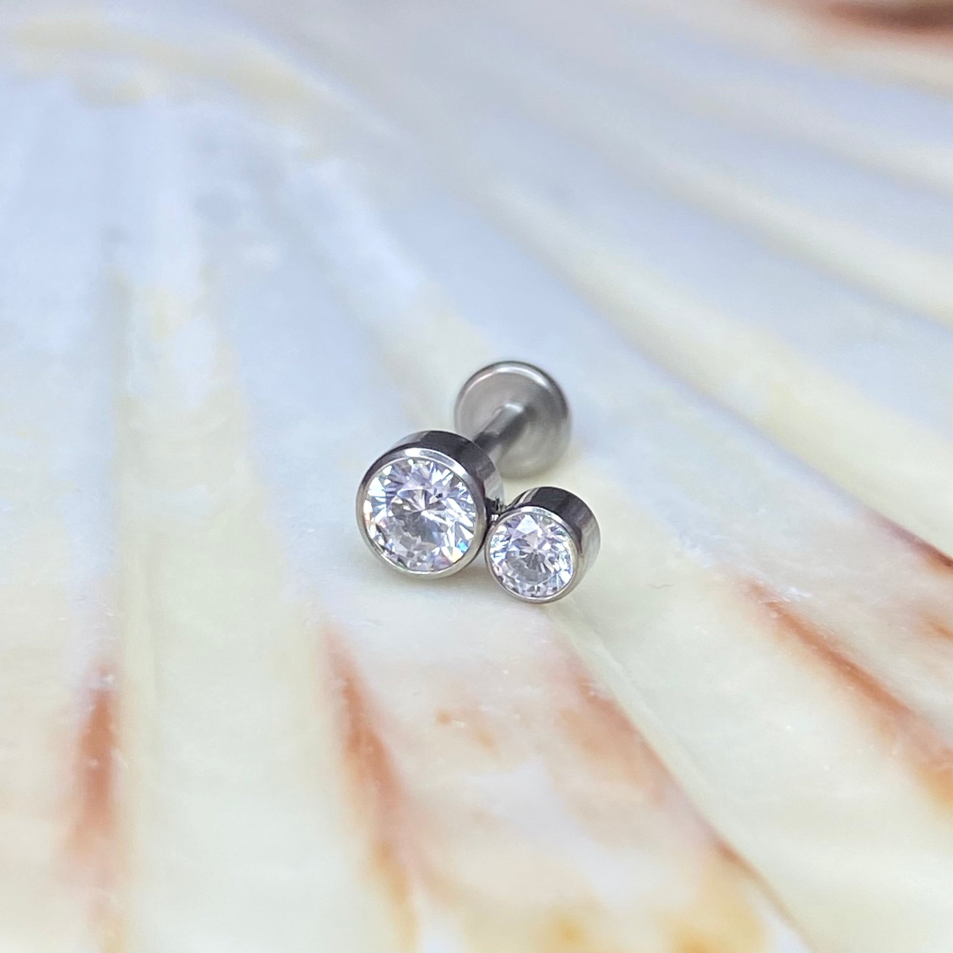 DOUBLE CLEAR Gem Top Medical Grade ASTM F136 Titanium Internal Thread Labret Ear Jewellery Helix Tragus Lobe Cartilage Earring