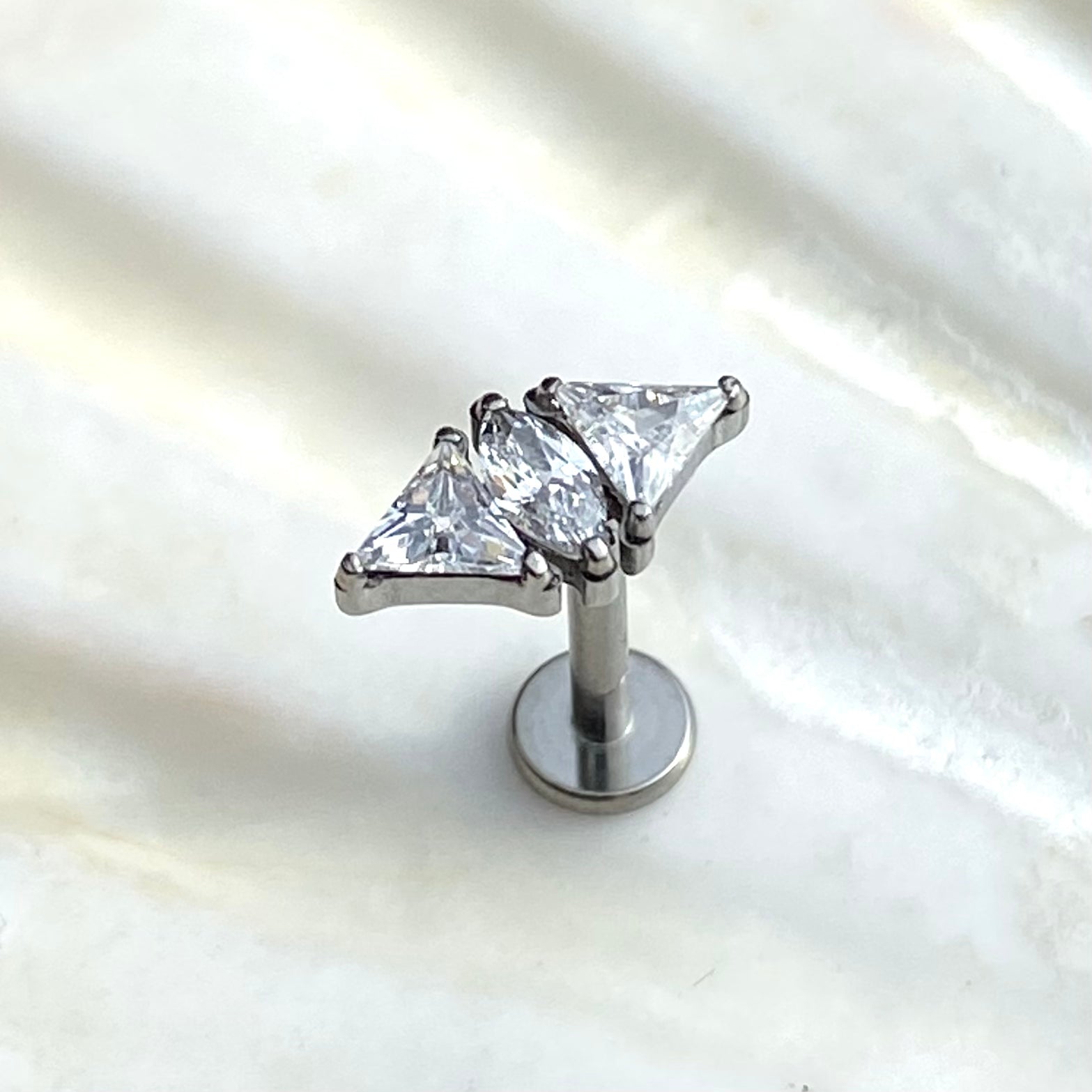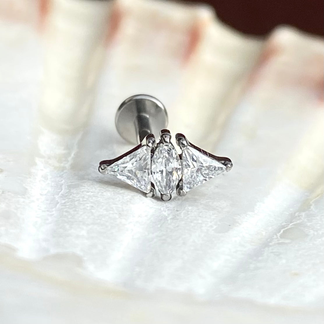 Double Triangle and Marquise Gem top Medical Grade ASTM F136 Titanium Internal Thread Labret Ear Jewellery Helix Tragus Lobe Cartilage Earring