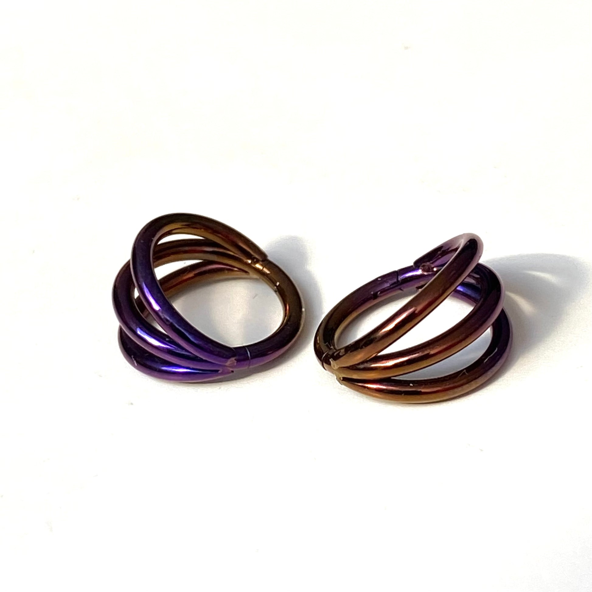 EGGPLANT Colour Anodized Medical Grade ASTM F-136 Titanium Triple Band Hinged Ring Clicker Hoop for Tragus Helix Cartilage Lobe Piercings