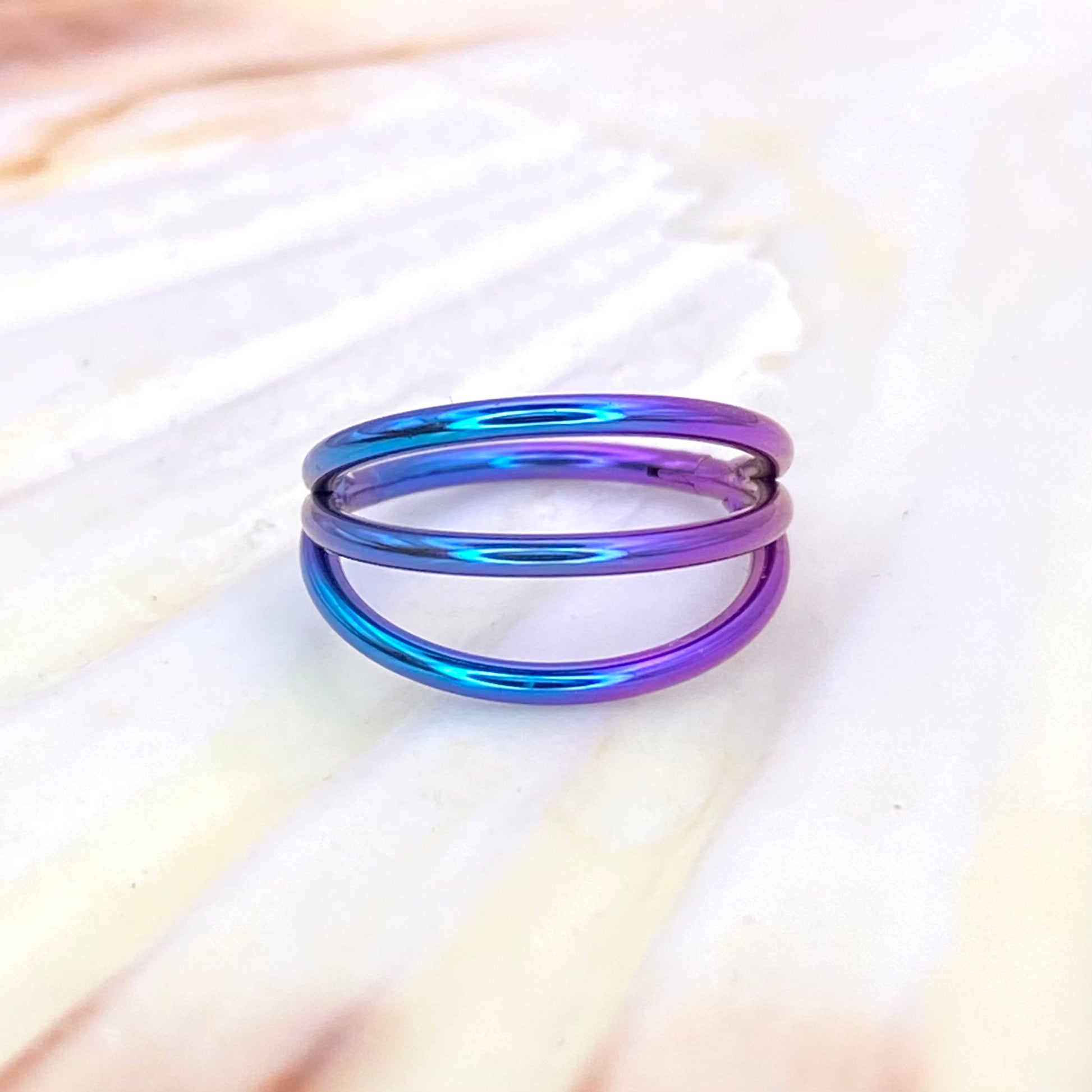 FUCHSIA to TEAL Gradient Anodized Medical Grade ASTM F-136 Titanium Triple Band Hinged Ring Clicker Hoop for Tragus Helix Cartilage Lobe Piercings