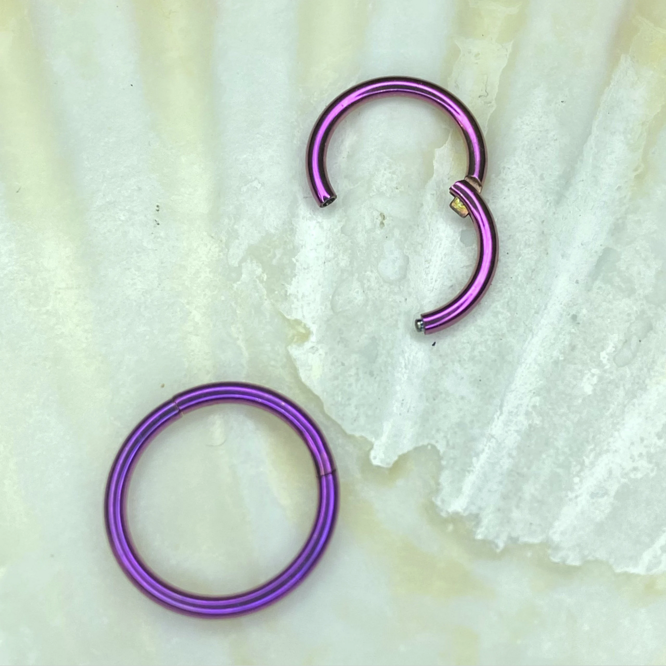 FUCHSIA ANODIZED Medical Grade Titanium Hinged Seamless Segment Ring Clicker Hoop Conch Tragus Helix Nose Septum Piercings