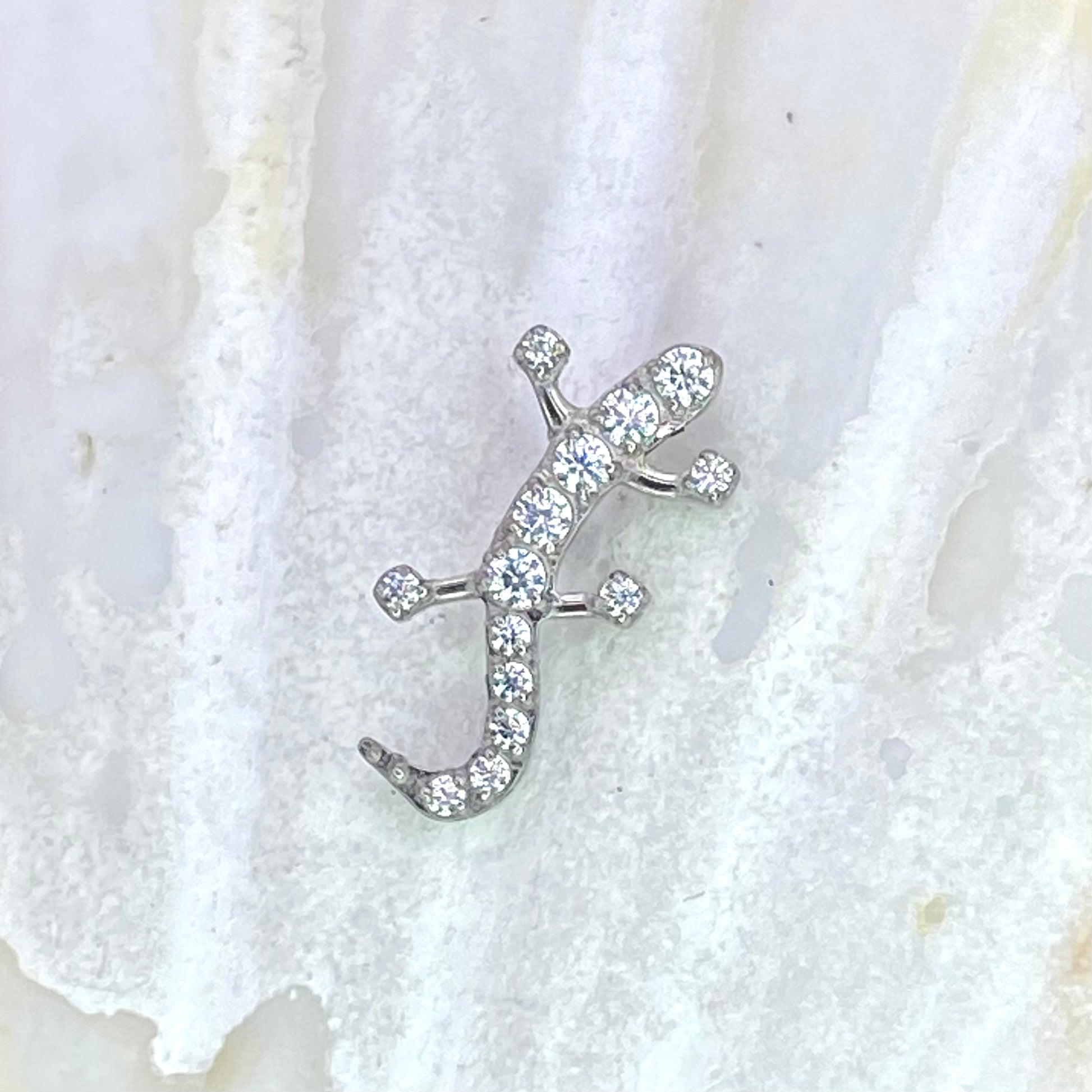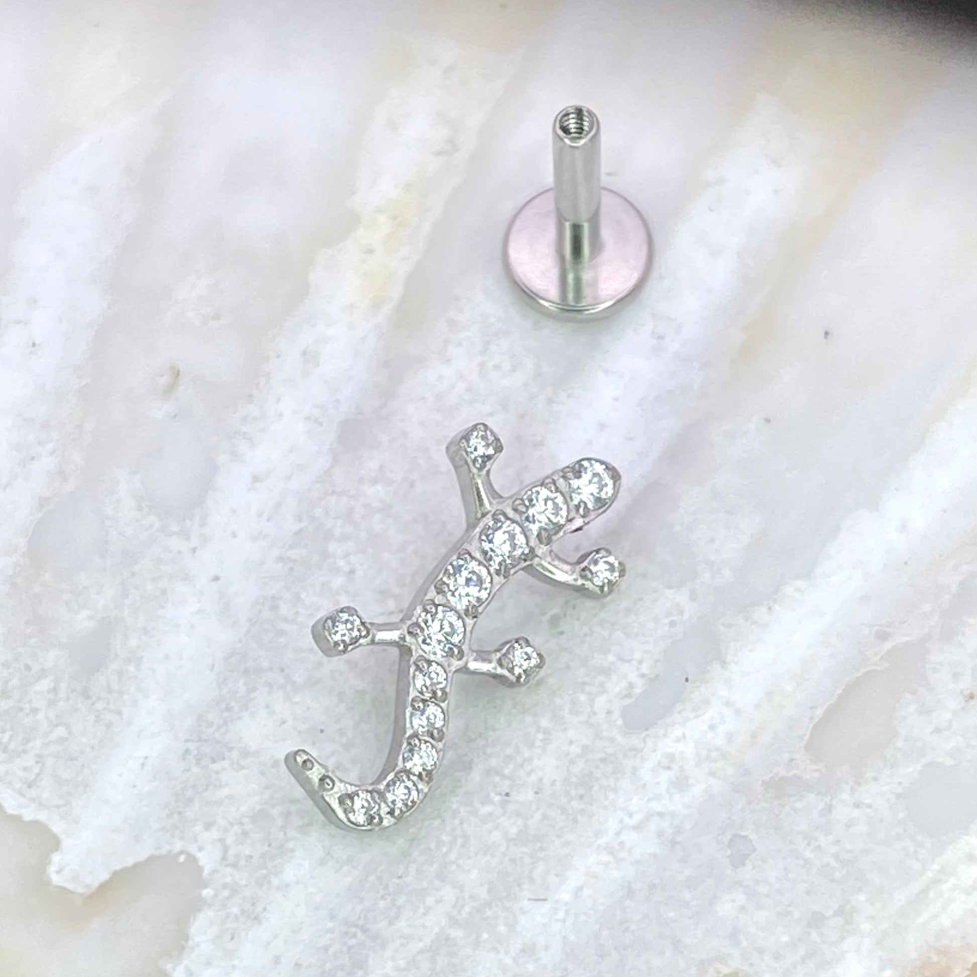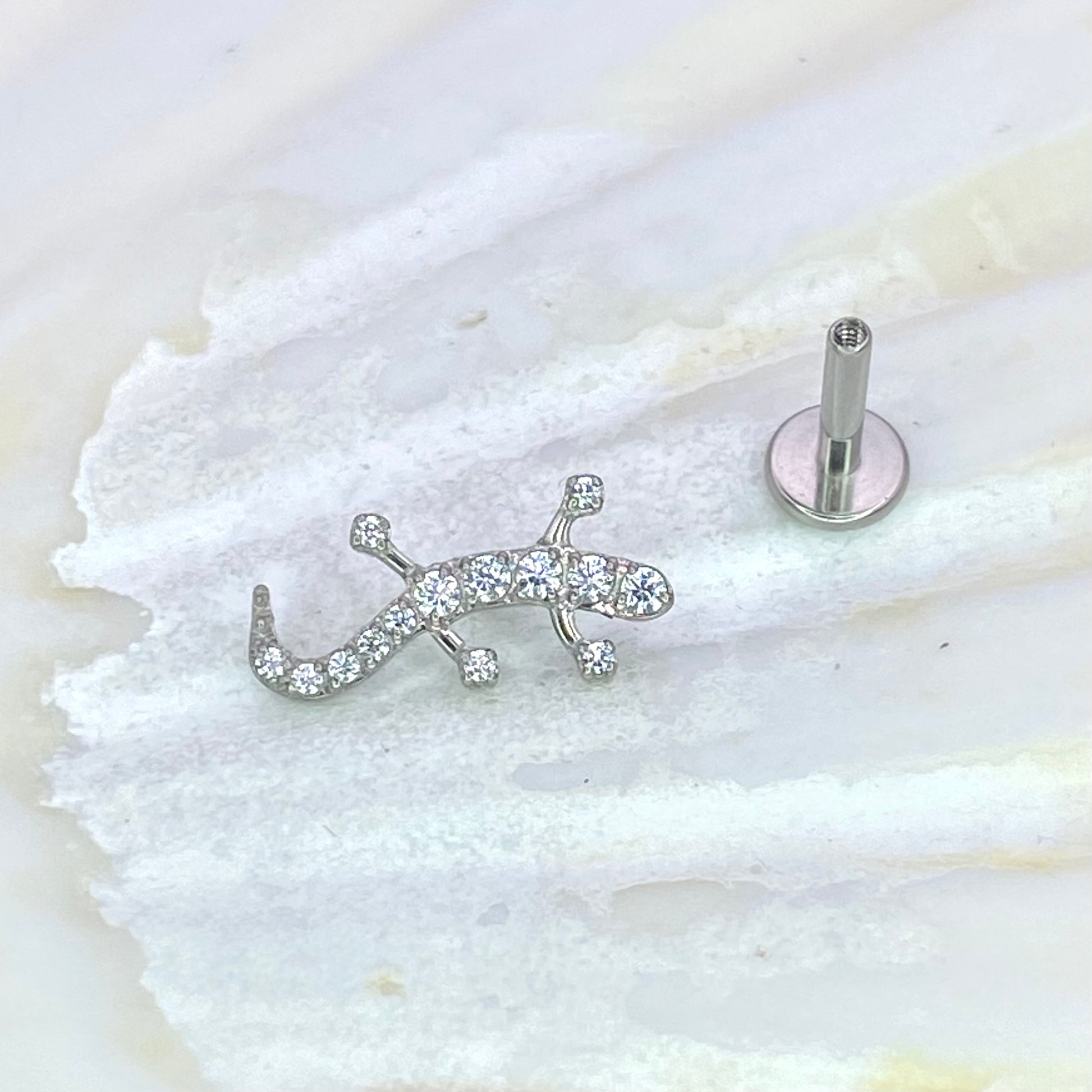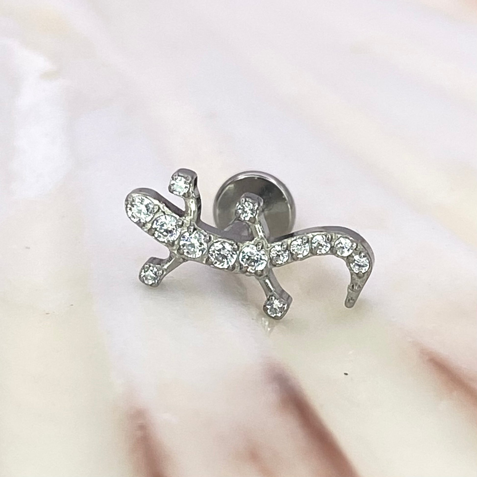 GECKO Clear Gem Top Medical grade ASTM:F-136 titanium labret, Internal thread conch, helix, tragus, ear lobe, flat jewellery