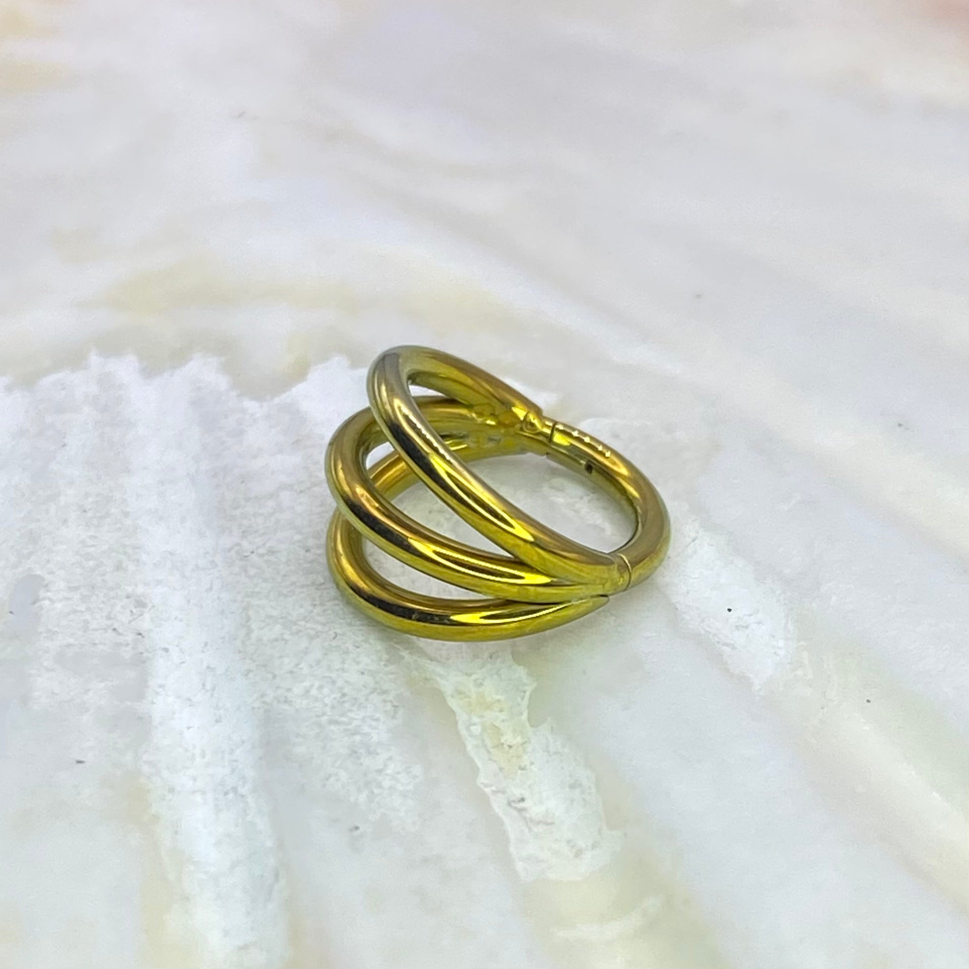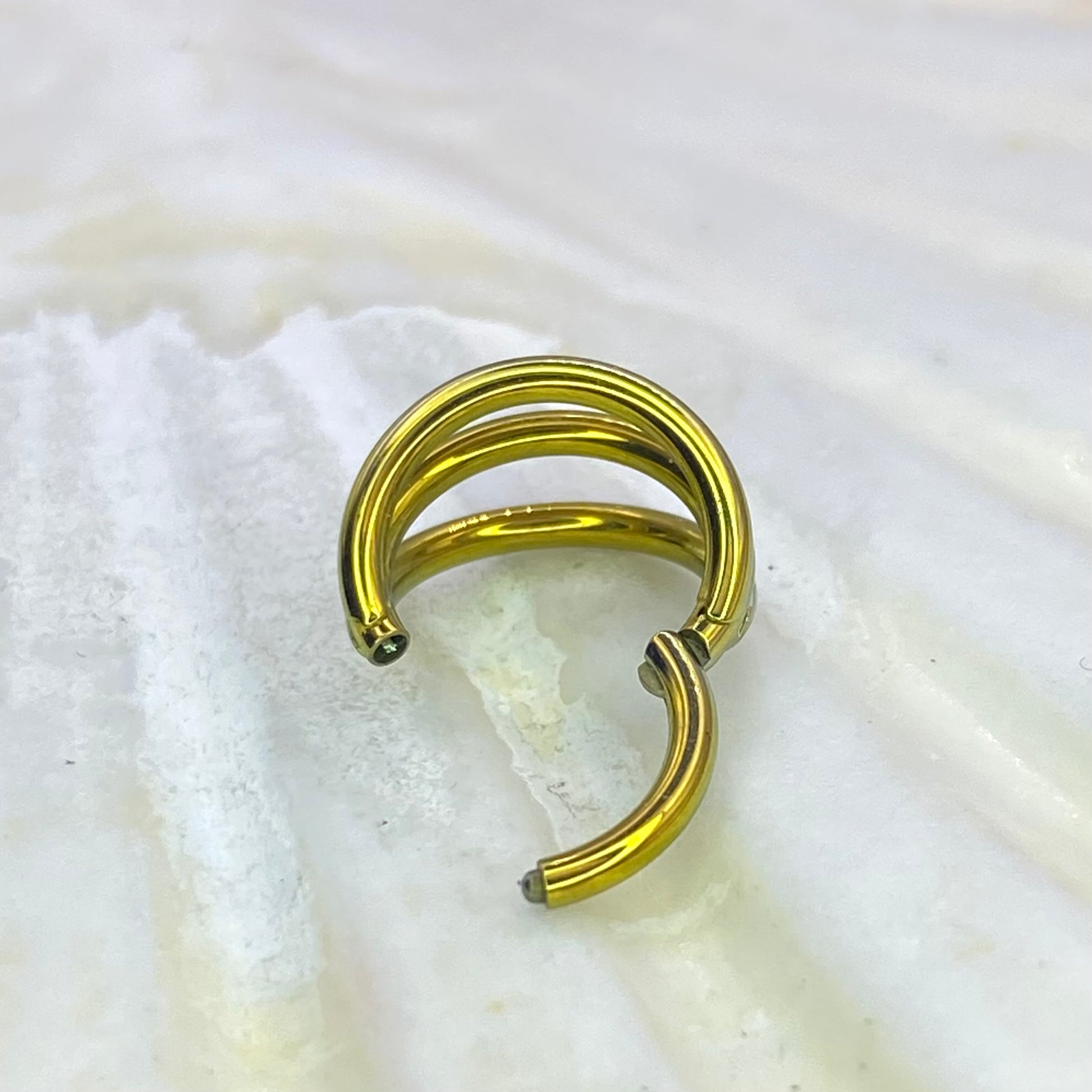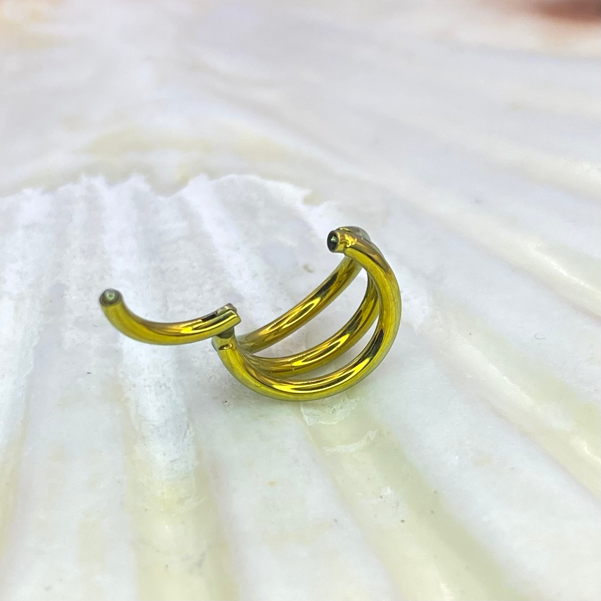 GOLD Anodized Medical Grade ASTM F-136 Titanium Triple Band Hinged Ring Clicker Hoop for Tragus Helix Cartilage Lobe Piercings