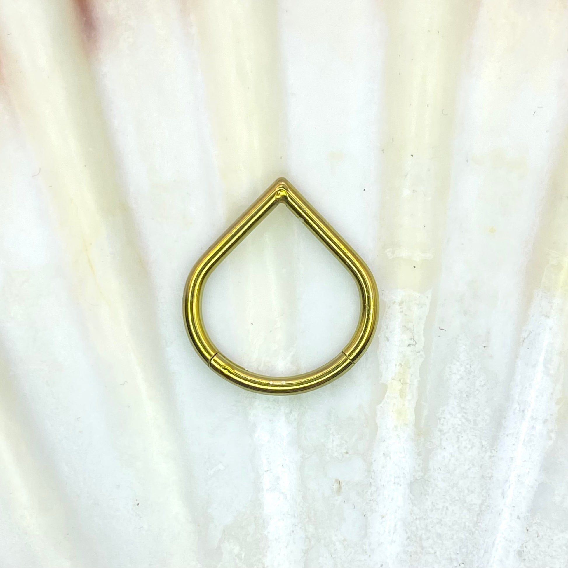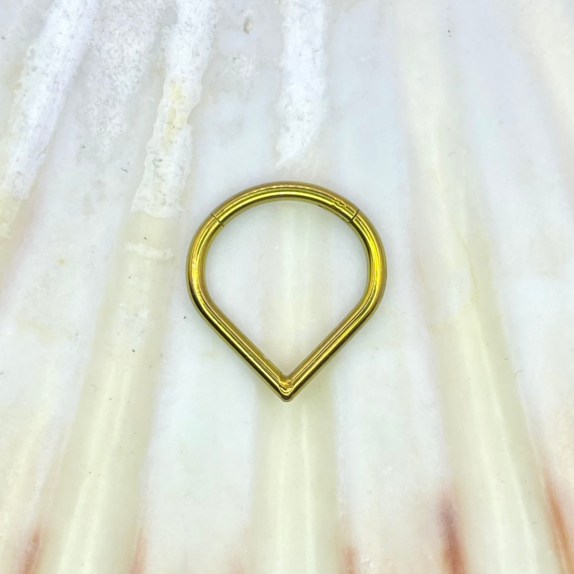 GOLD Anodized TEARDROP Shape Medical Grade Titanium Hinged Clicker Ring, Septum, Lobe, Daith Piercings size: 1.2 x 8/10 mm