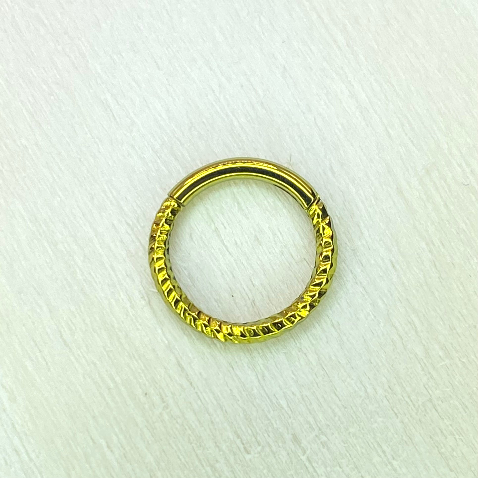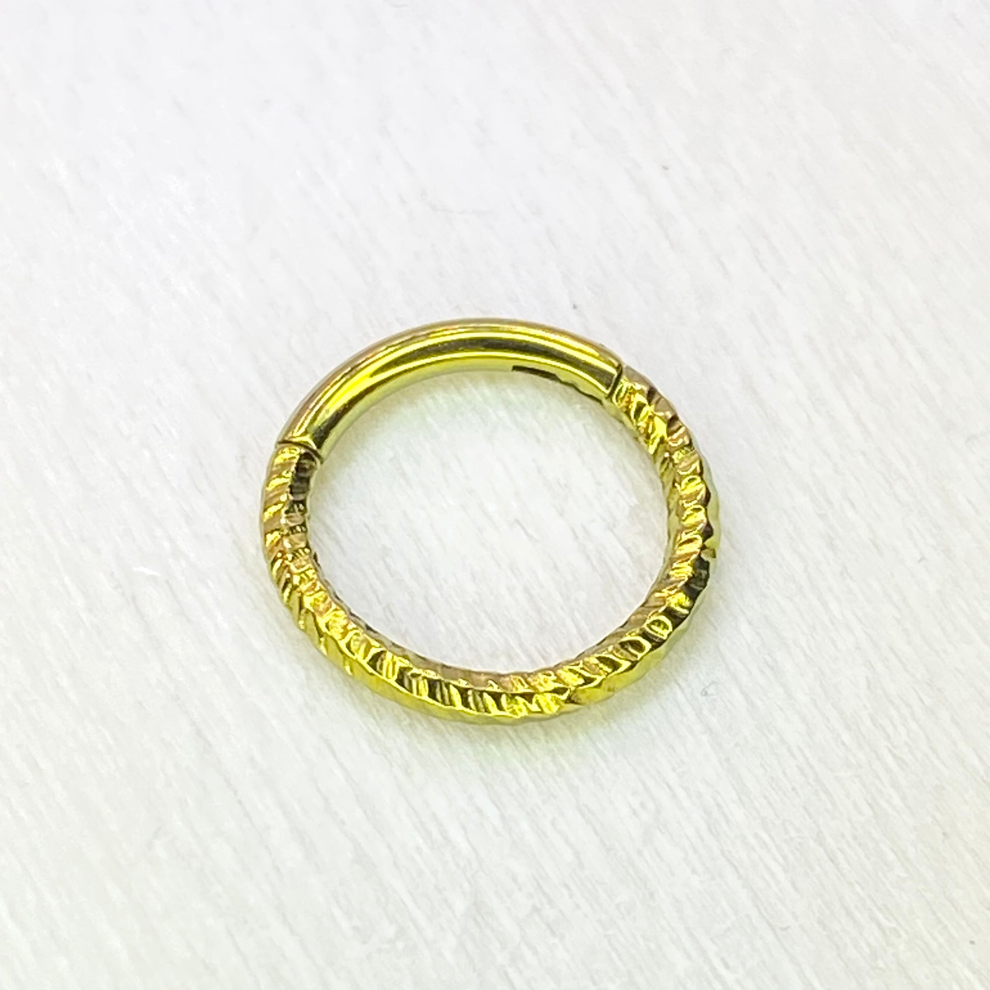 Gold Anodized Twisted Rope Style Medical Grade ASTM F-136 Titanium Hinged Ring Clicker Hoop Helix Cartilage Lobe Septum Hoop size:1.2x8mm