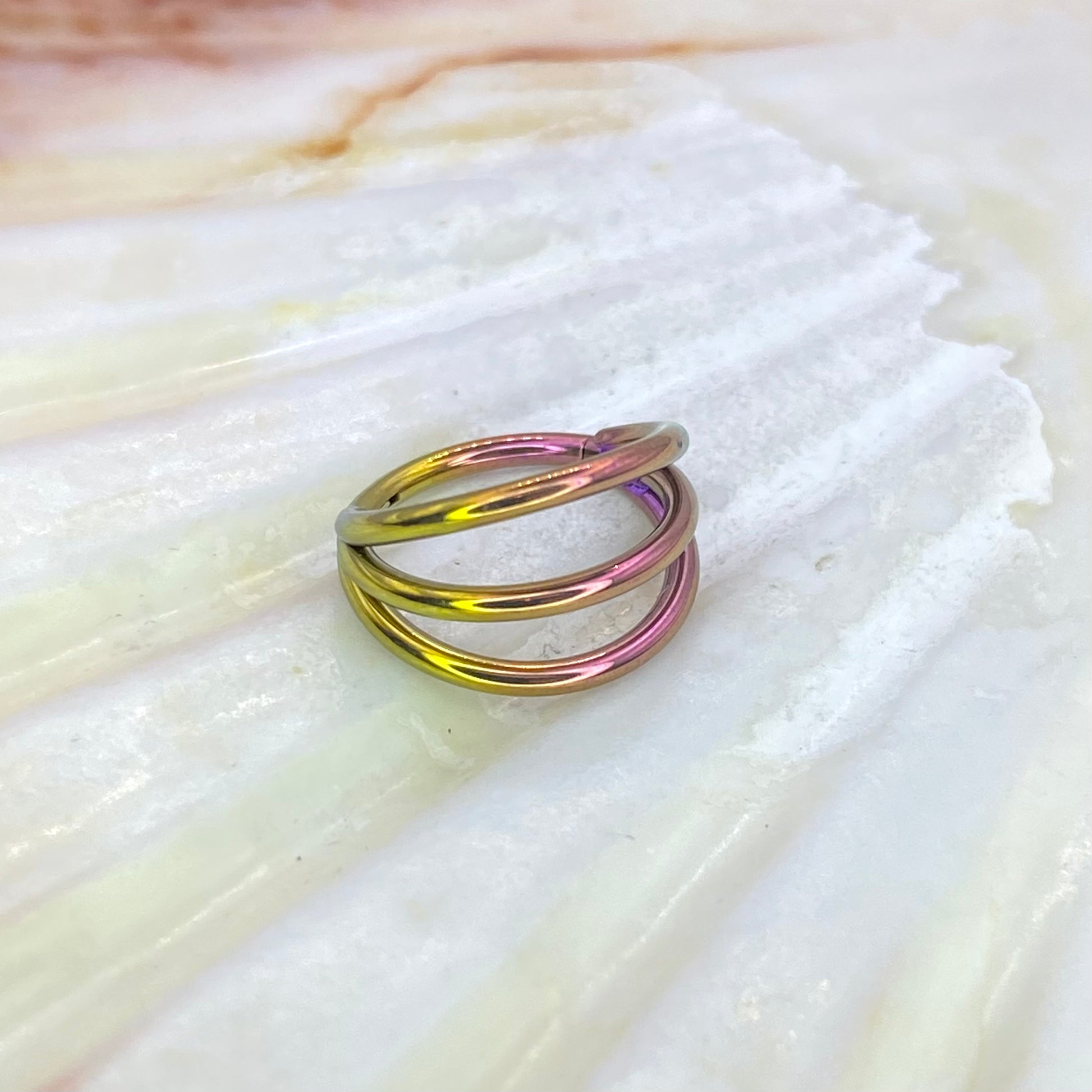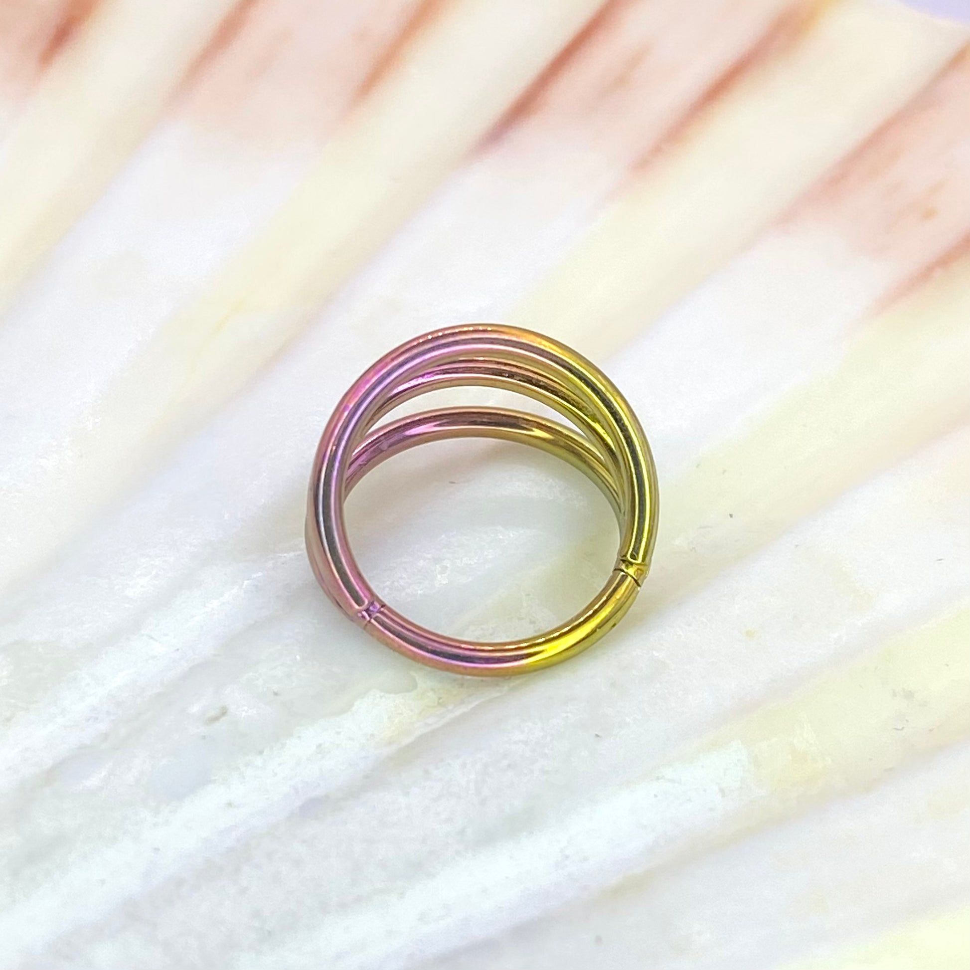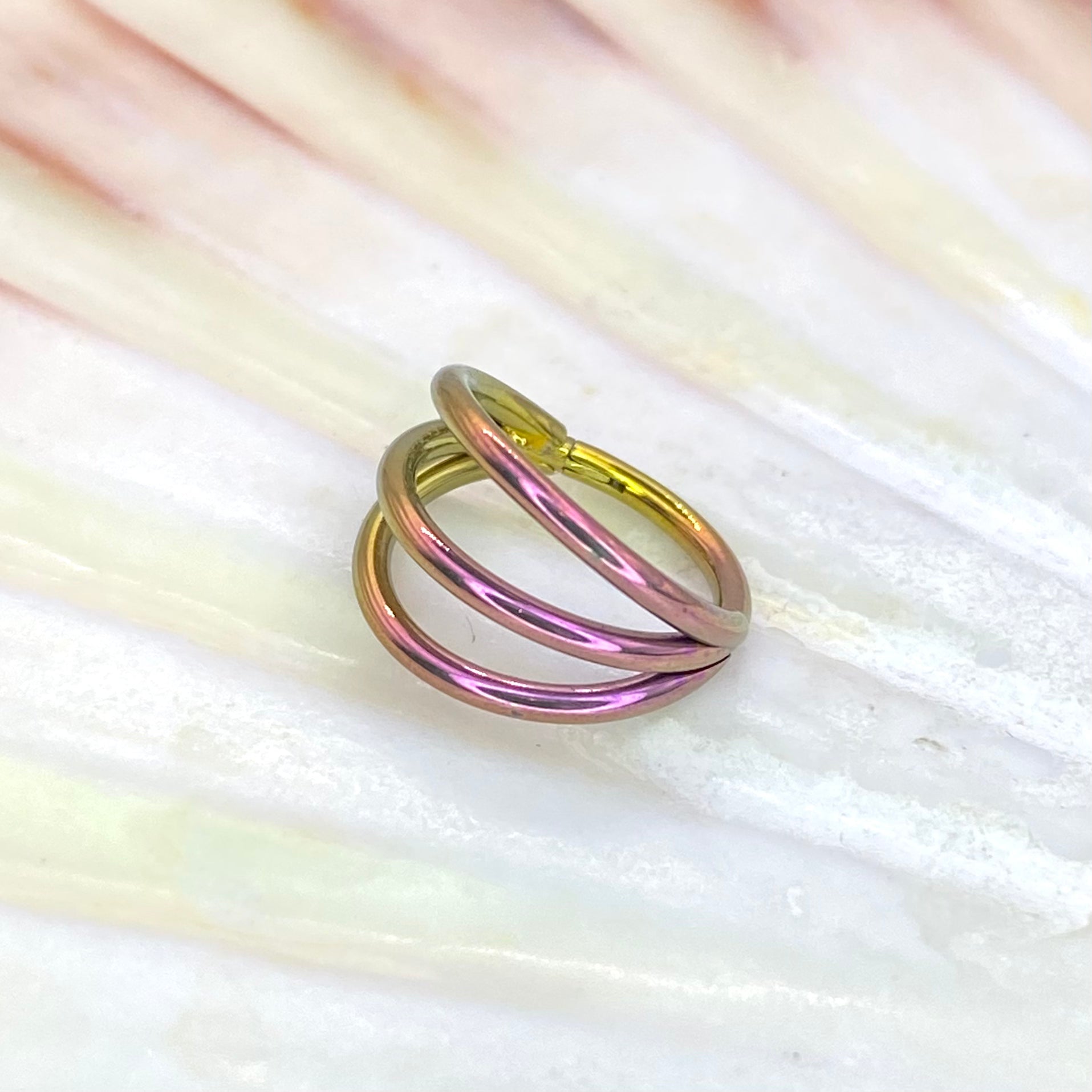Gold to Pink GRADIENT Anodized Medical Grade ASTM F-136 Titanium Triple Band Hinged Ring Clicker Hoop Cartilage Lobe Piercing size: 1.2x6/8/10/12mm