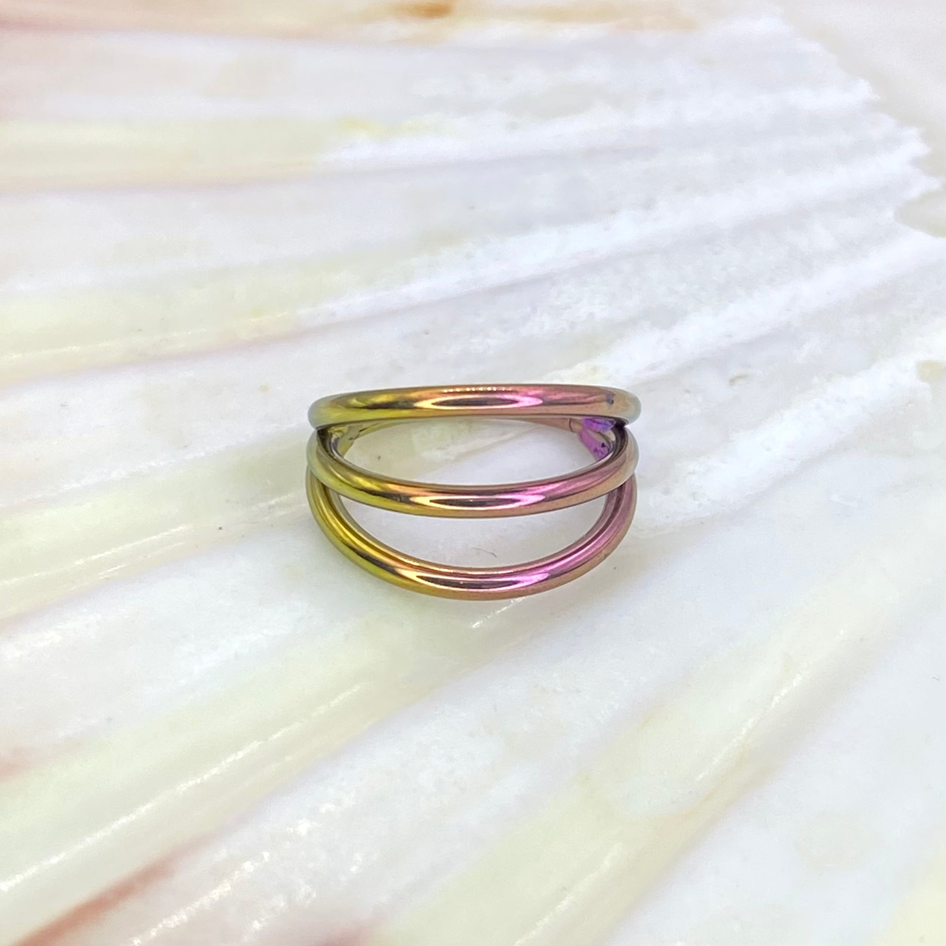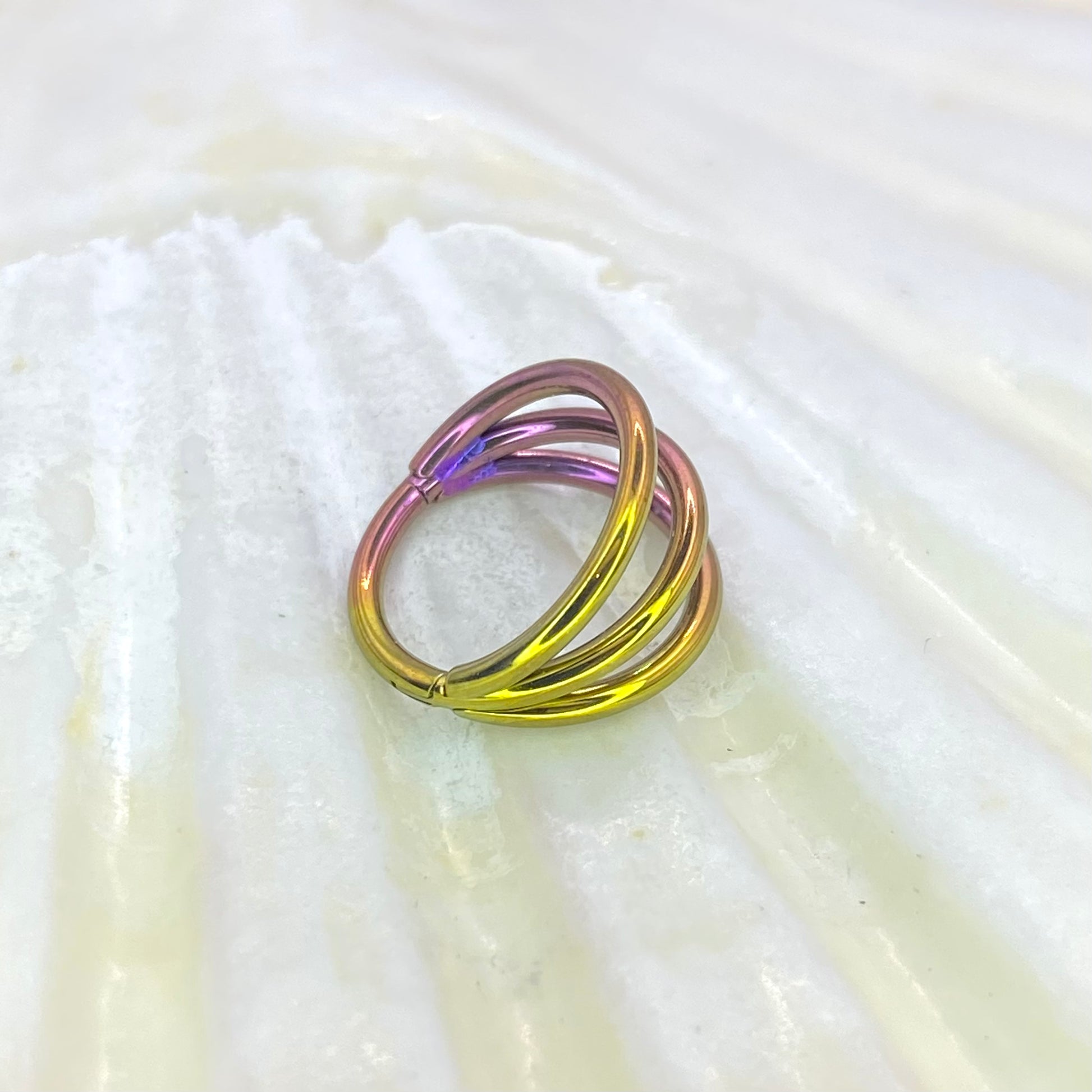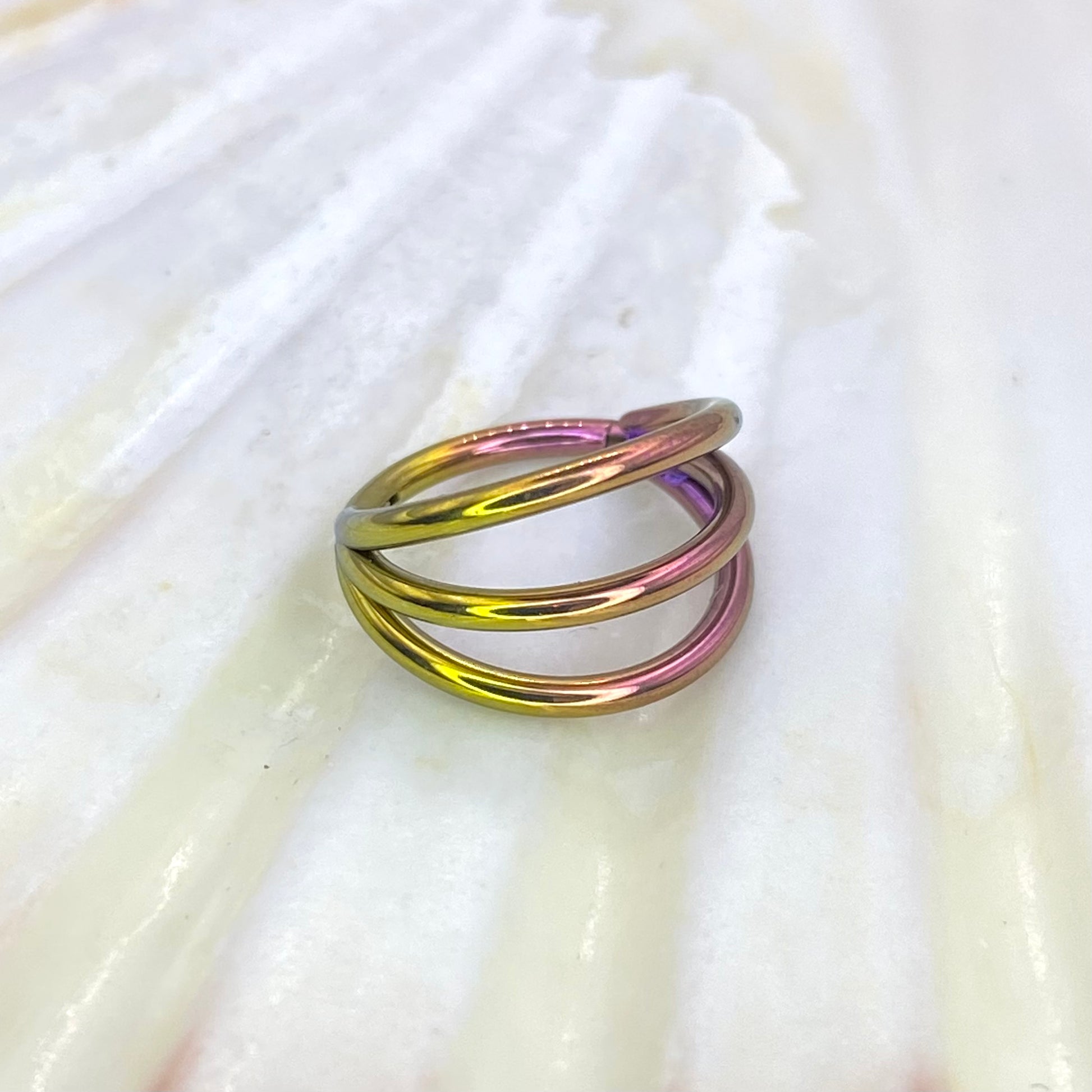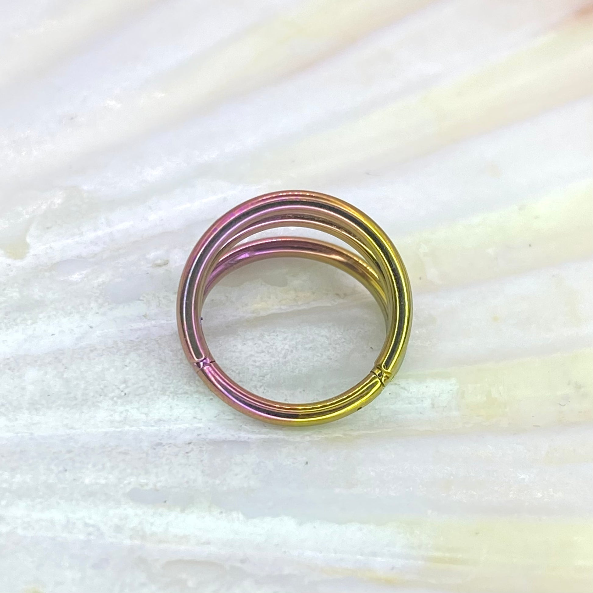Gold to Pink GRADIENT Anodized Medical Grade ASTM F-136 Titanium Triple Band Hinged Ring Clicker Hoop Cartilage Lobe Piercing size: 1.2x6/8/10/12mm