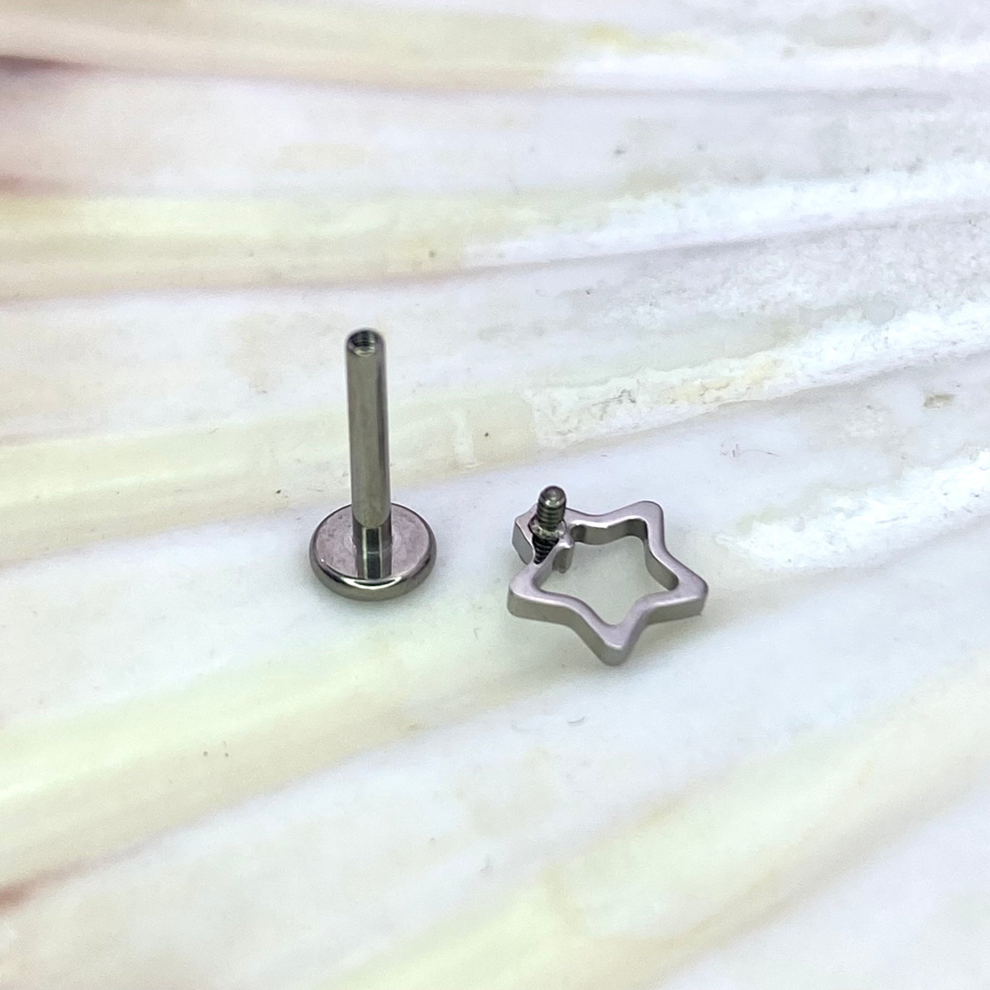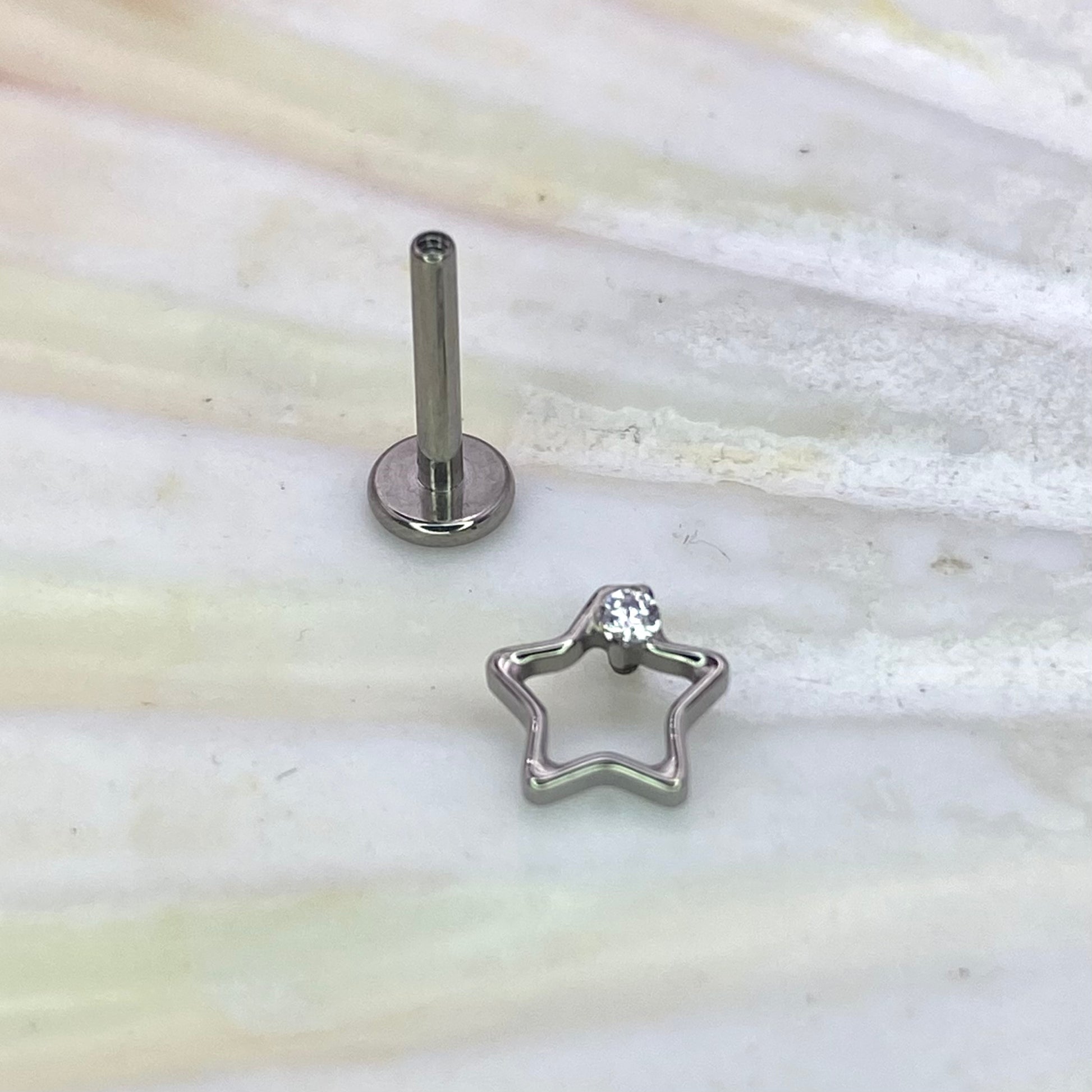 Hollow Star with Clear Gem top Medical Grade ASTM F136 Titanium Internal Thread Labret Ear Jewellery Helix Tragus Lobe Cartilage Flat Piercing Earring