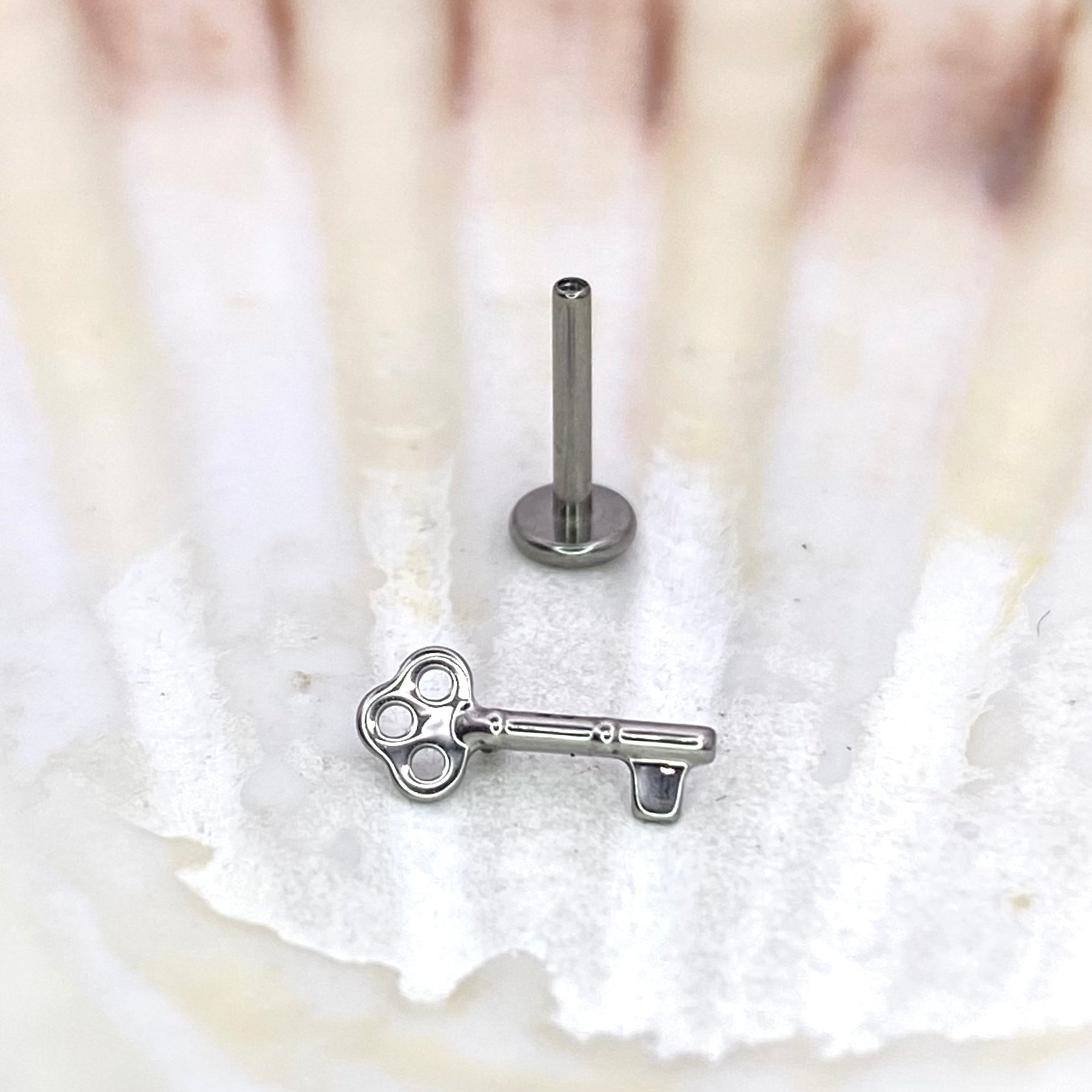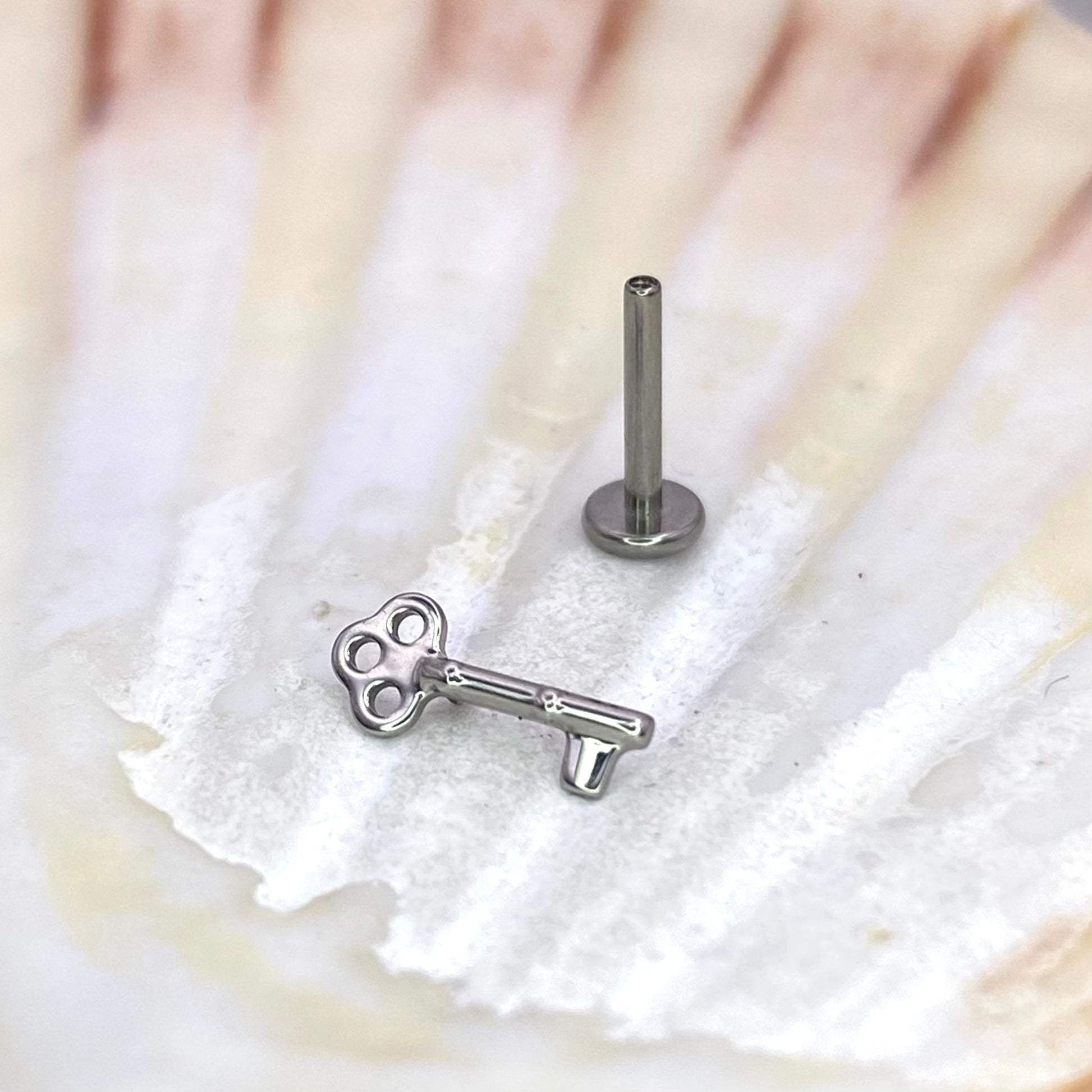 KEY Shape Top Internal Thread Top Medical grade titanium ASTM F136 Labret Stud Lobe Helix Flat Tragus piercing jewellery size:1.2 x 6/8/10mm