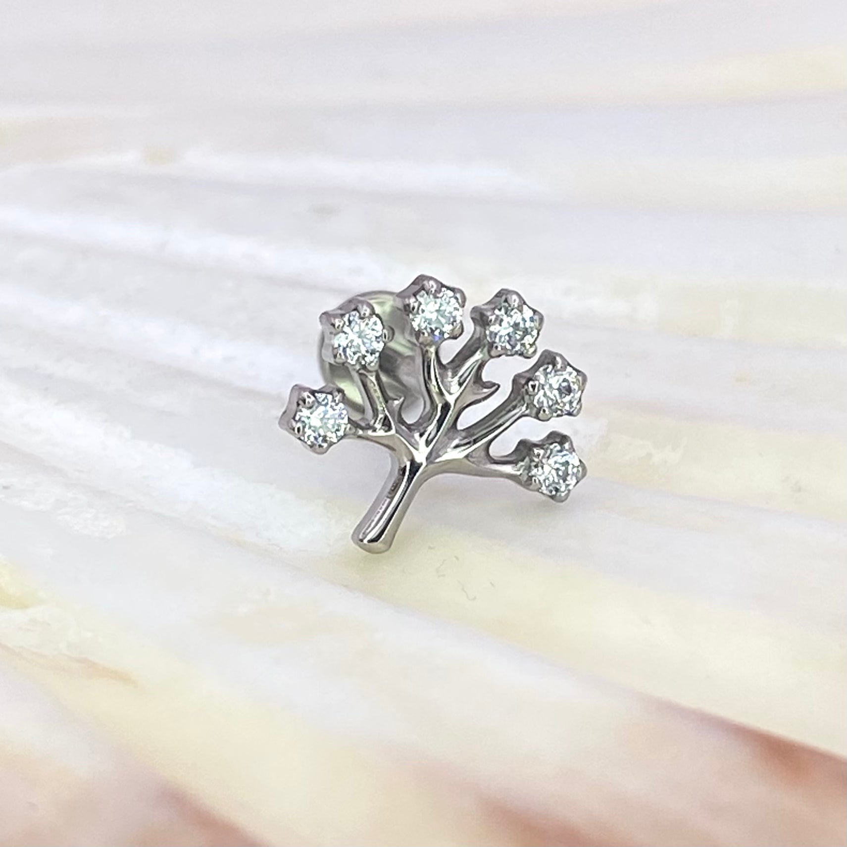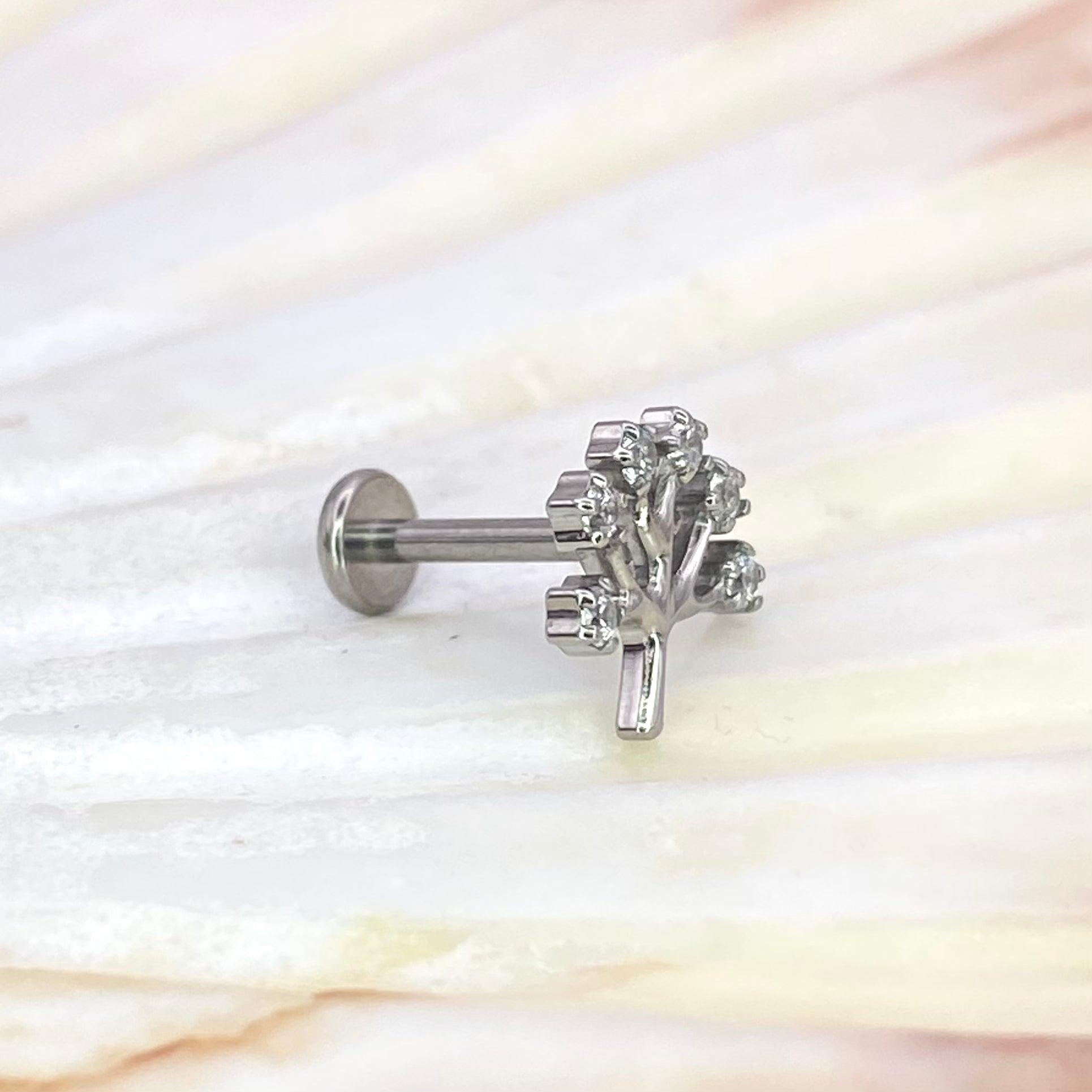 Mini TREE Top with Clear Gems Medical grade ASTM:F-136 titanium labret internal thread helix tragus flat ear lobe jewellery
