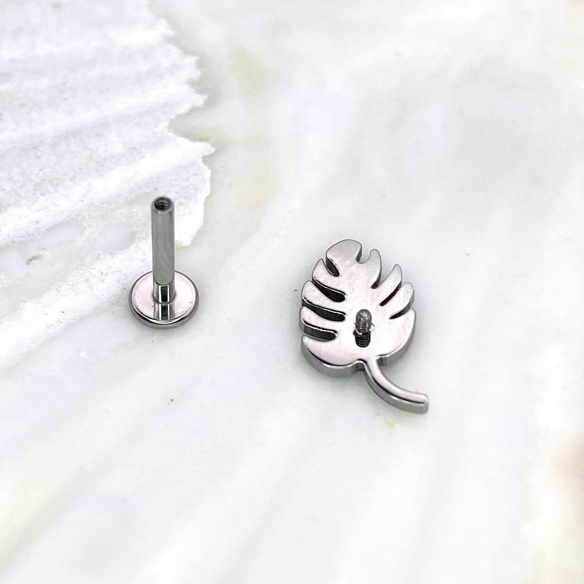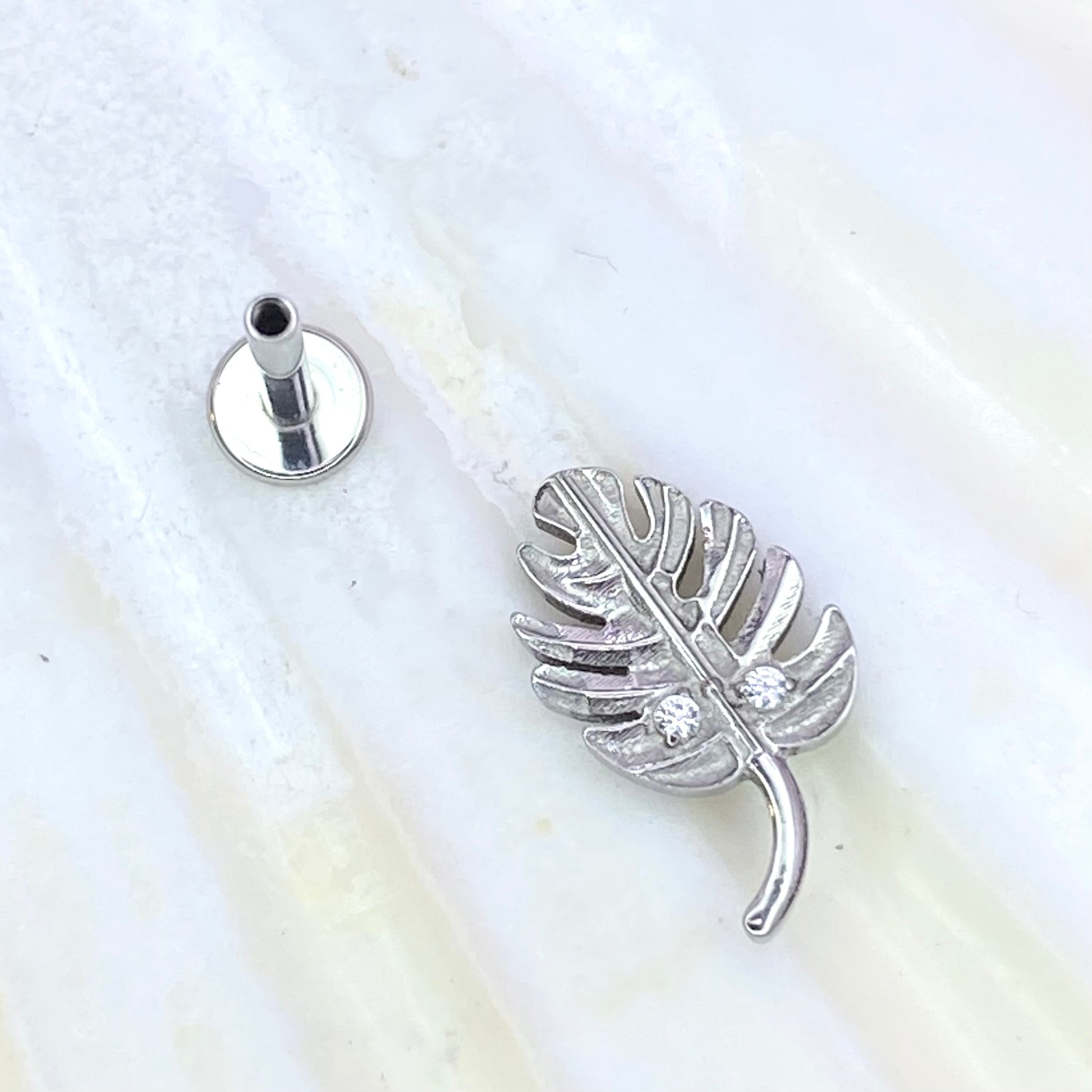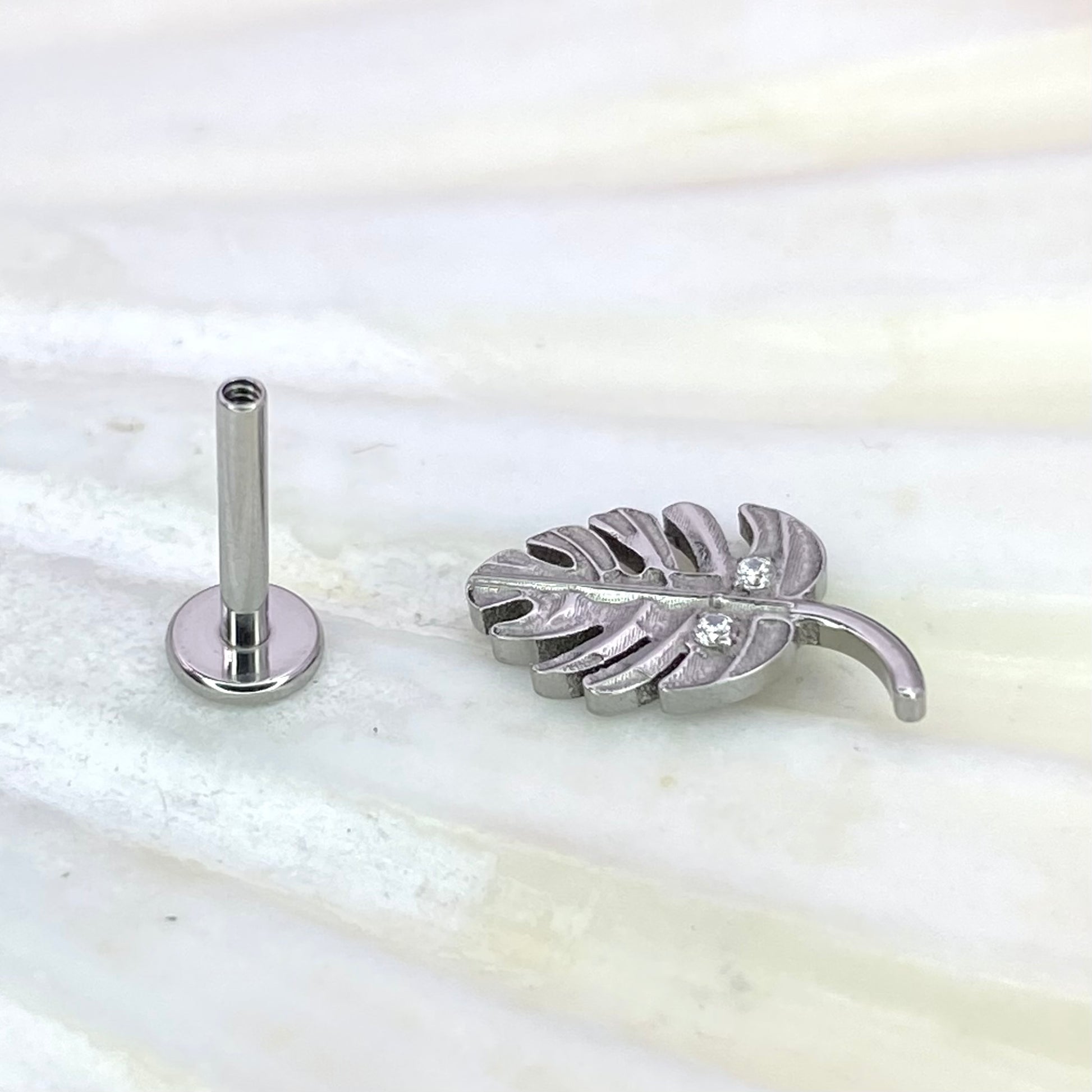 MONSTERA LEAF with Clear Gems Internal Thread Top Medical grade titanium ASTM F136 Labret Stud for Lobe Helix Tragus size: 1.2 x 8mm