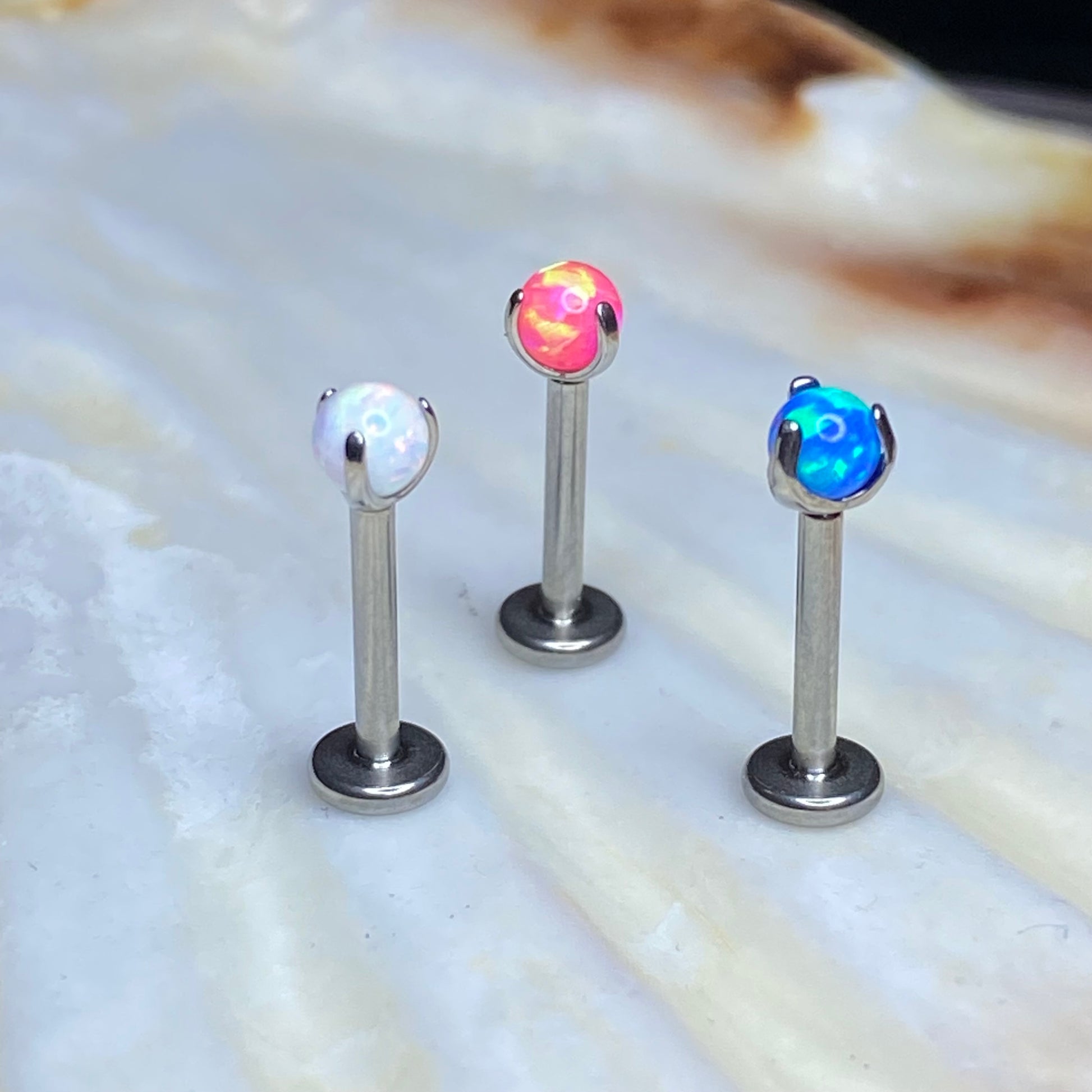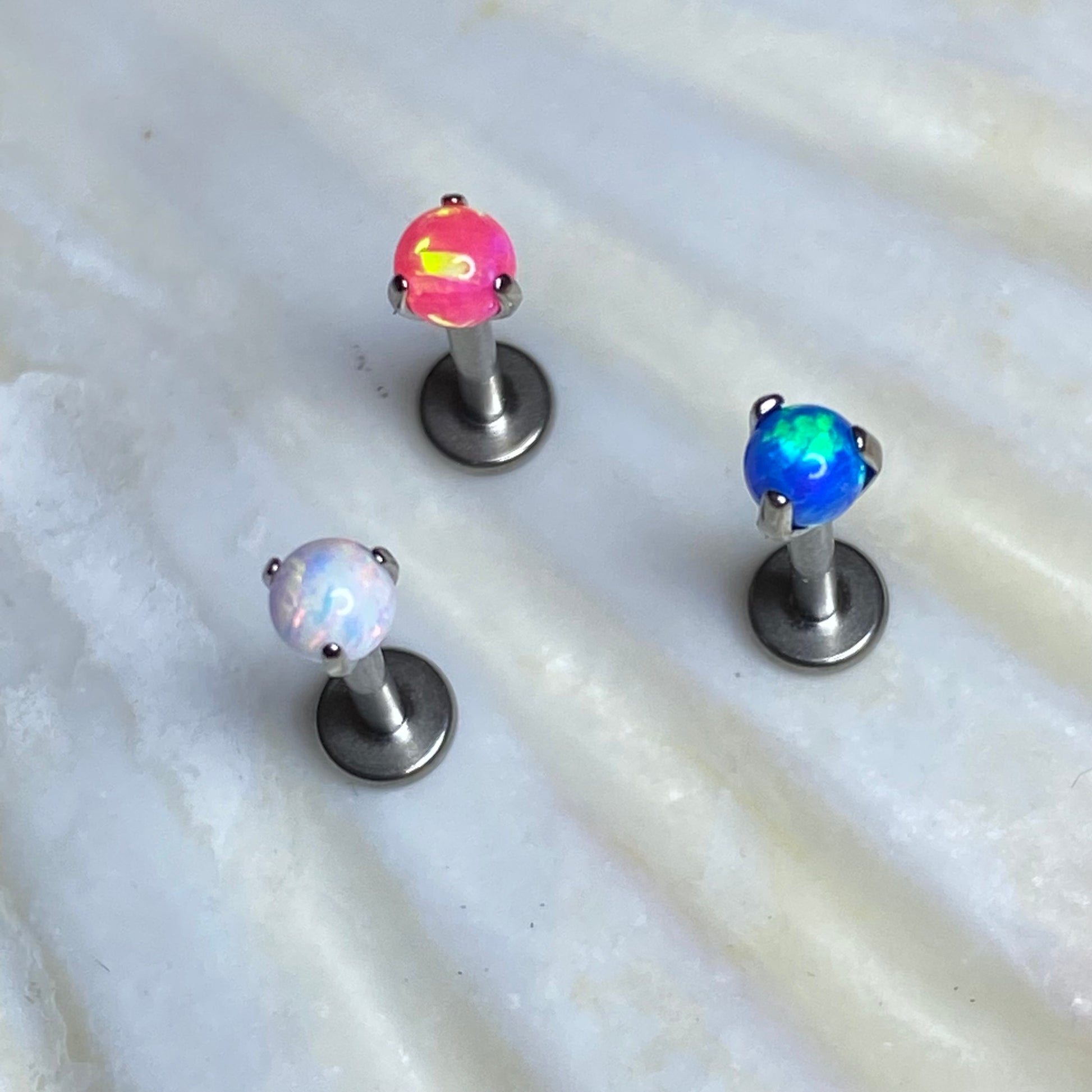 OPAL Claw Set Gem Ball Top Medical grade Internal thread ASTM:F-136 titanium Labret, 1.2x6/8/10mm lobe helix cartilage tragus piercing jewellery