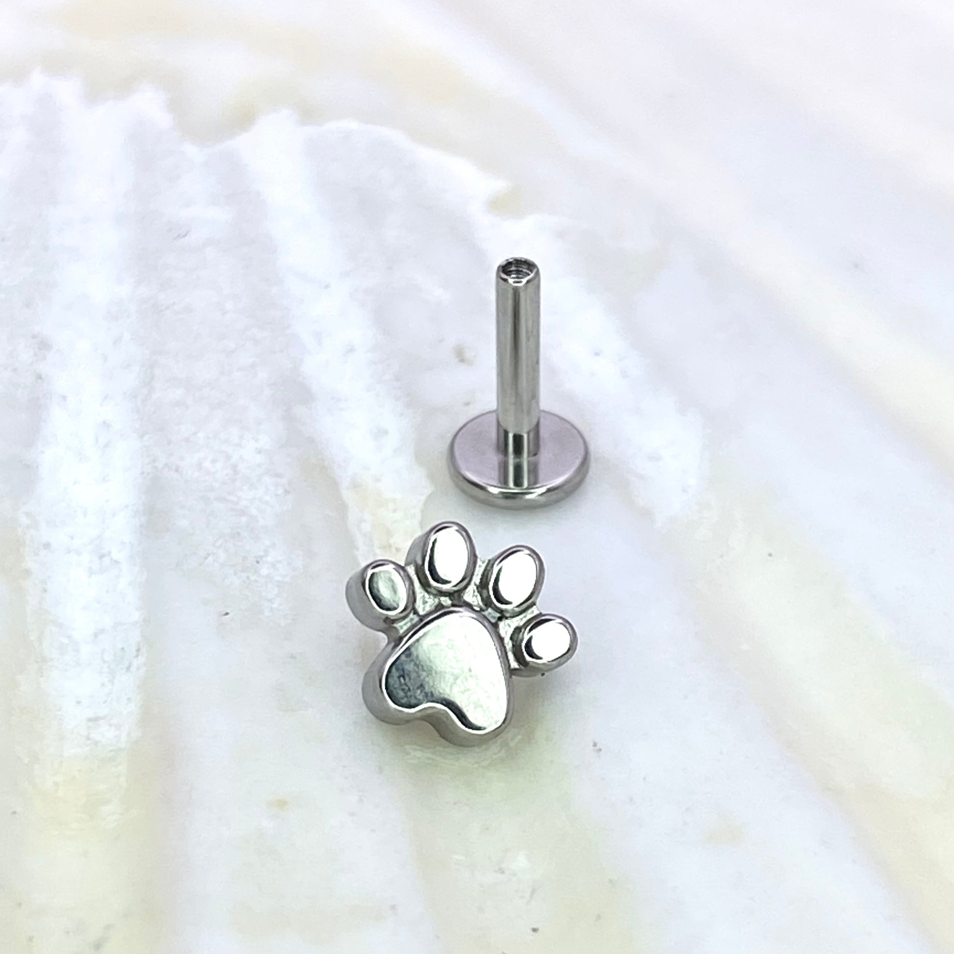 PAW Print Top Implant Grade ASTM:F-136 Titanium Labret 1.2x6/8/10mm Earring Internal Thread Cartilage Helix stud