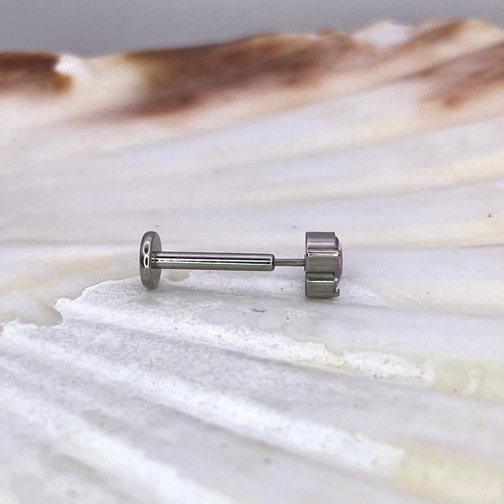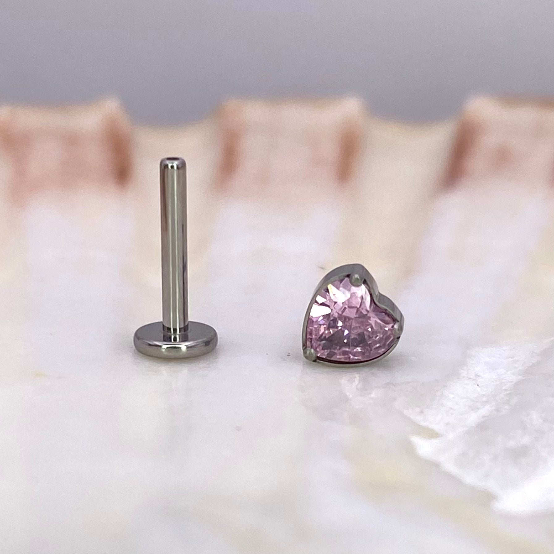 PINK HEART Gem Top Push Pin Medical grade ASTM:F-136 titanium labret 1.2x8mm conch helix tragus ear lobe flat jewellery