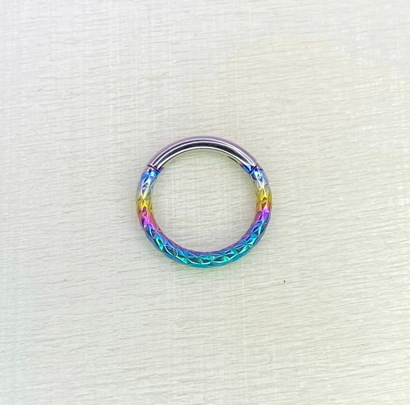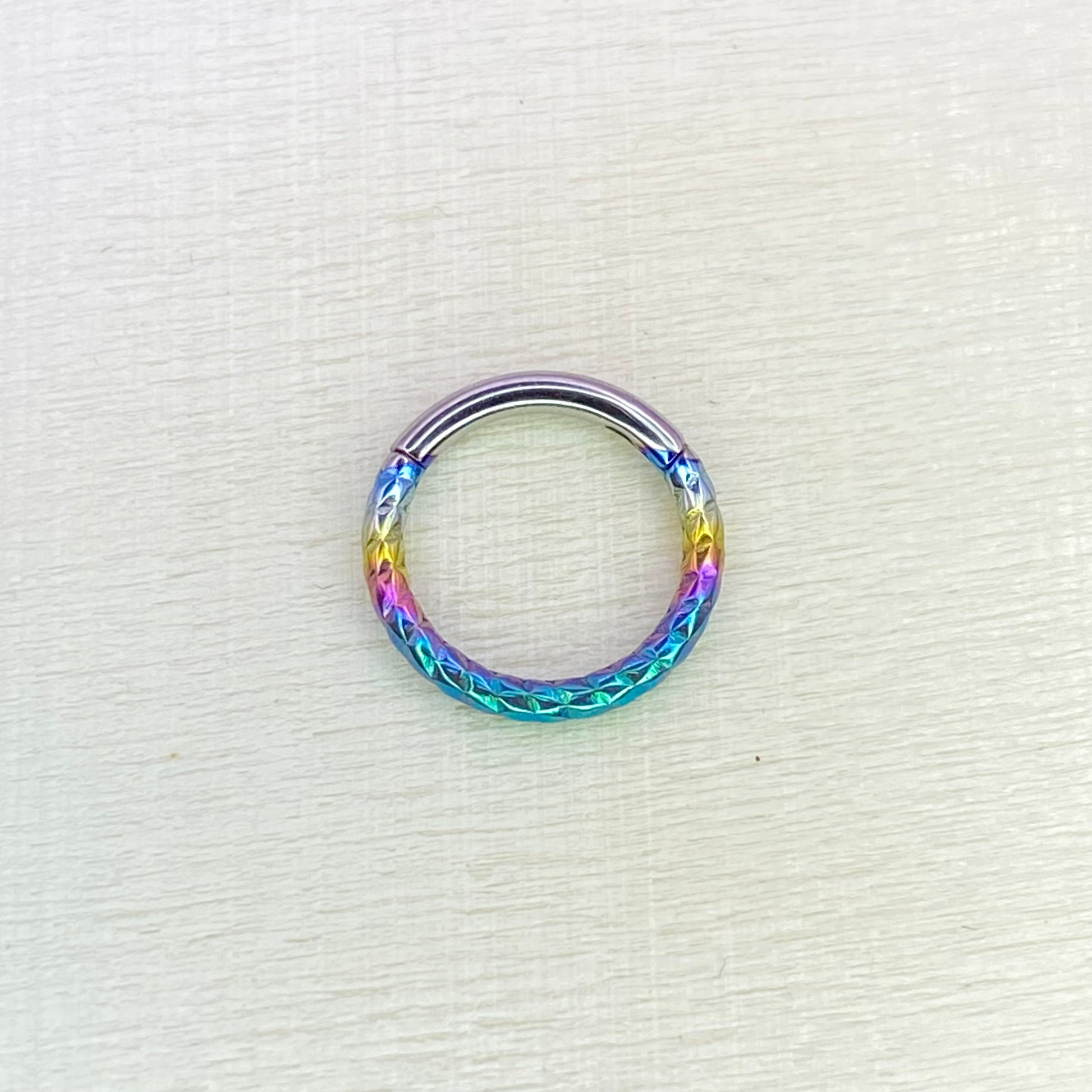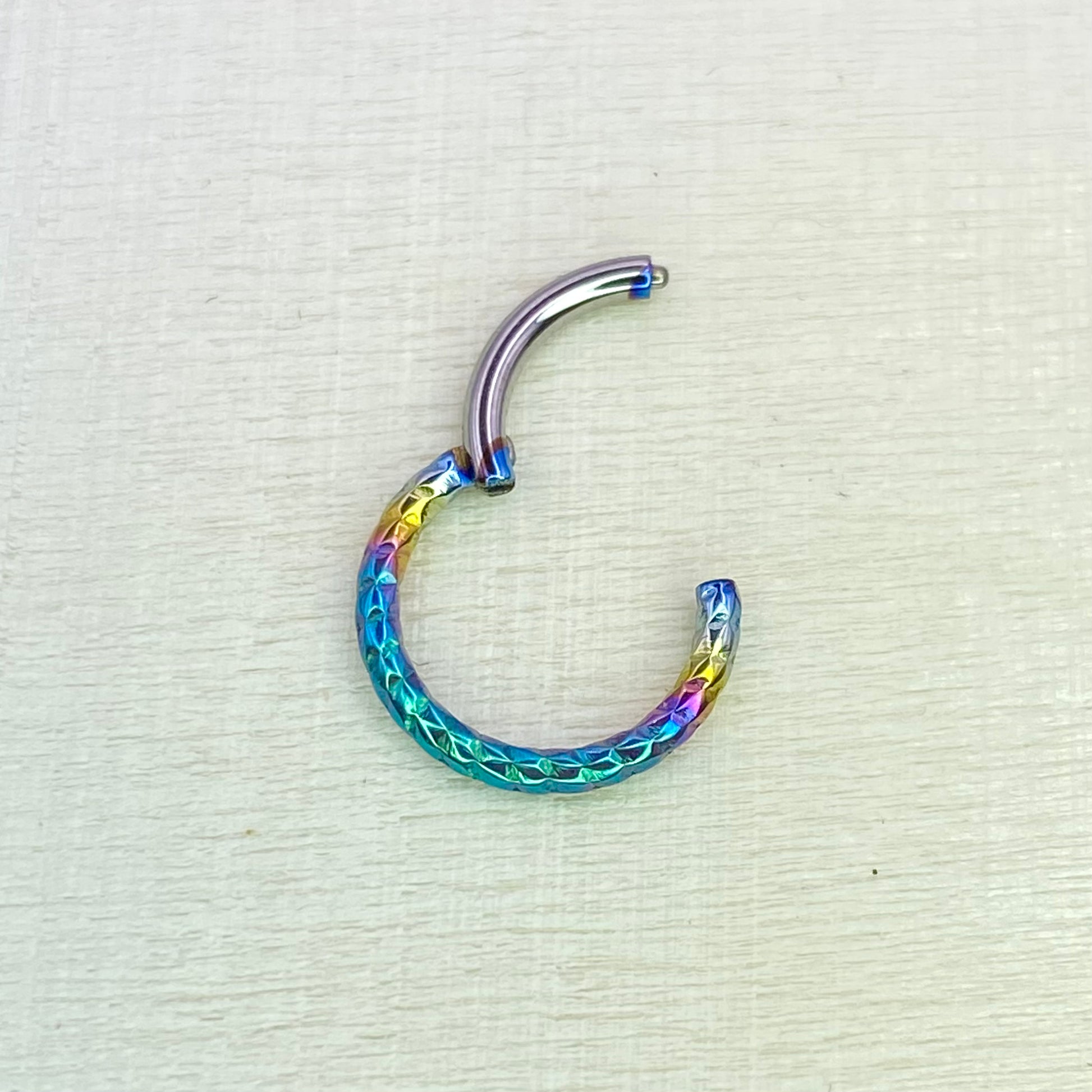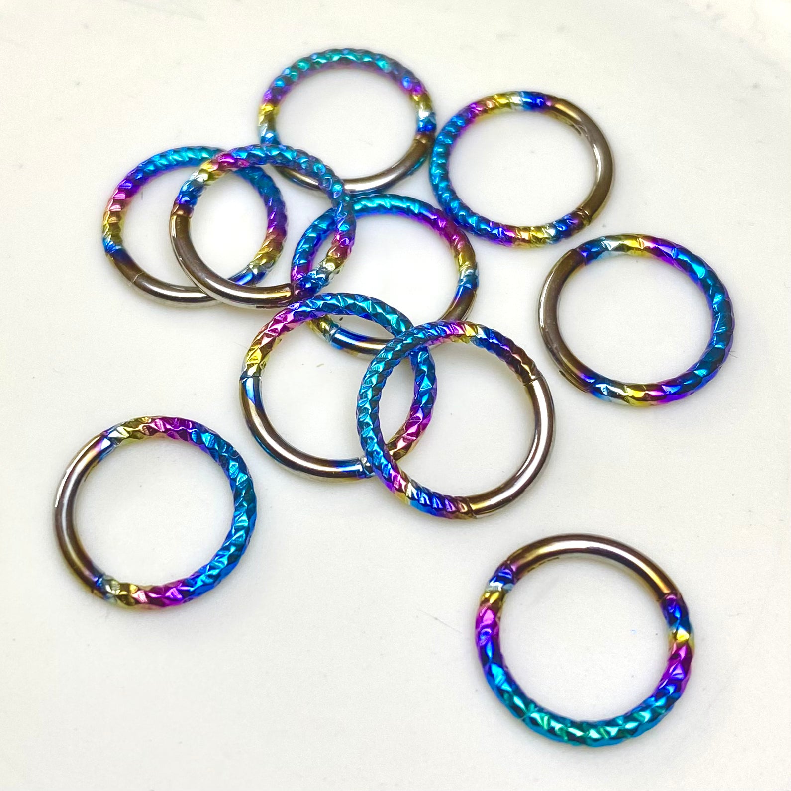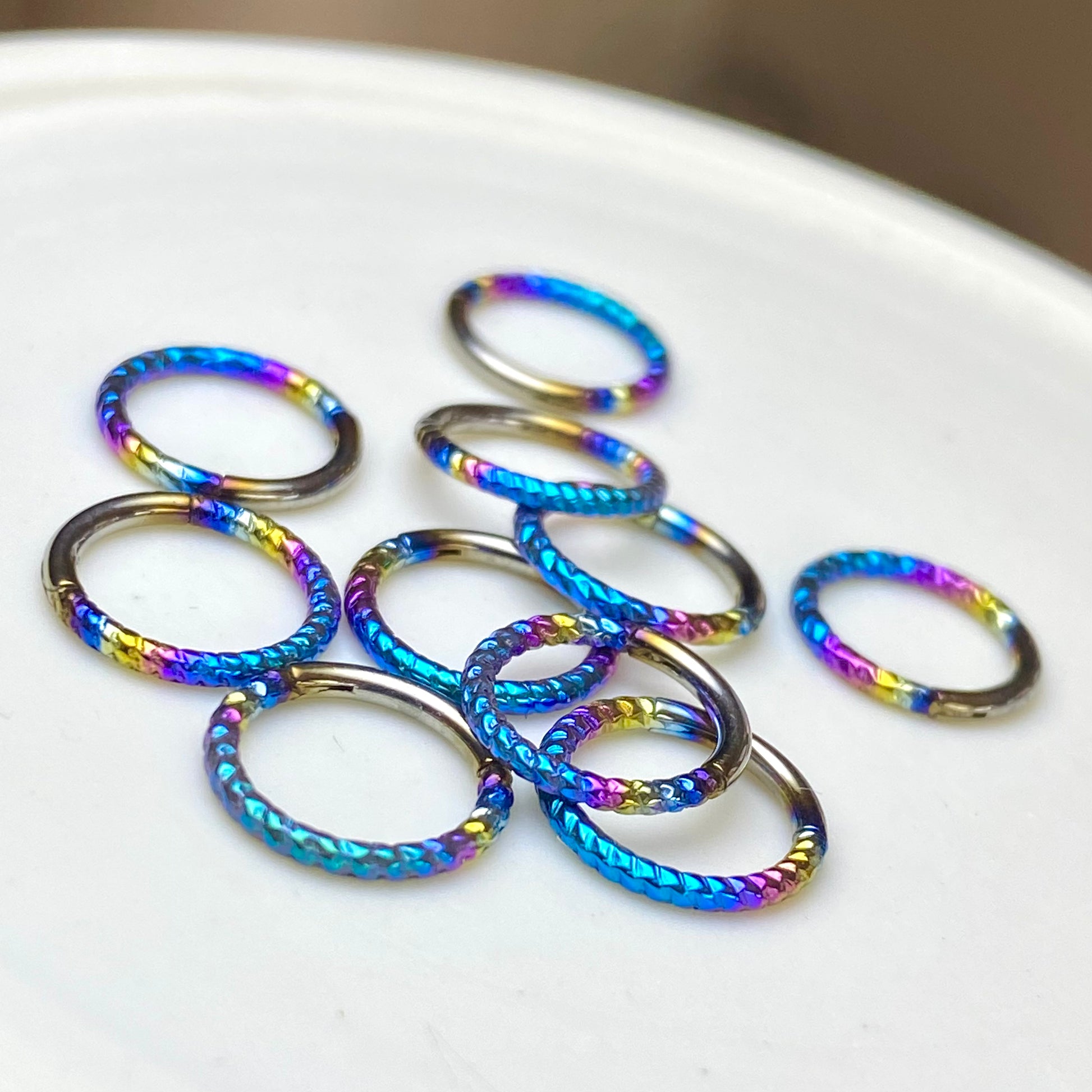 RAINBOW Anodized Twisted Rope Style Medical Grade ASTM F-136 Titanium Hinged Ring Clicker Hoop Helix Cartilage Lobe Septum Hoop size:1.2x8mm