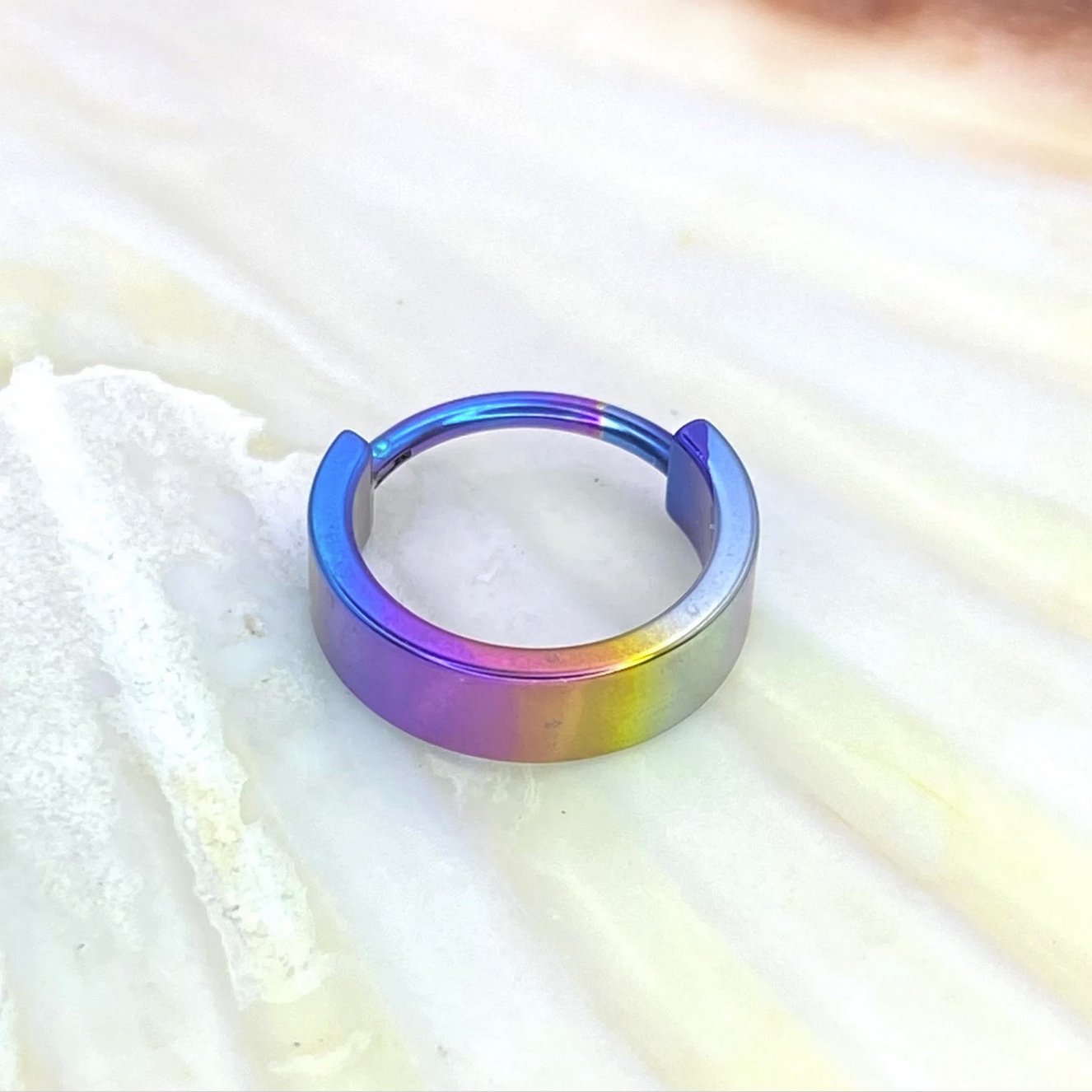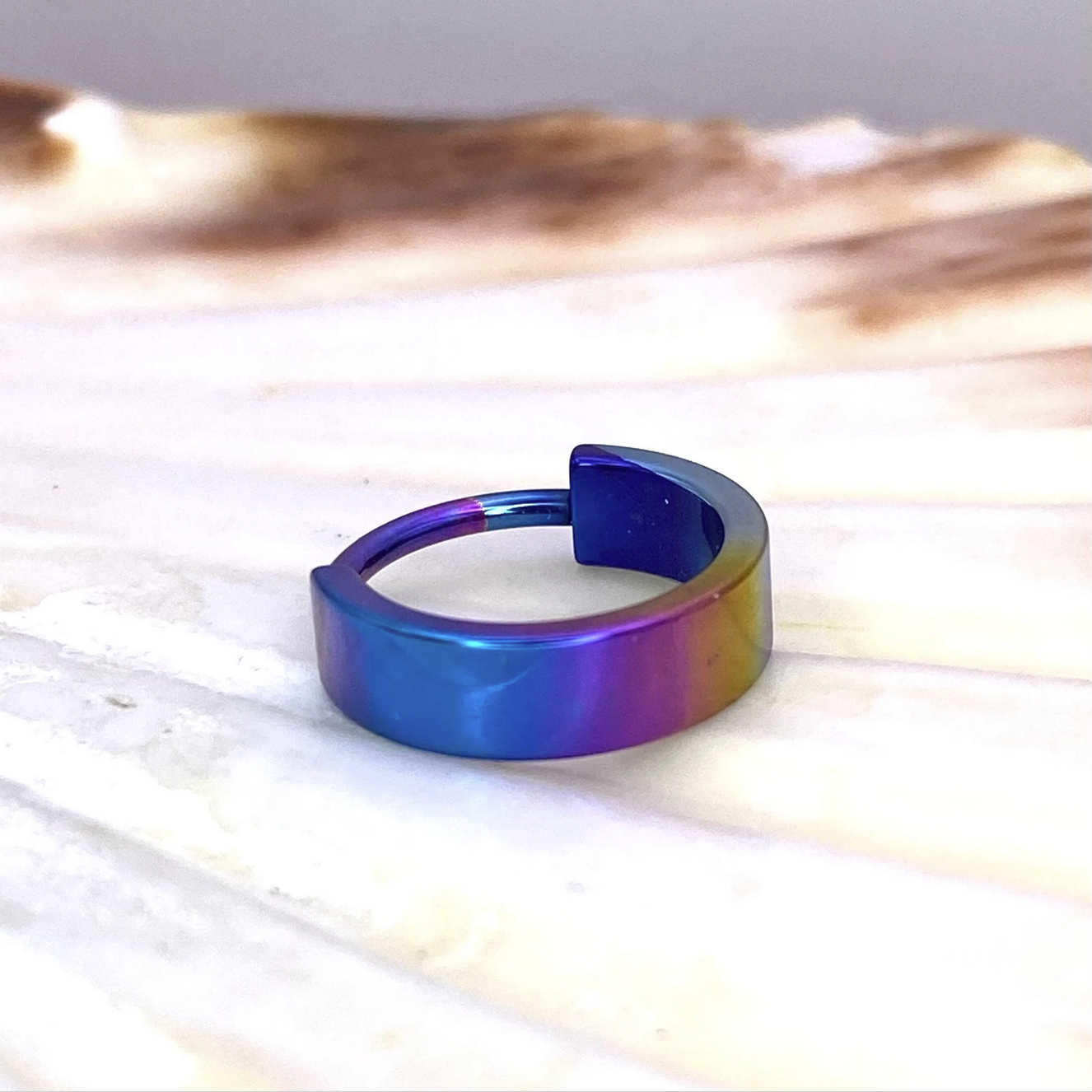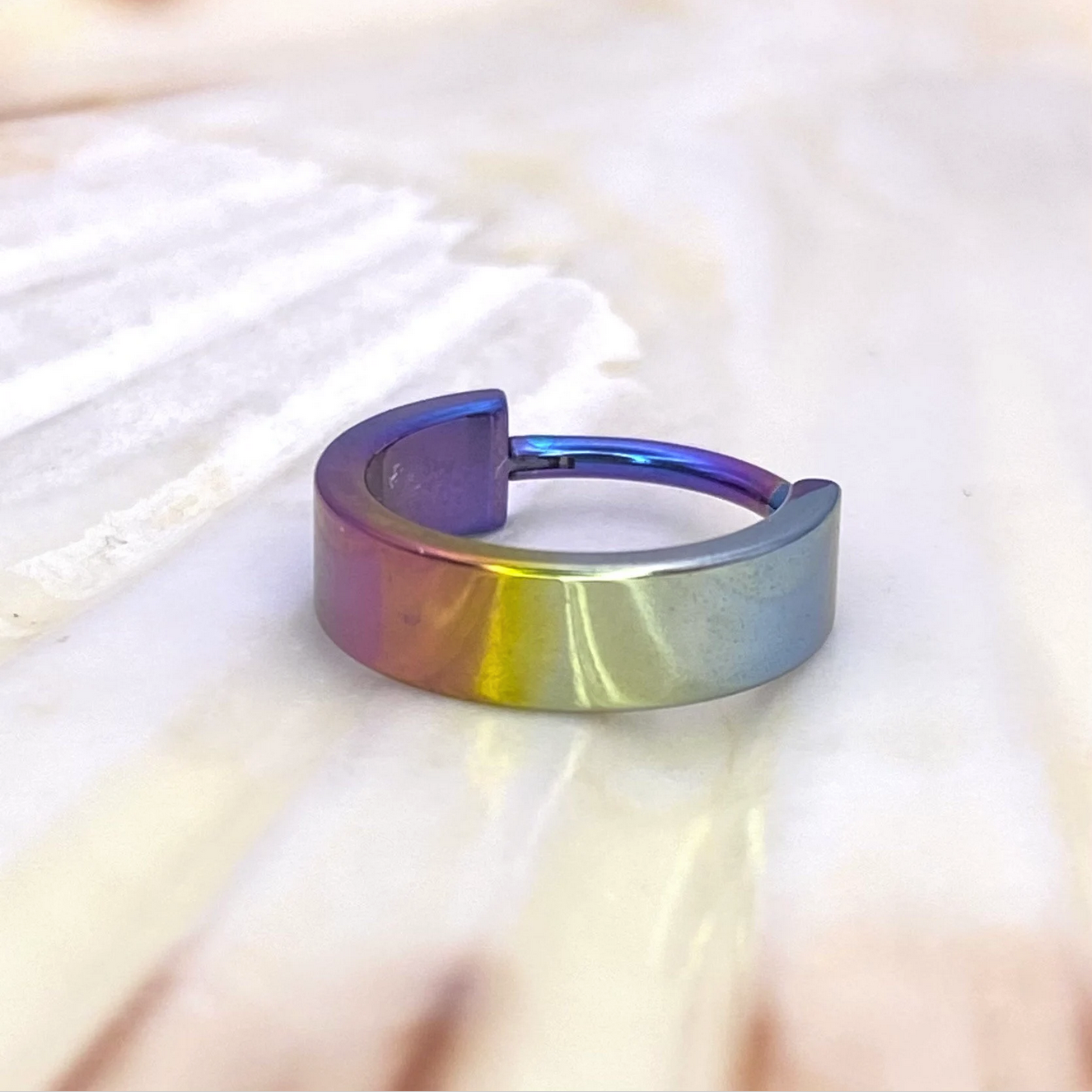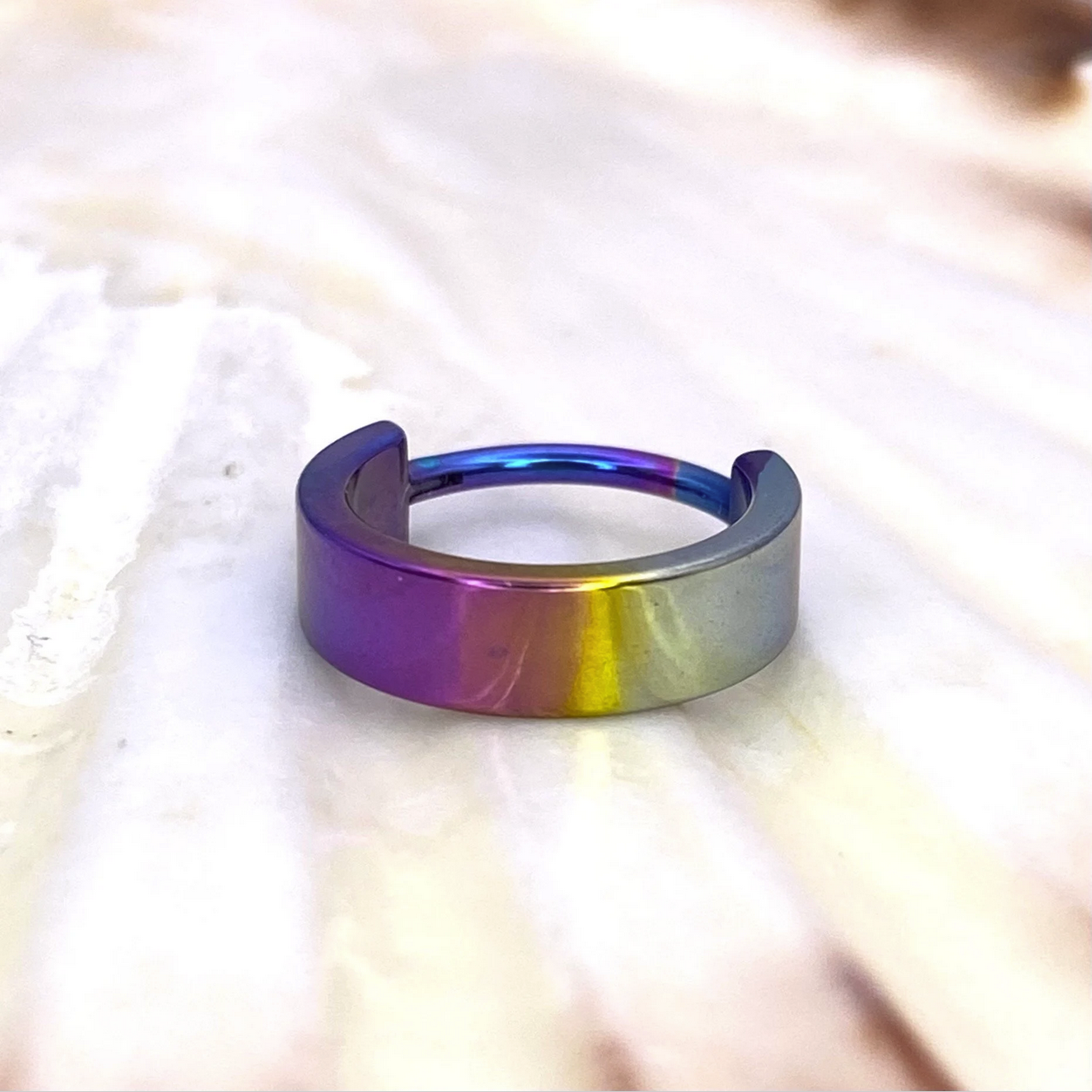 Rainbow Colour Anodized 4mm Wide Band Conch Hoop or Lobe Earring Implant Grade Titanium Clicker Size: 1.2mm x 11mm x4mm