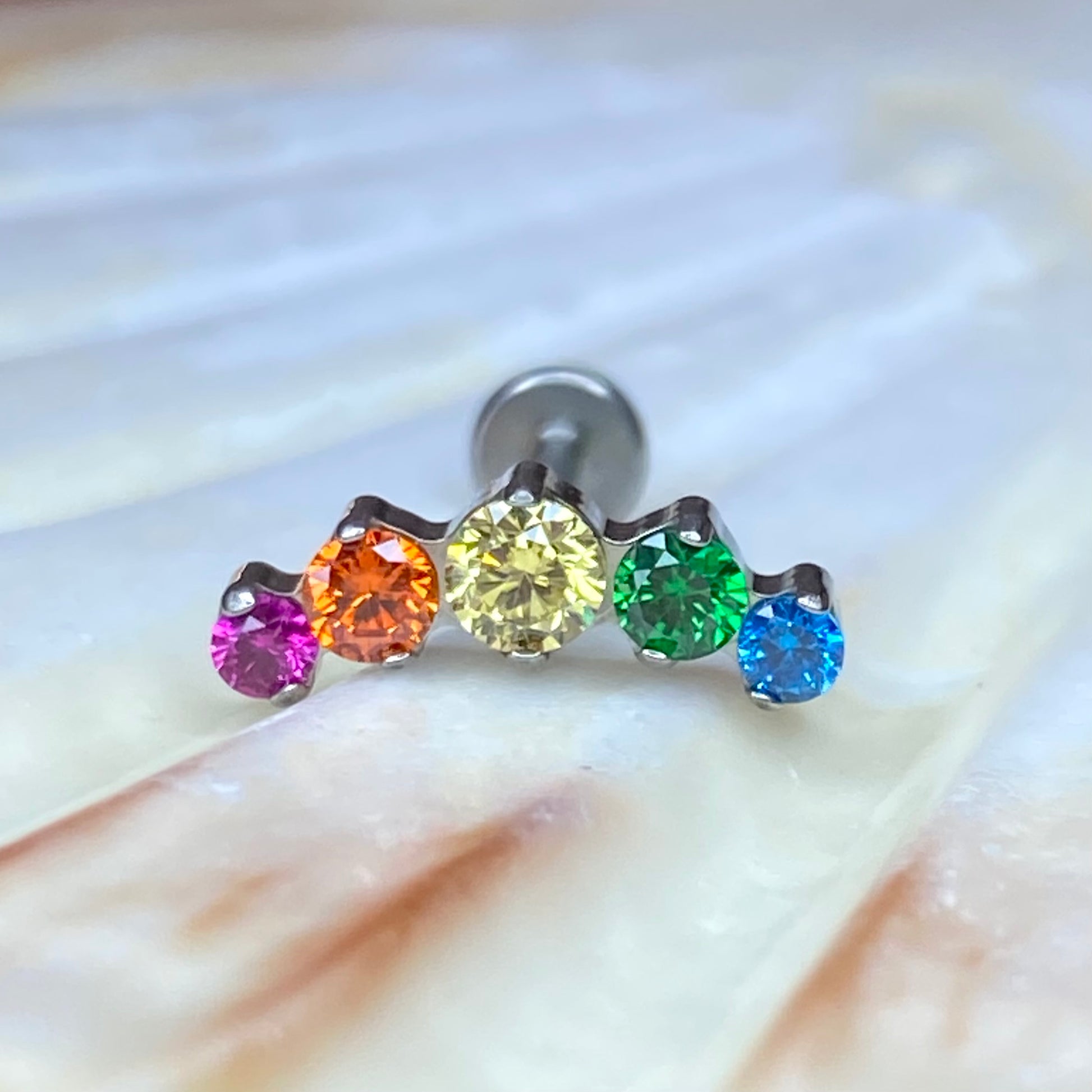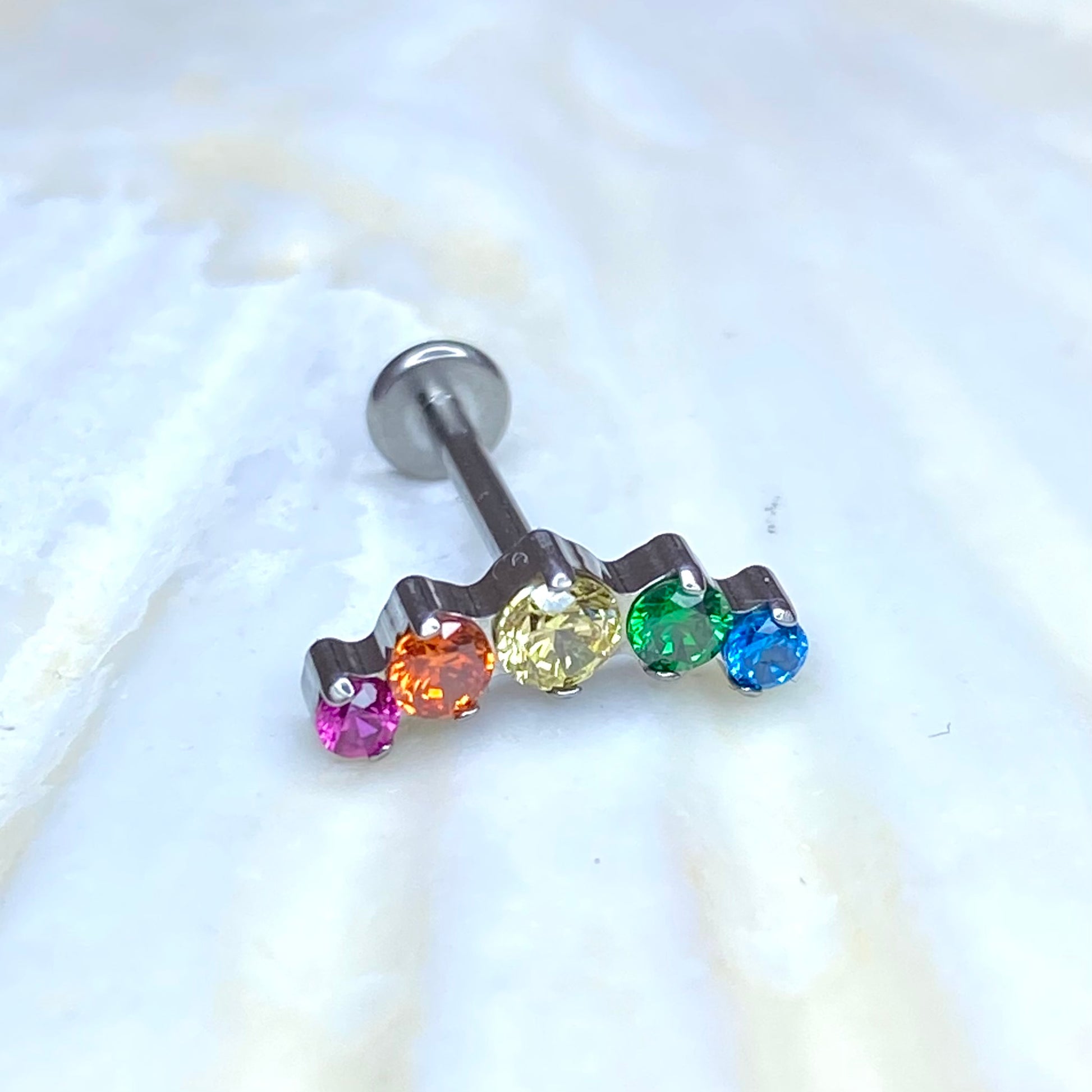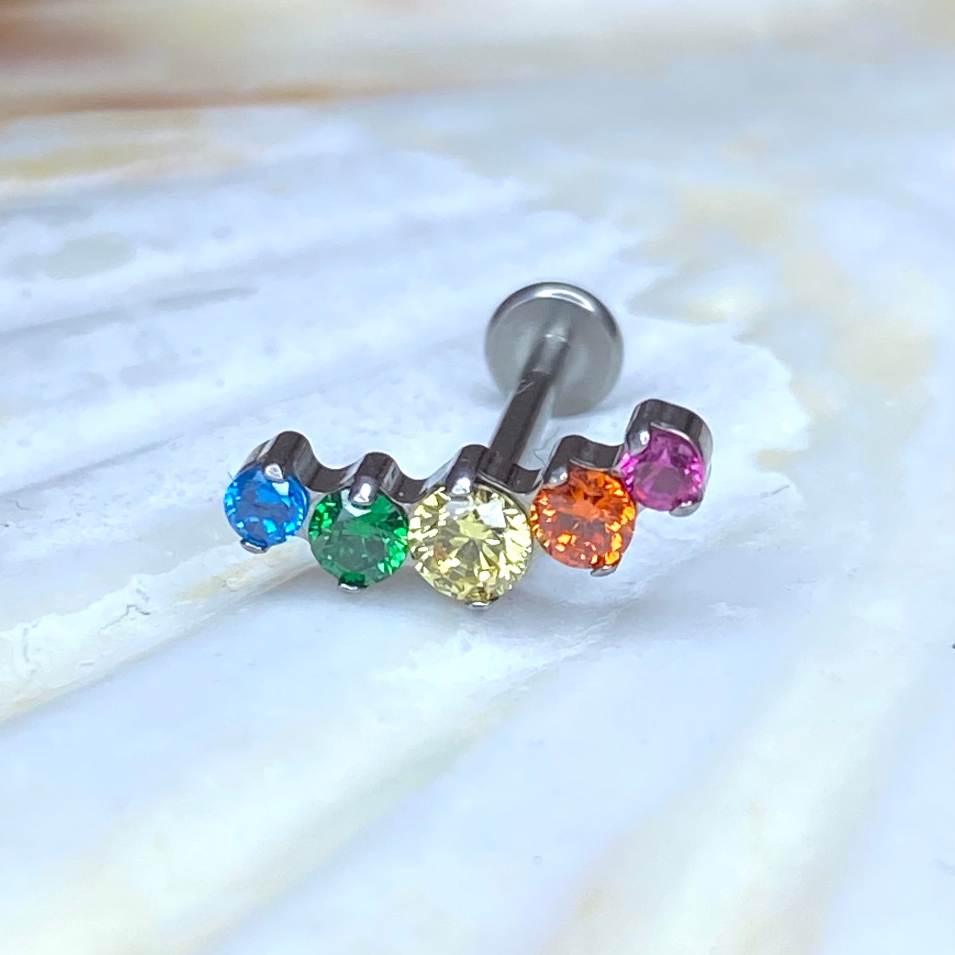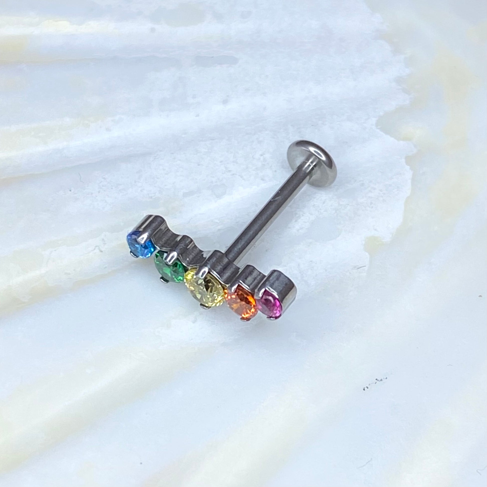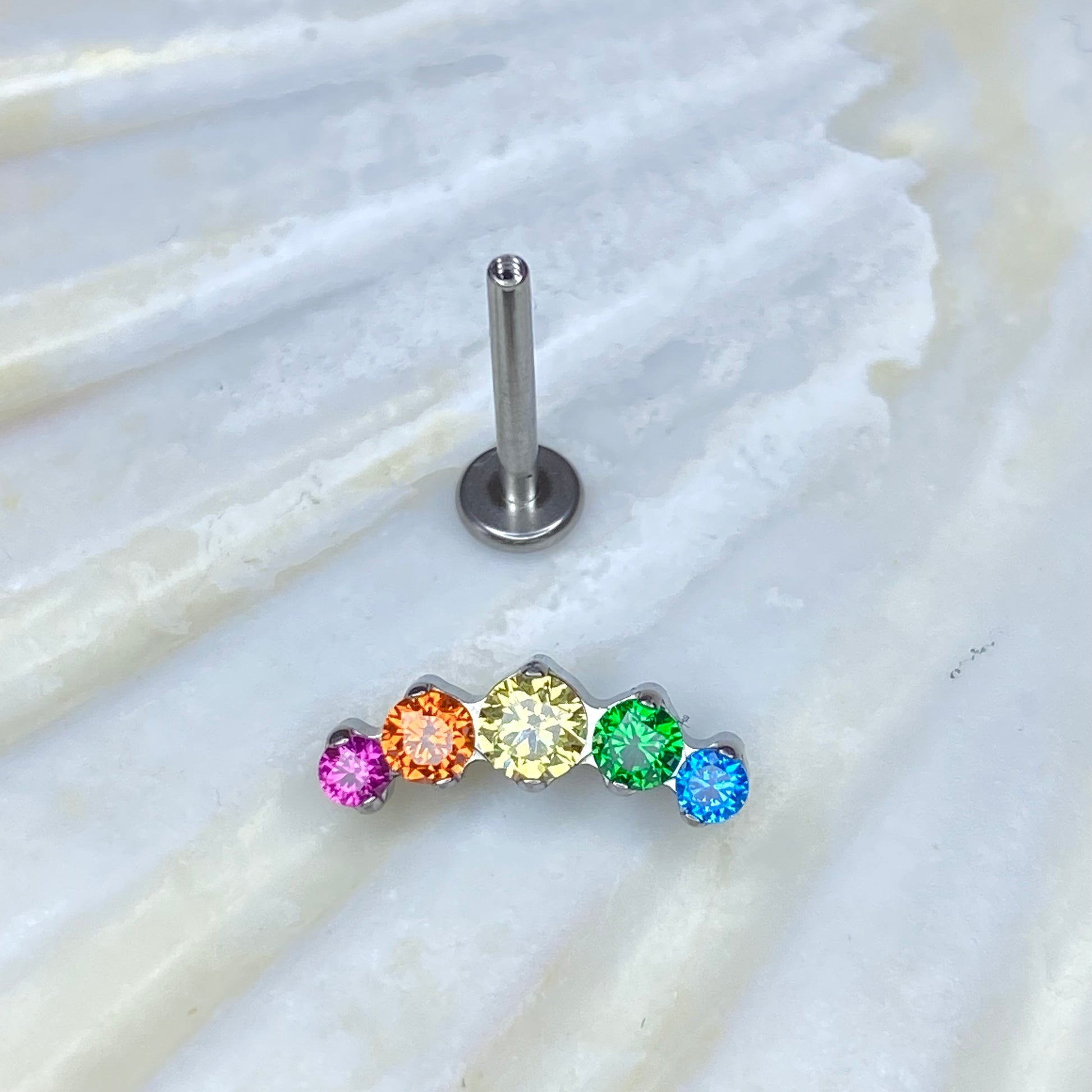 RAINBOW Gem Top Internal Thread Medical grade titanium ASTM F136 Labret Stud Lobe Flat Helix Piercing jewellery