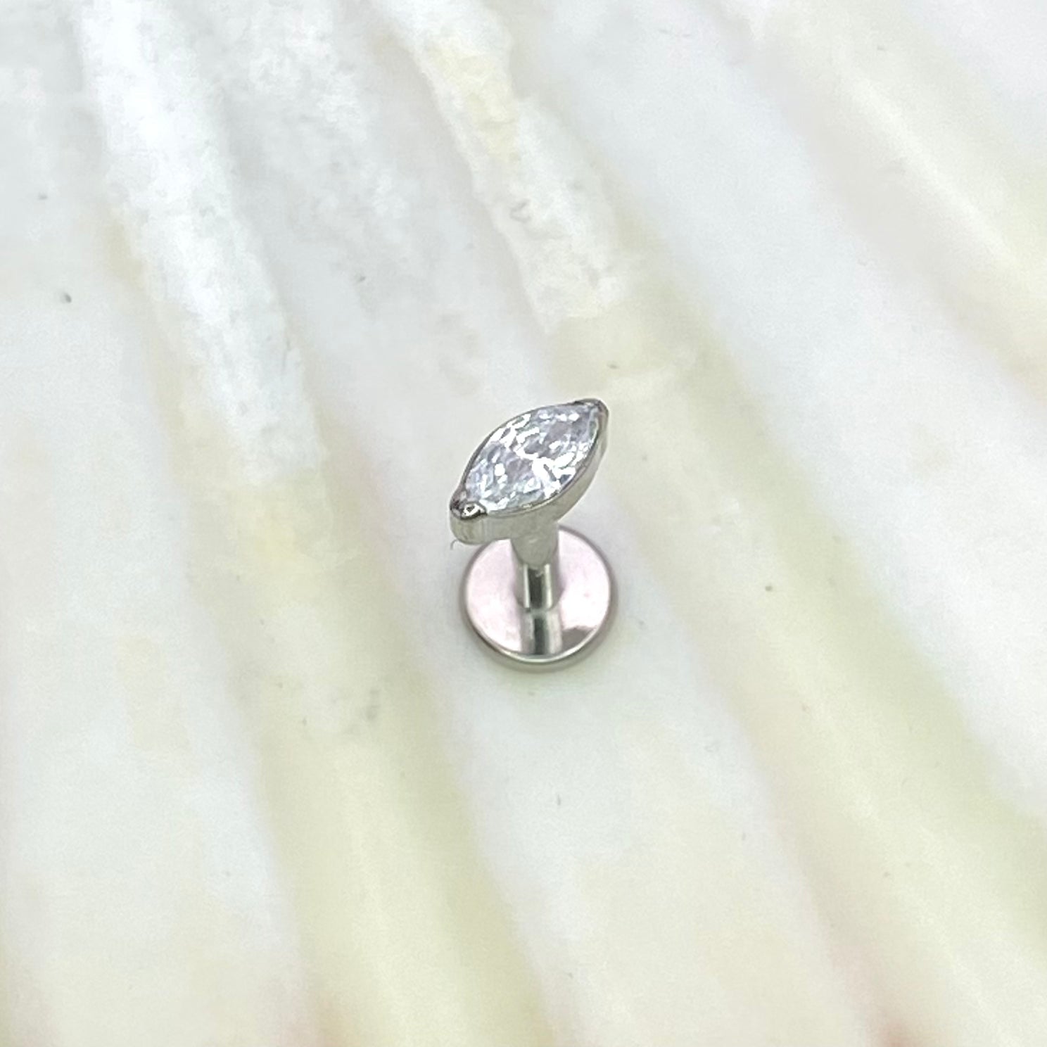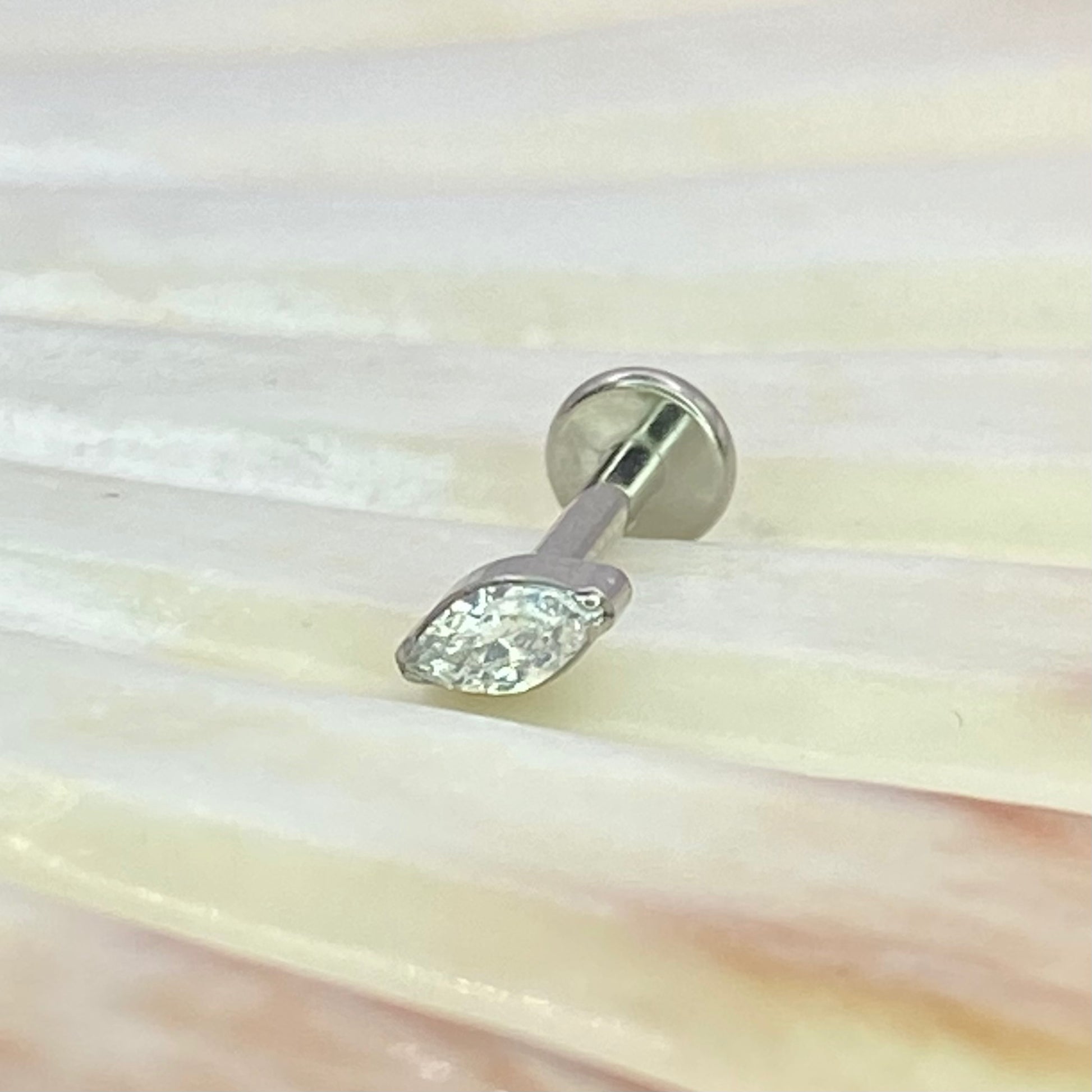 SINGLE Marquise Clear/Pink/Blue/Green Gem Top Medical Grade ASTM F136 Titanium Internal Thread Labret Ear Jewellery Helix Tragus Cartilage Earring