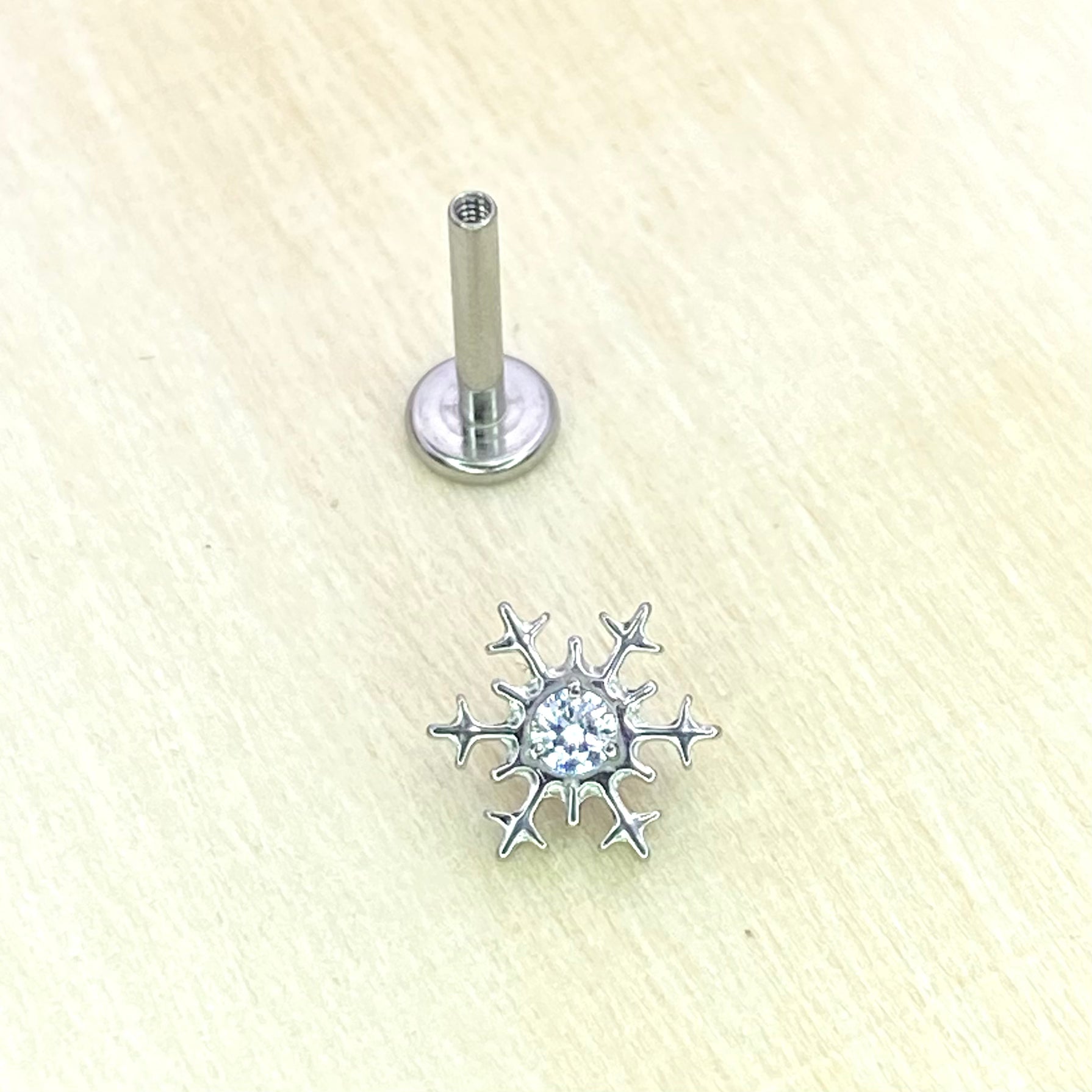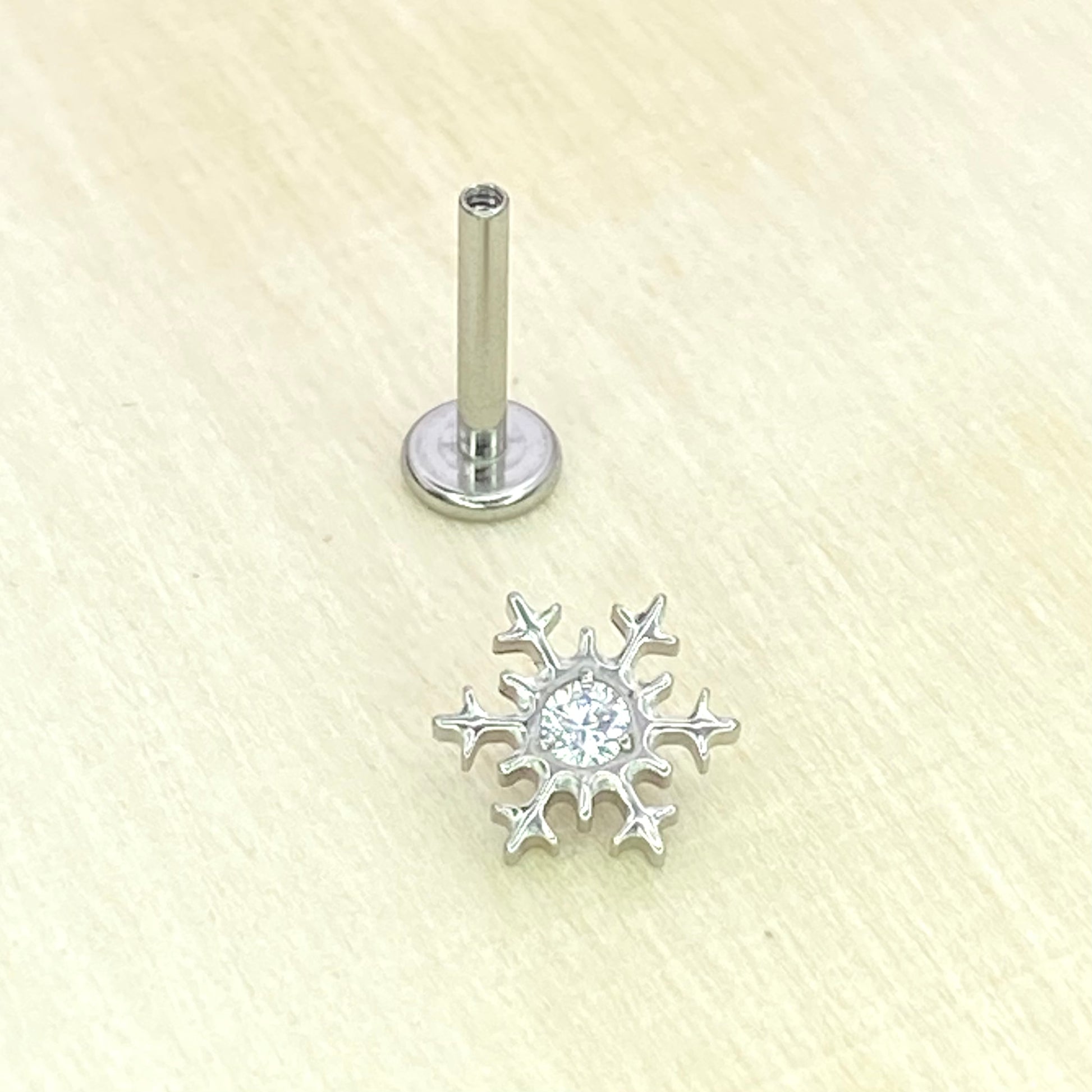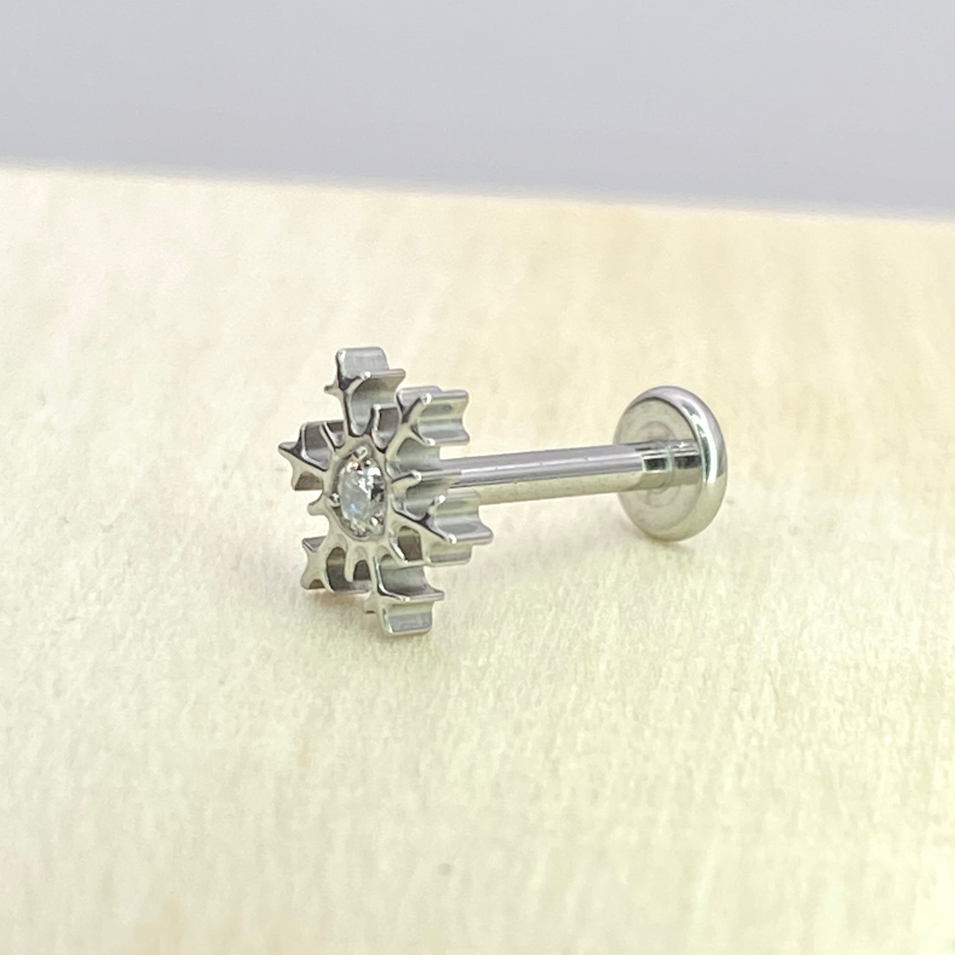 SNOWFLAKE Clear Gem Top Internal Thread Medical grade ASTM F136 titanium Labret Stud Lobe Helix Flat Piercing Jewellery size:1.2 x 8mm