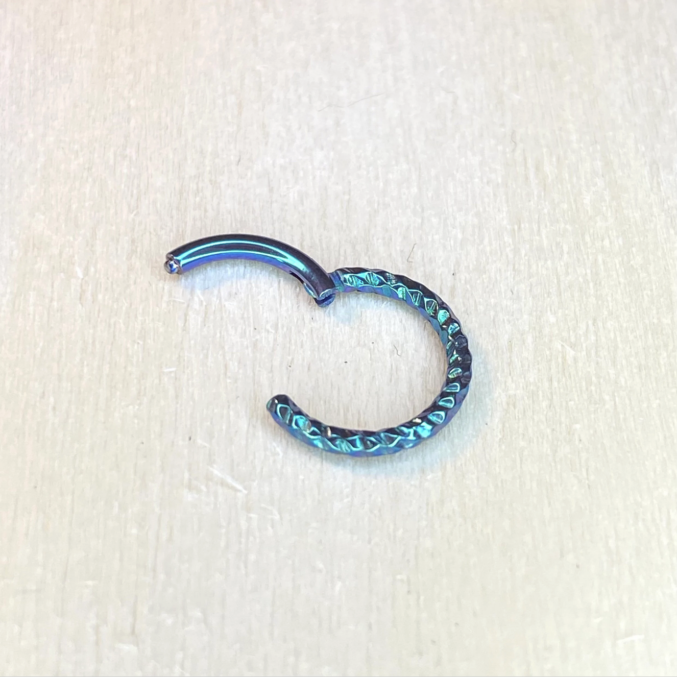 TEAL Anodized Twisted Rope Style Medical Grade ASTM F-136 Titanium Hinged Ring Clicker Hoop Helix Cartilage Lobe Septum Hoop size:1.2x8mm