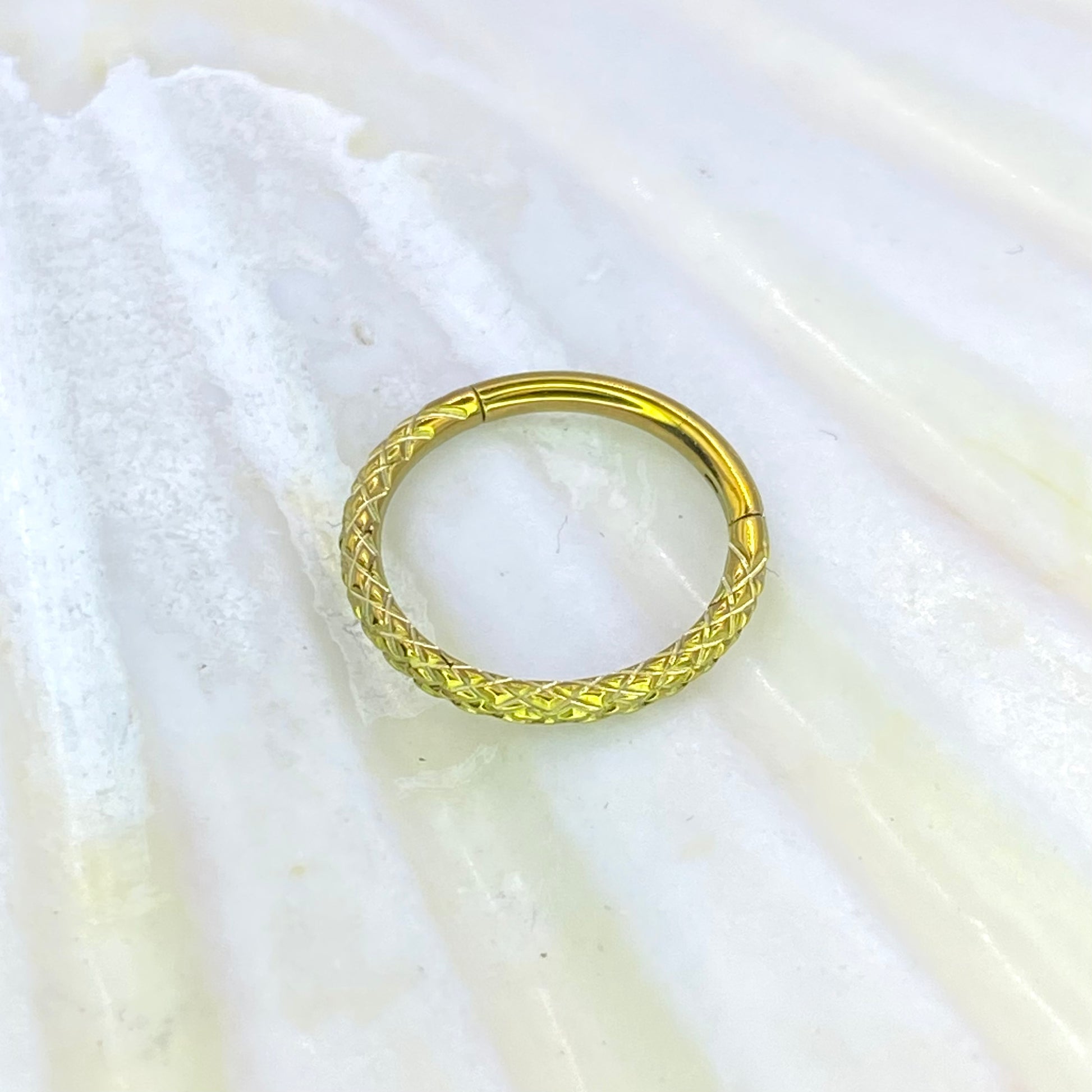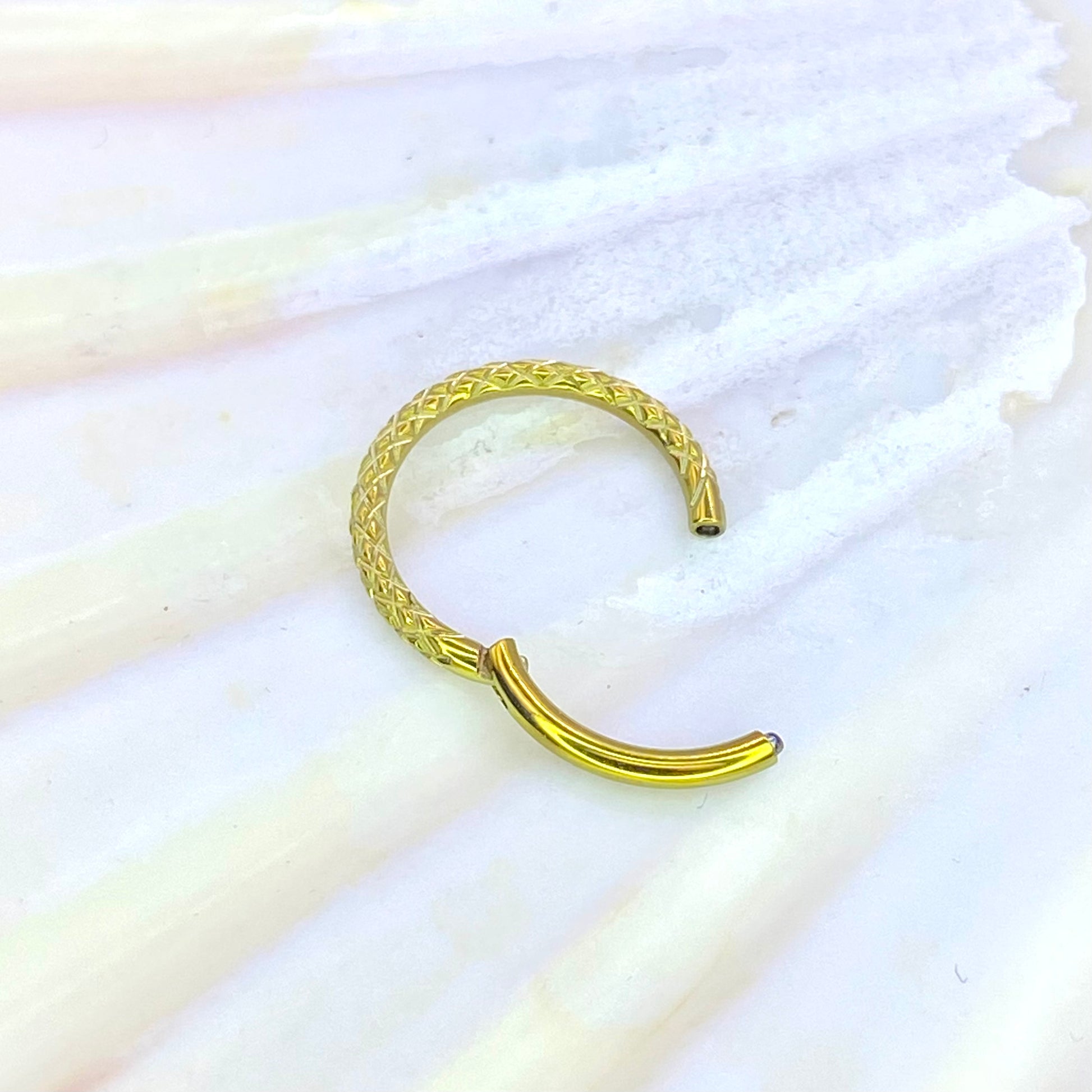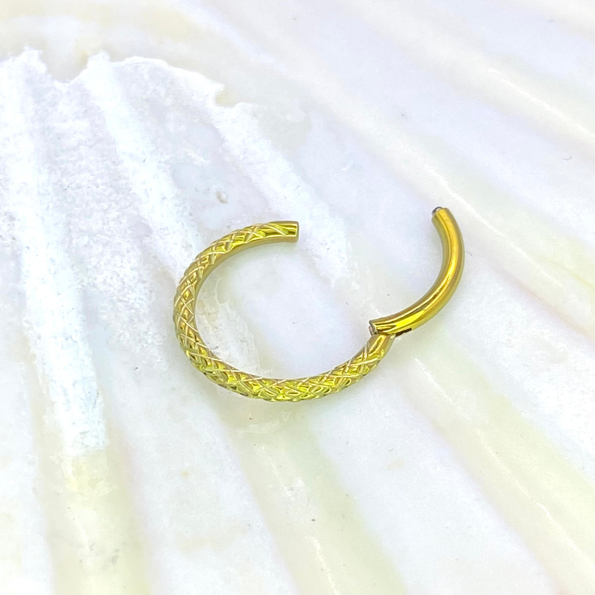 Textured GOLD Anodized Medical Grade ASTM F-136 Titanium Hinged Ring Clicker Hoop for Helix Cartilage Lobe Septum Piercings size: 1.2x10mm