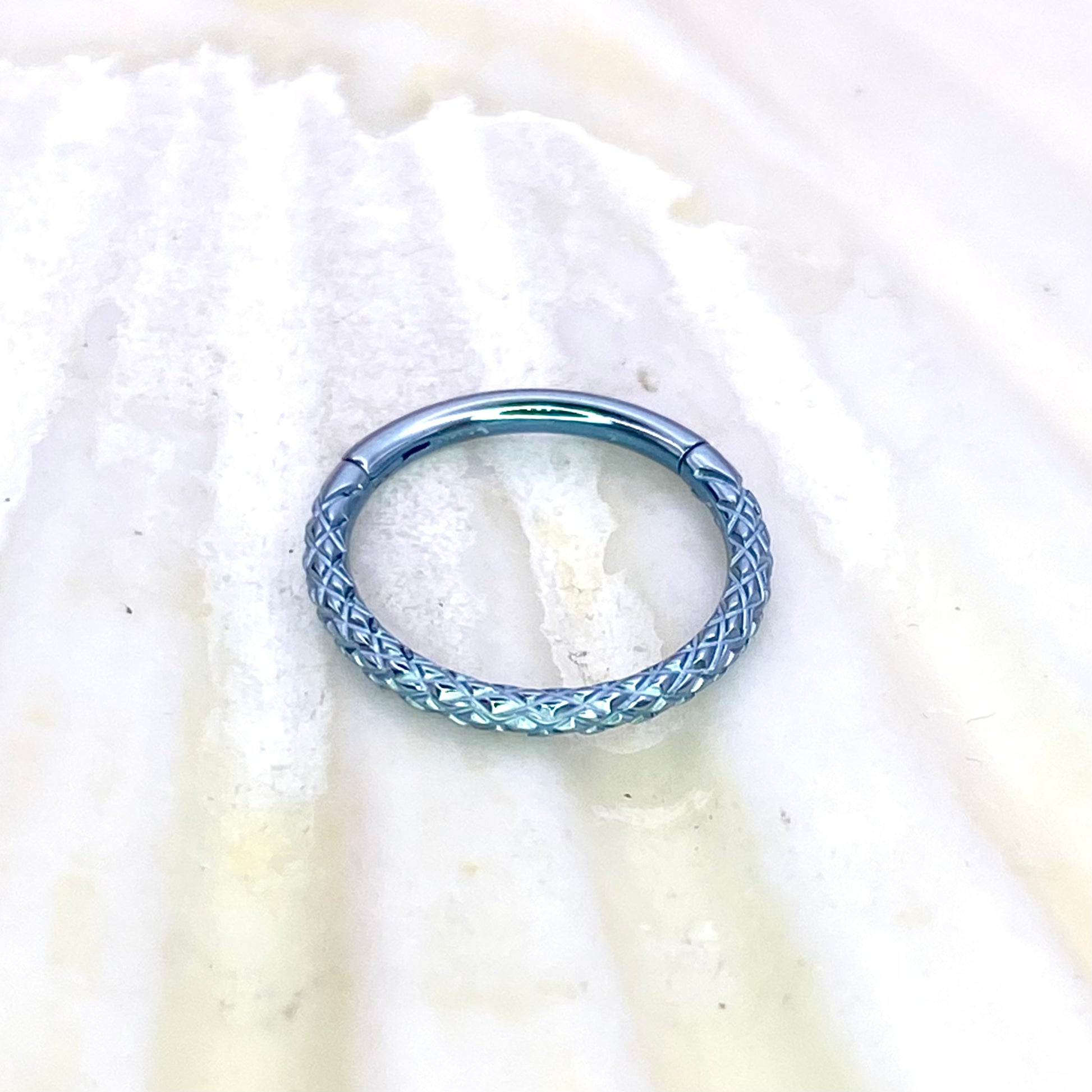Textured ICE BLUE Anodized Medical Grade ASTM F-136 Titanium Hinged Ring Clicker Hoop for Helix Cartilage Lobe Septum Piercings