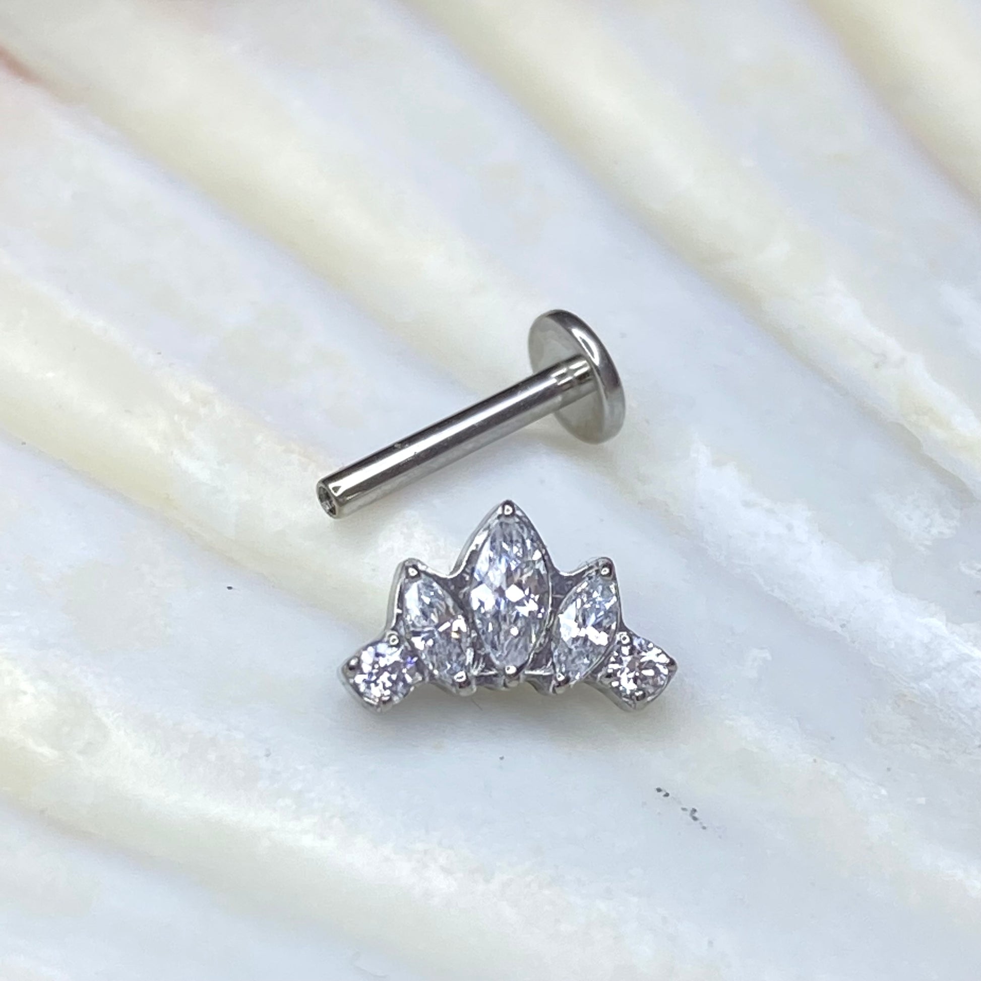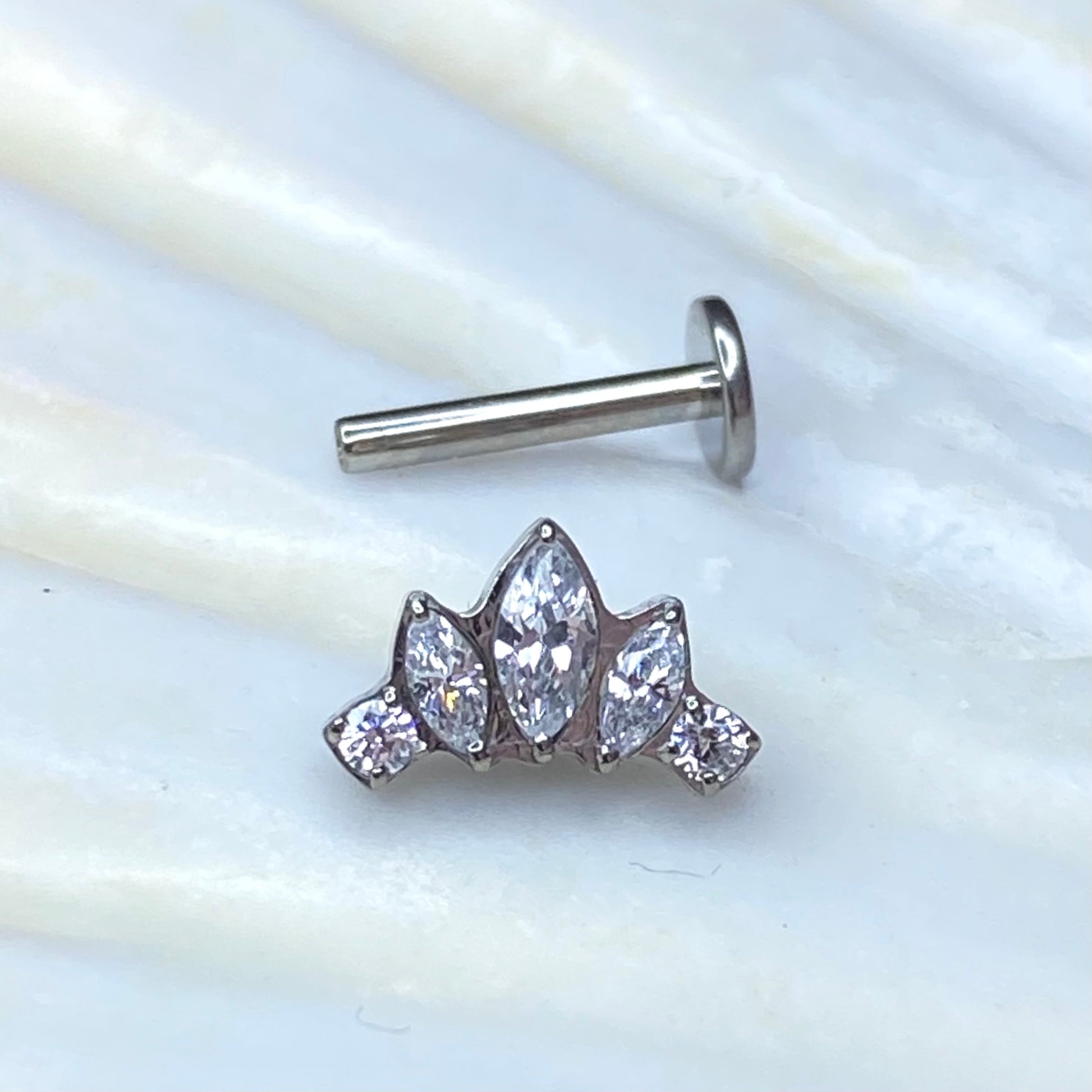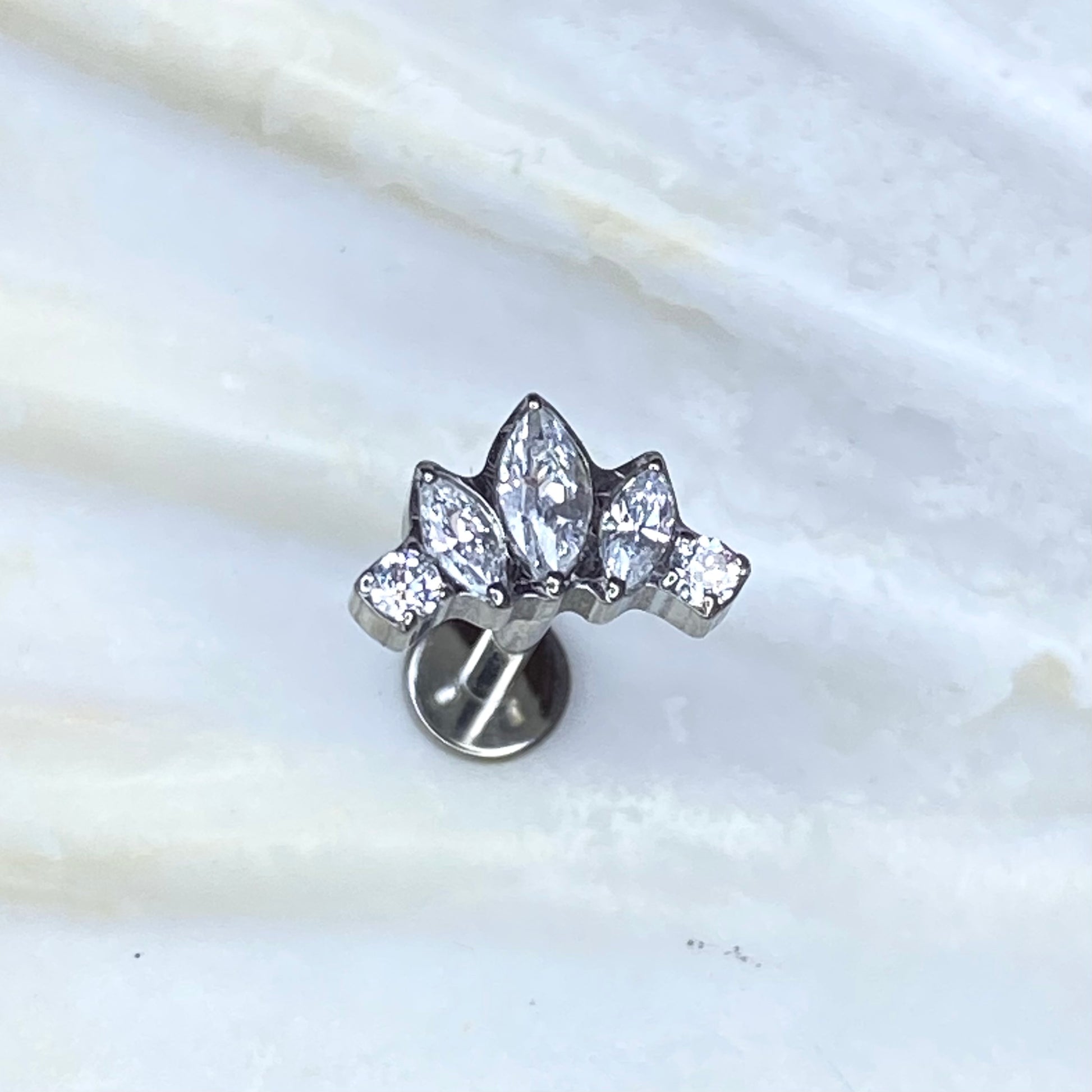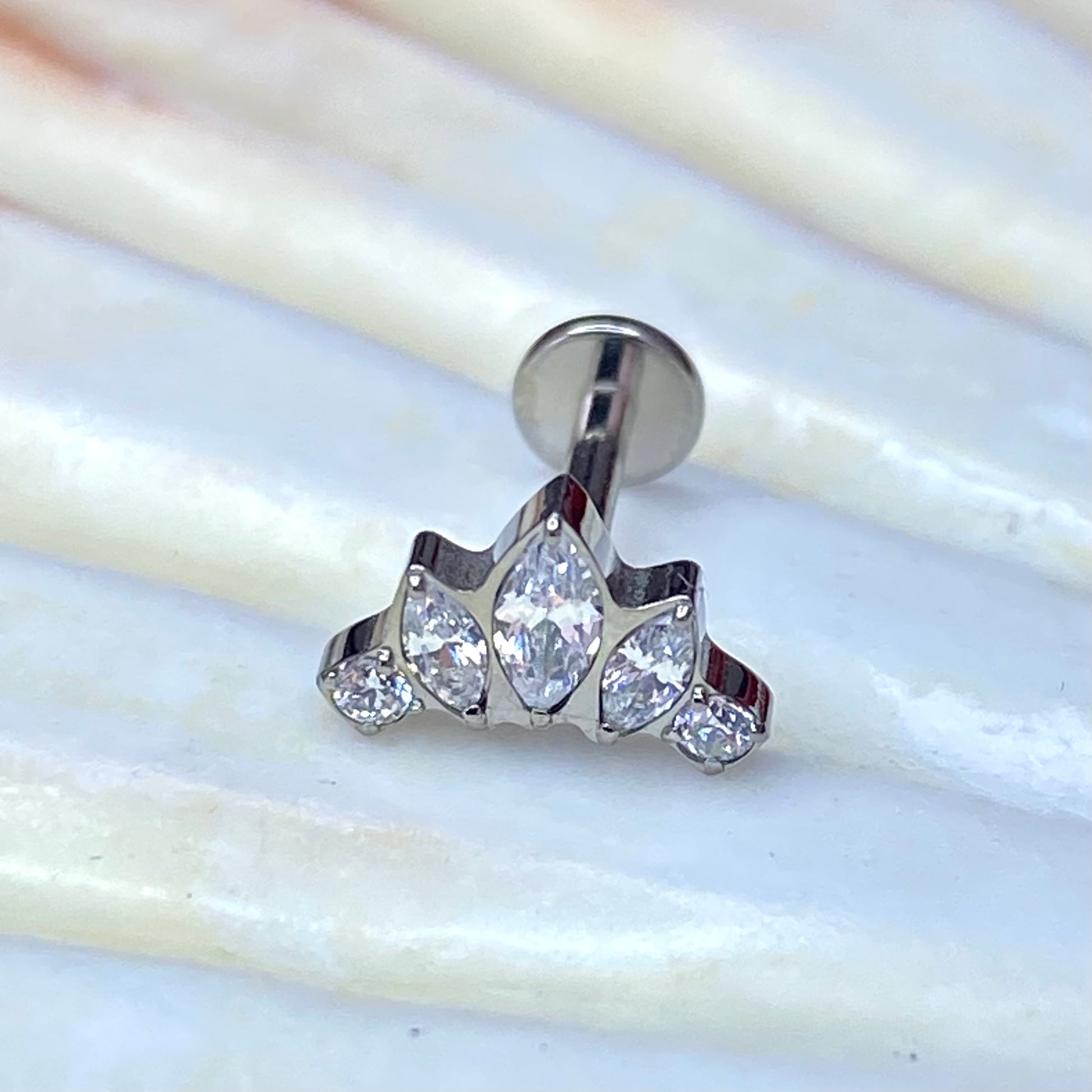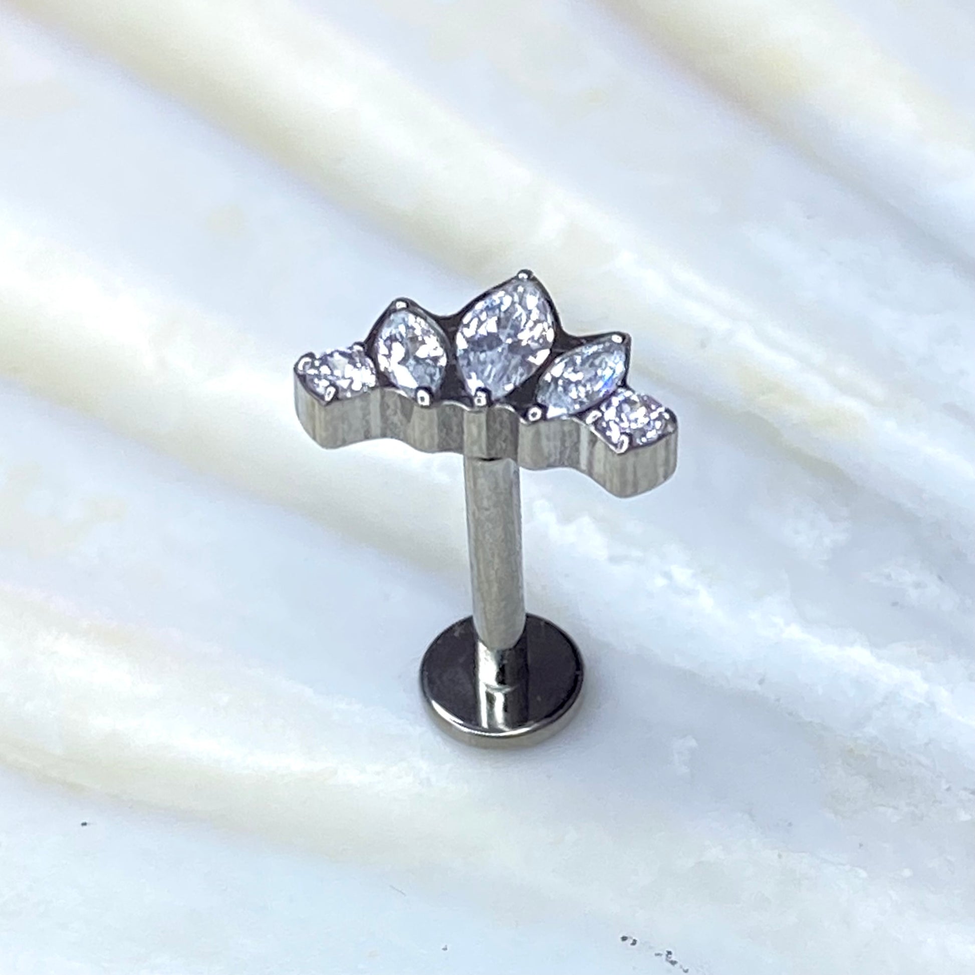TIARA Top Clear Gem Medical Grade ASTM F136 Titanium Internal Thread Labret Ear Jewellery Helix Tragus Cartilage Earring 1.2x8mm